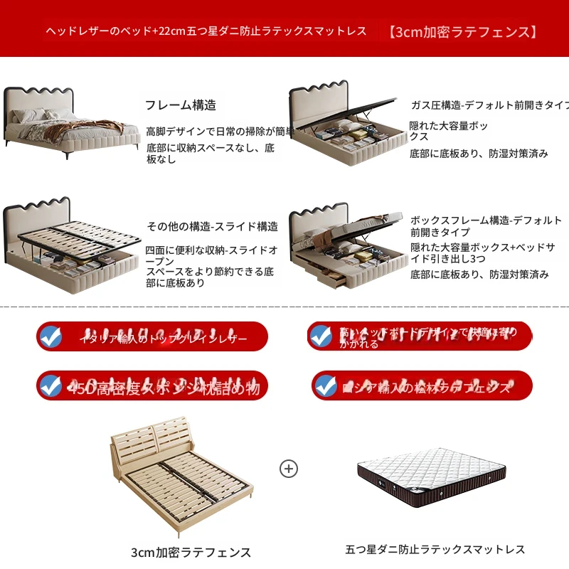 トップレザーベッド+22cm五つ星級抗ダニラテックスマットレス