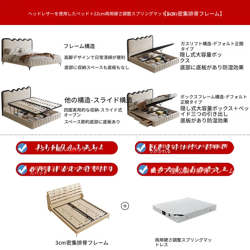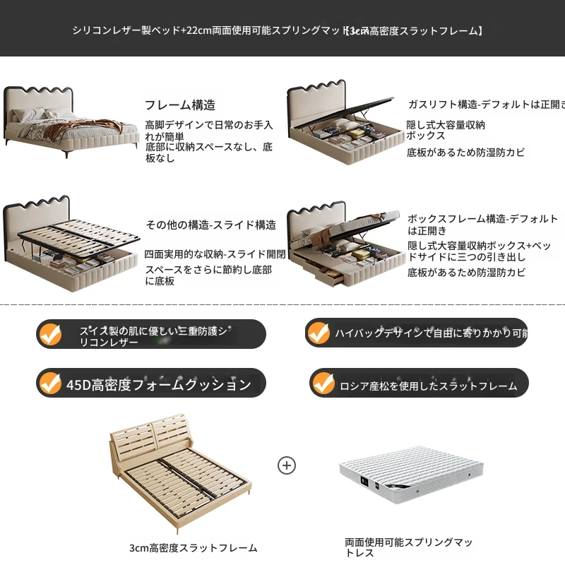 トップレザーベッド+22cm硬さ調節可能スプリングマットレス