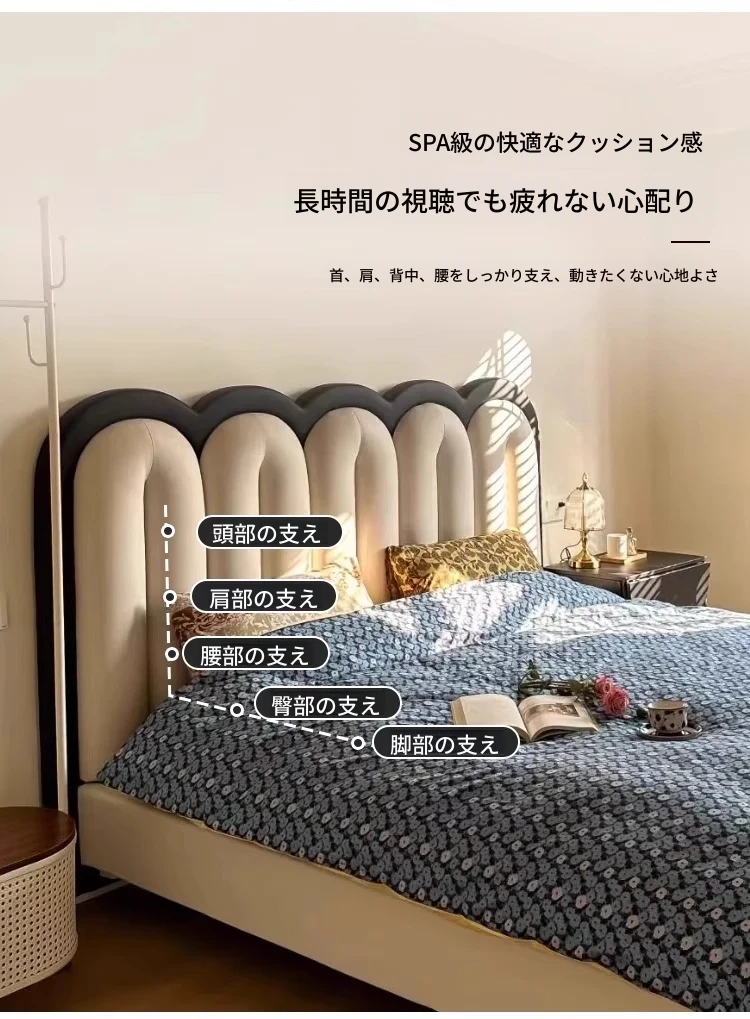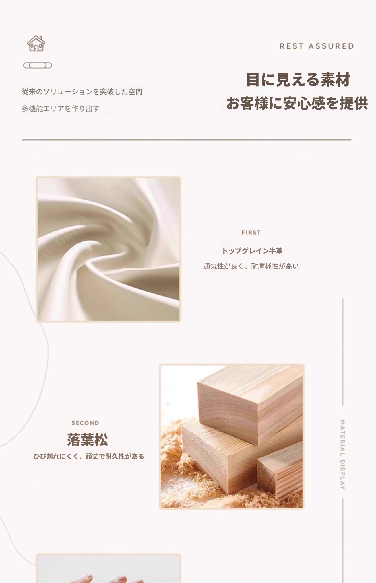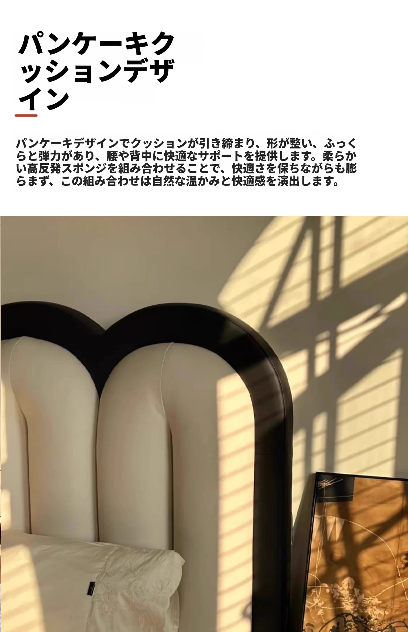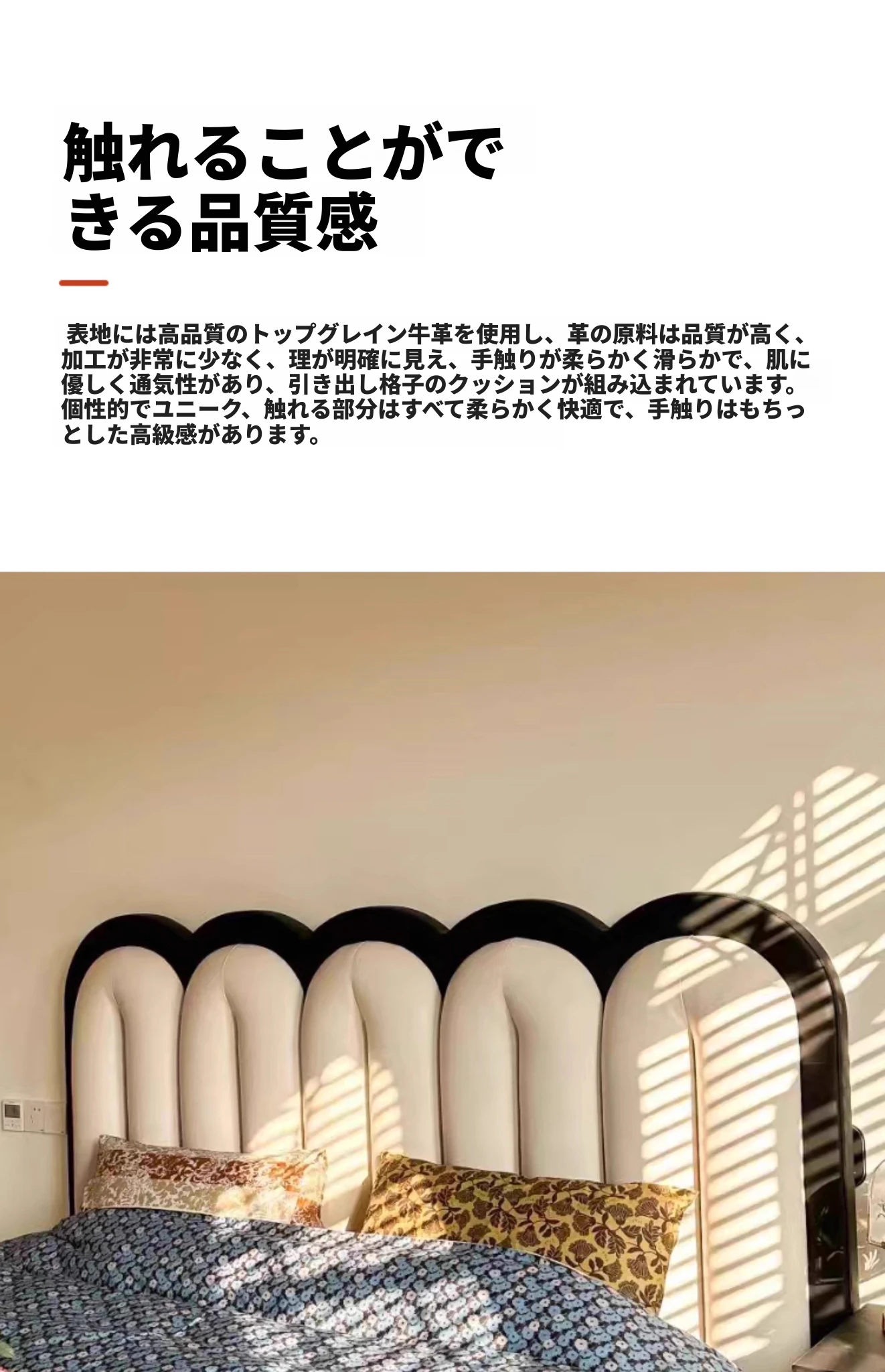 風に揺れるフレンチクリームスタイルの女性向けインフルエンサー必見!収納力抜群のダブルレザーソファベッド、主寝室にぴったりのクリエイティブデザインです。おしゃれで機能的な空間を演出します!
