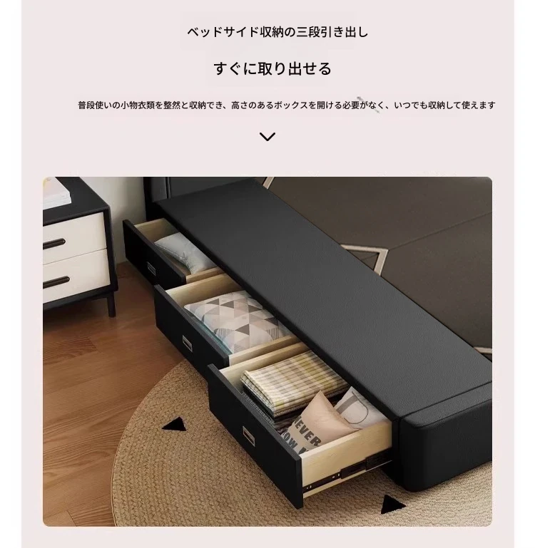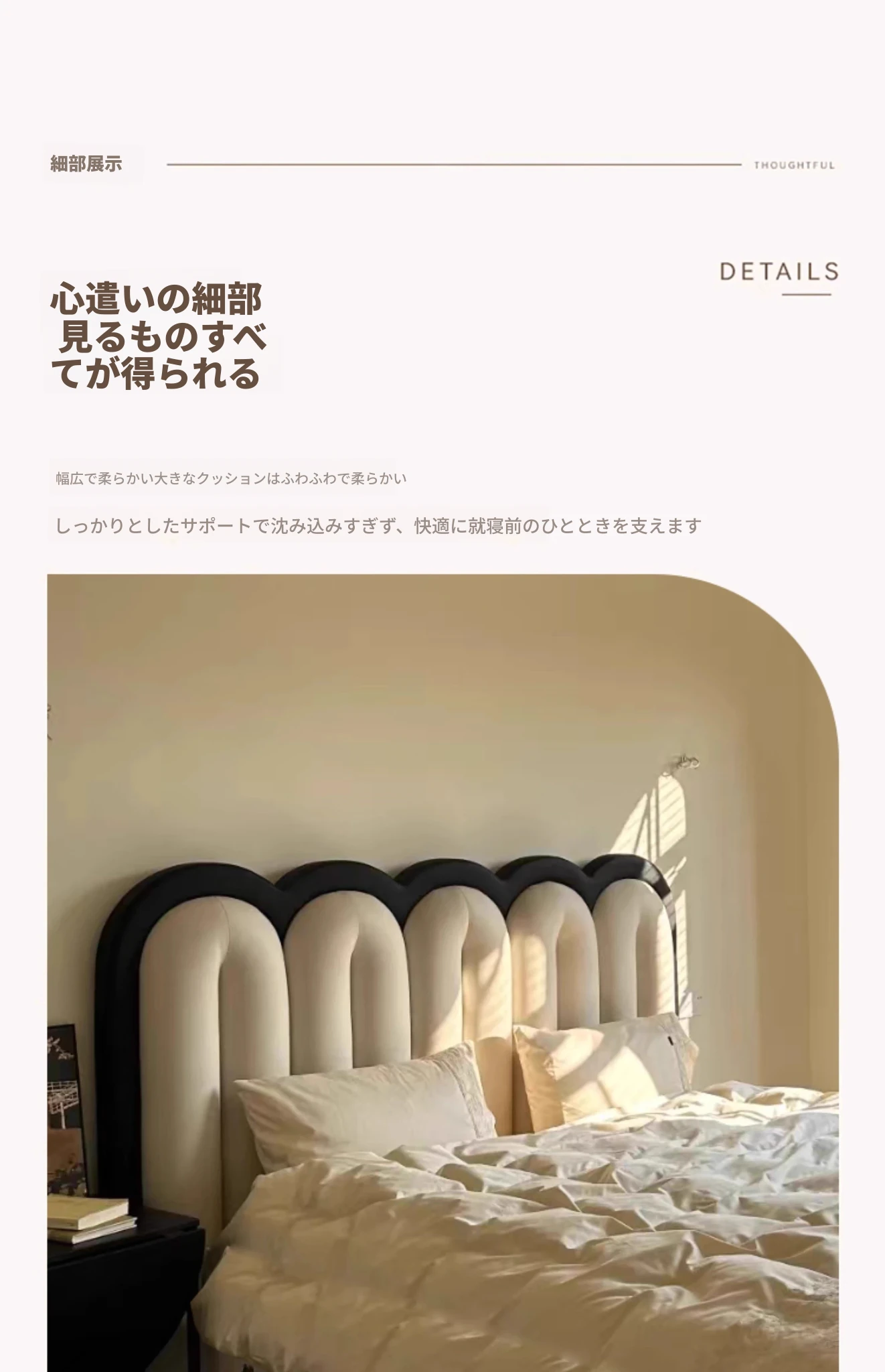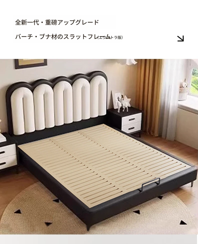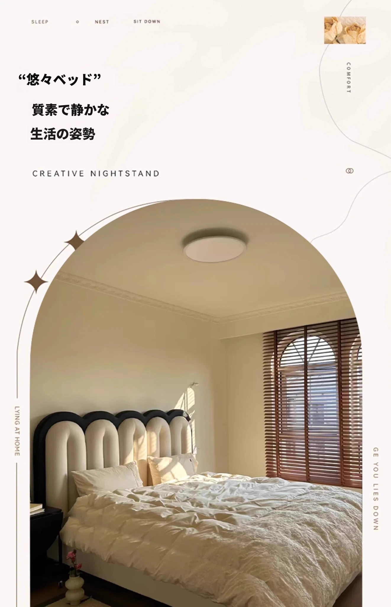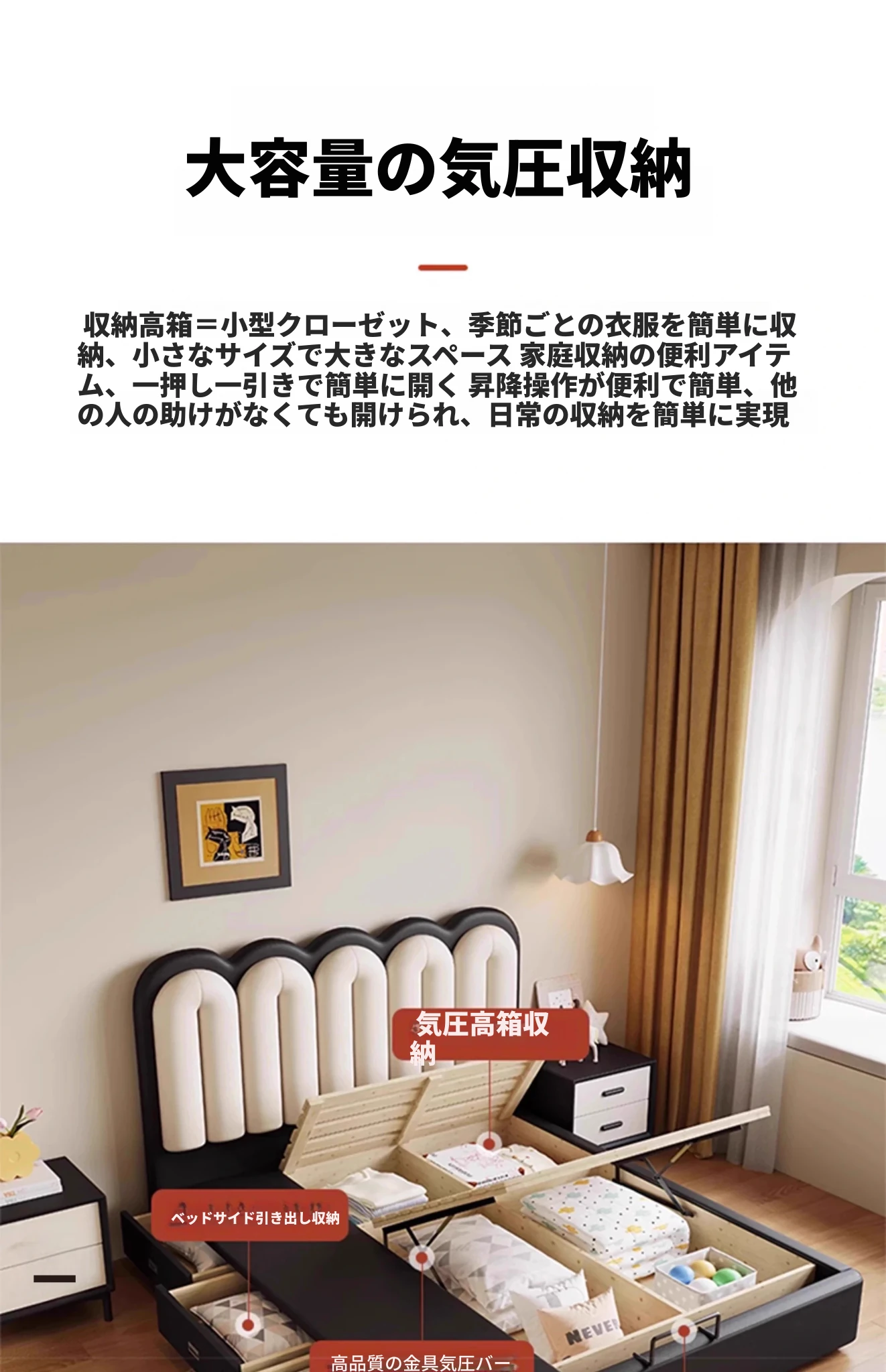 風に揺れるフレンチクリームスタイルの女性向けインフルエンサー必見!収納力抜群のダブルレザーソファベッド、主寝室にぴったりのクリエイティブデザインです。おしゃれで機能的な空間を演出します!