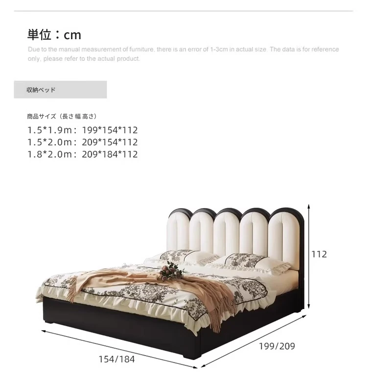 V級輸入1.8加厚頭層小黄牛皮【幅広加密榫卯ビーチ材ベース】+2キャビネット+高弾性抗菌防ダニラテックスマットレス