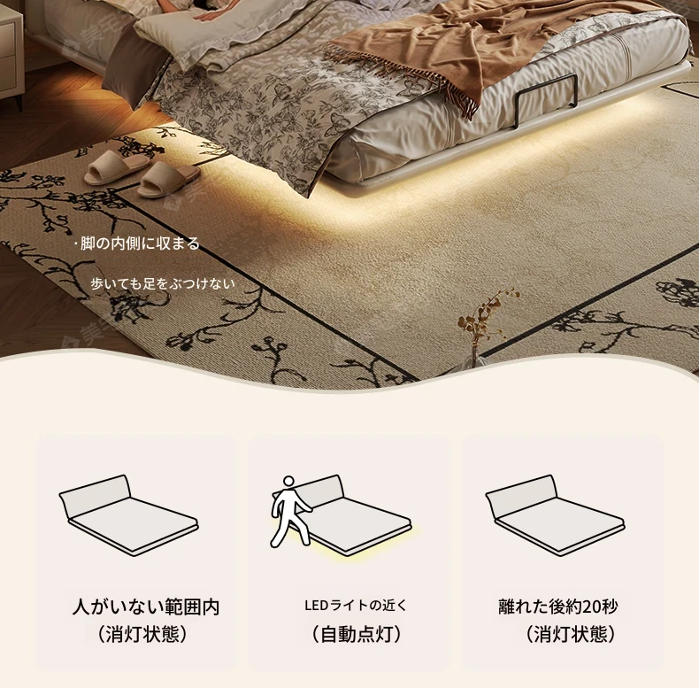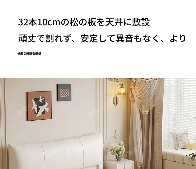 【フラッグシップ版】本革ベッド【1.2cm高密度スラットフレーム】+1キャビネット+22cm六つ星抗菌防ダニラテックスマットレス