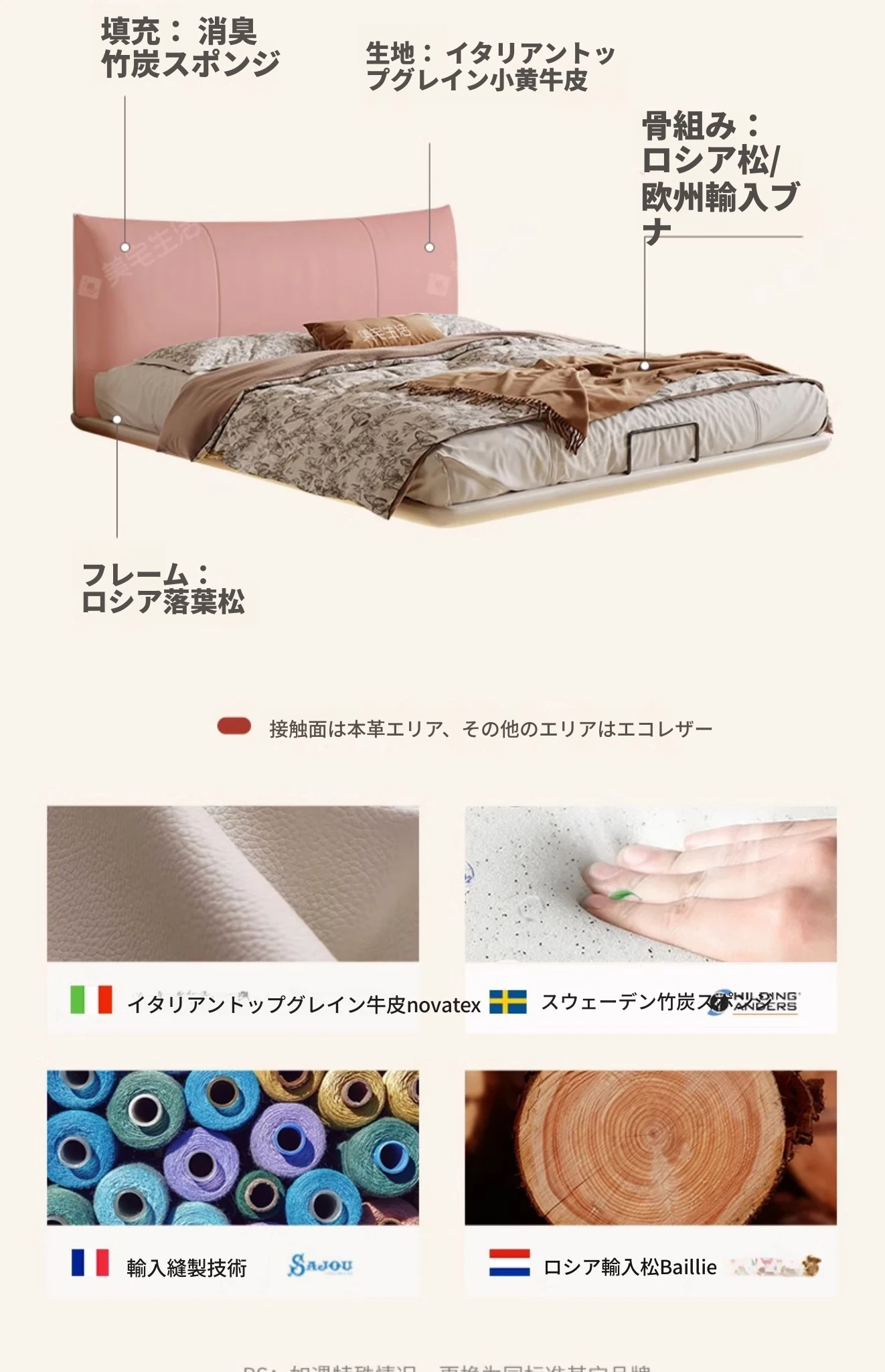 【フラッグシップ版】本革ベッド【1.2cm高密度スラットフレーム】+22cm五つ星エコココナッツマットレス