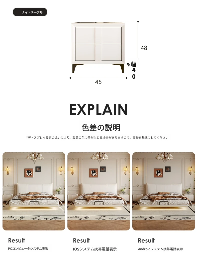【フラッグシップ版】本革ベッド【1.2cm高密度スラットフレーム】+2キャビネット+22cm六つ星抗菌防ダニラテックスマットレス