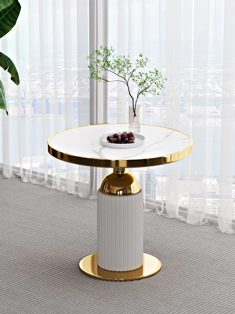 ラグジュアリーな金属製小型サークルテーブル - バルコニーにぴったりなリラックス空間を演出!カフェや接待にも最適な家庭用ティーテーブル、ソファサイドテーブルとしても活躍します。おしゃれで機能的な一品を手に入れましょう!