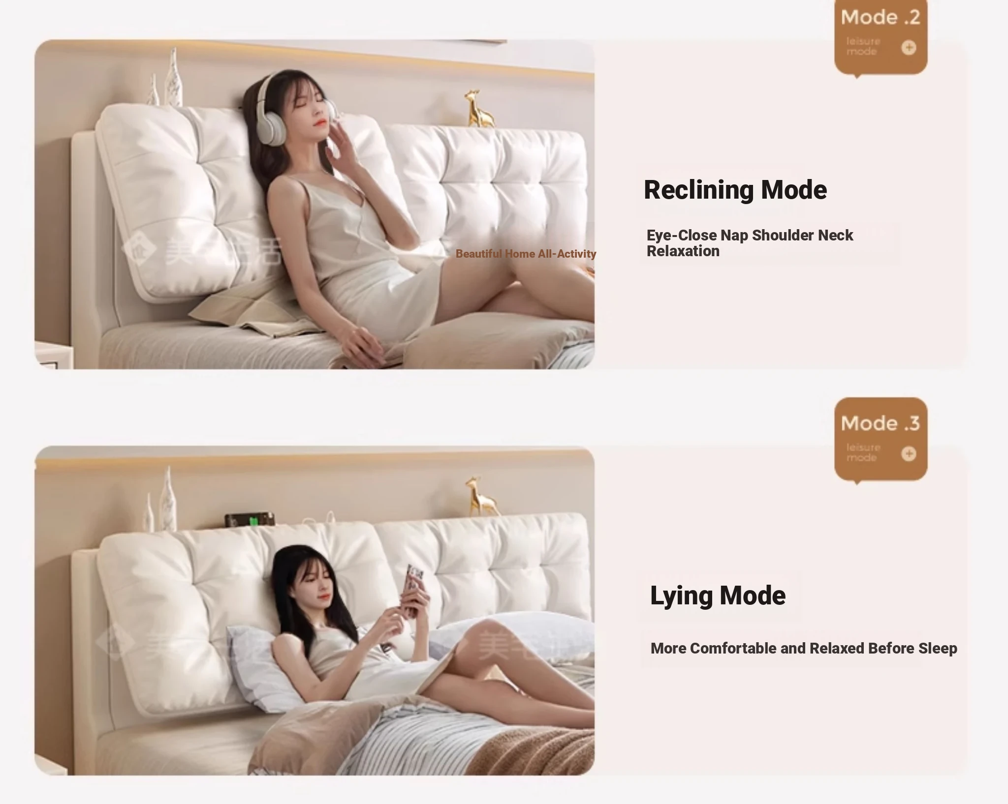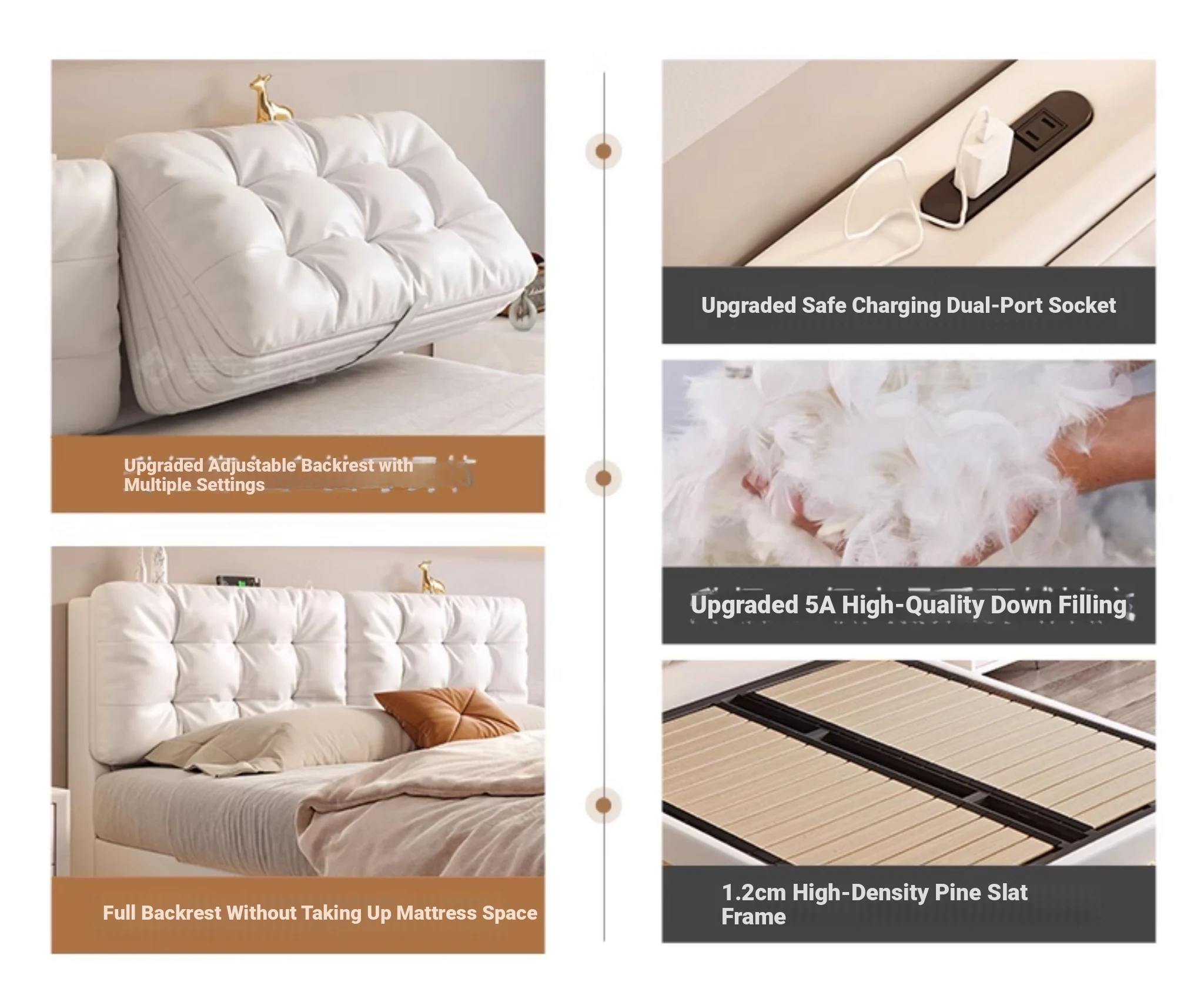 [In Stock Beech Row Skeleton] Leather Bed creamy-white +2 Cabinet +8.66in Five-star Tencel Coconut Mattress
