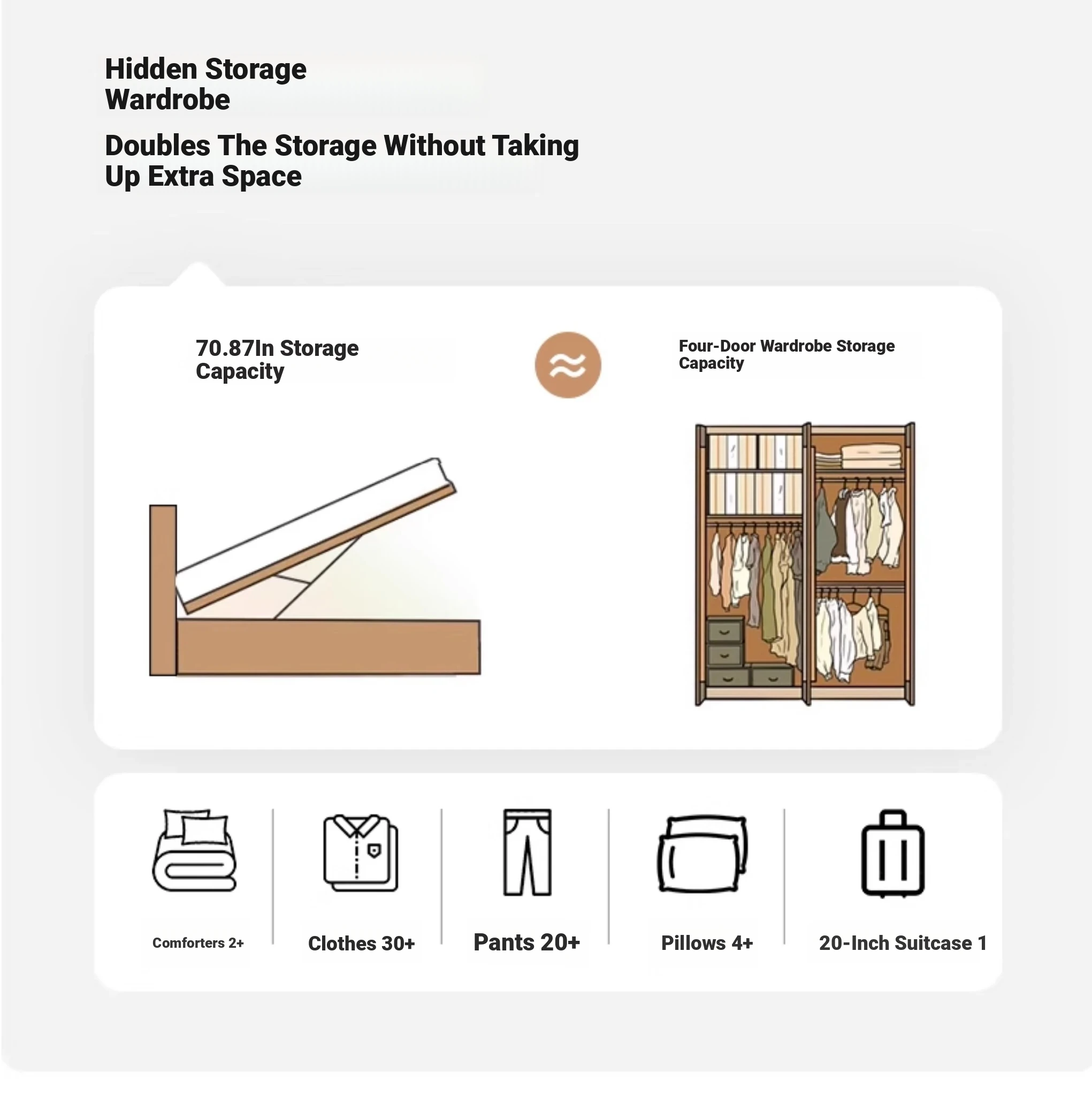 [In Stock Beech Row Skeleton] Leather Bed creamy-white +1 Cabinet +8.66in Five-star Tencel Coconut Mattress