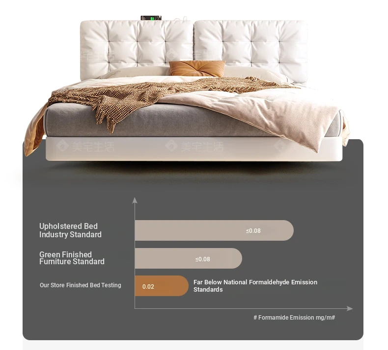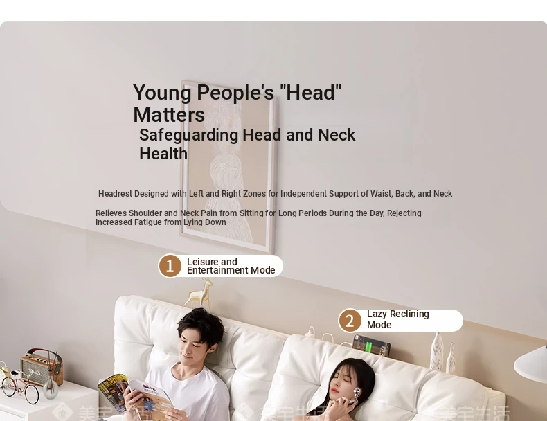 [In Stock Beech Row Skeleton] Leather Bed creamy-white +2 Cabinet +8.66in Six-star Antibacterial and Anti-mite Latex Mattress