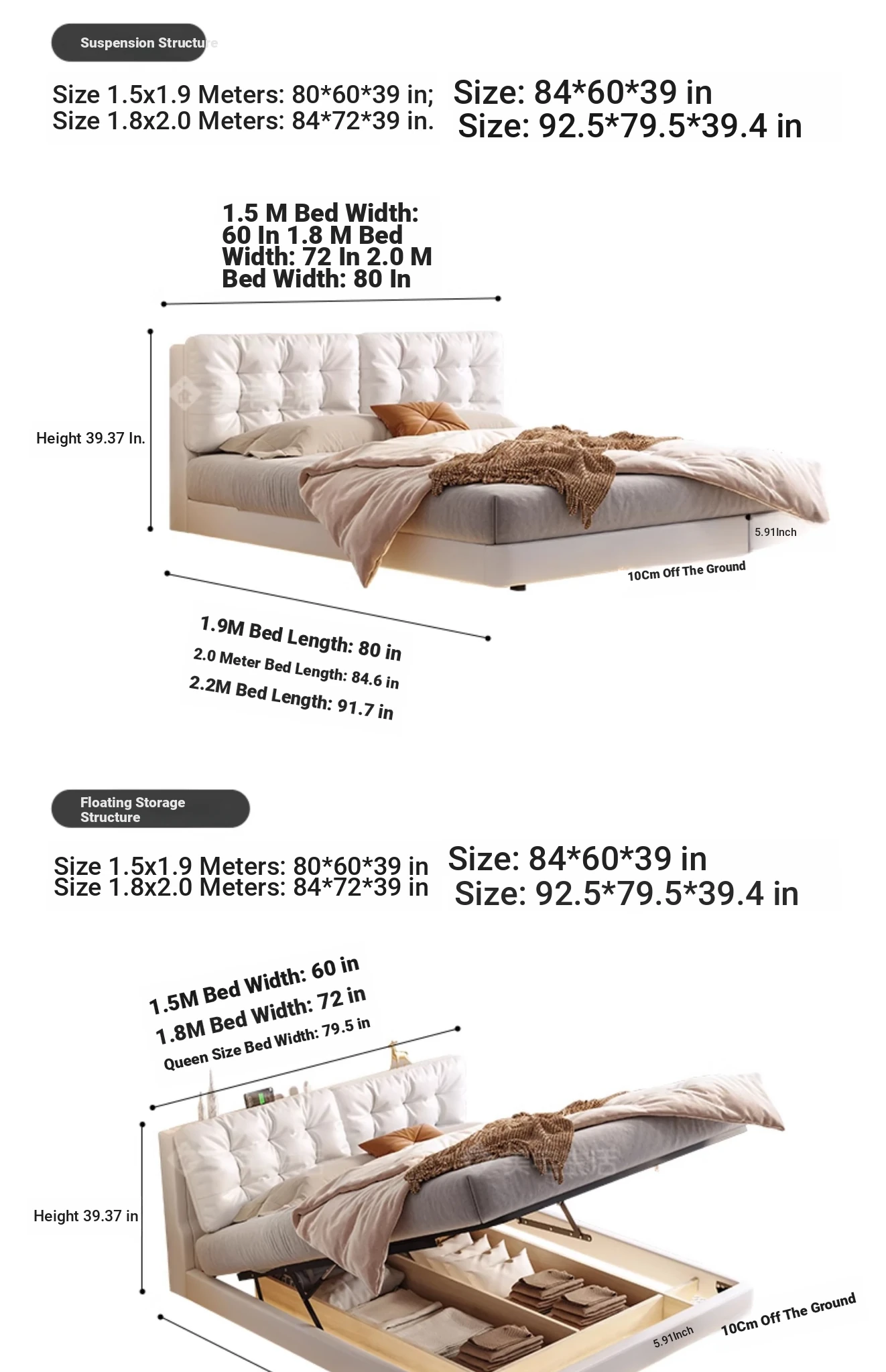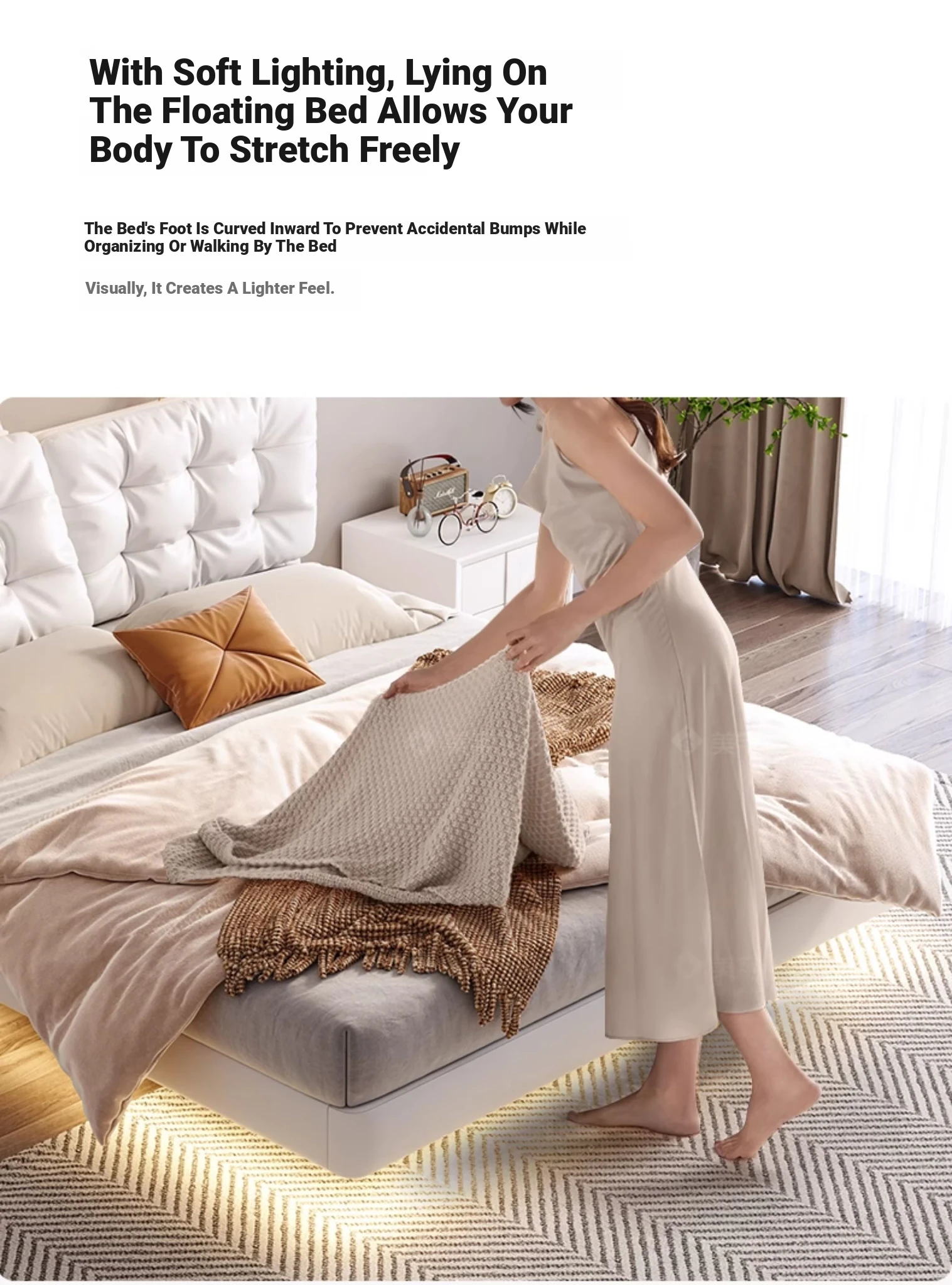 【Fast Shipping】Creamy Cloud Floating Genuine Leather Bed - Modern Minimalist King Size Double Bed for Master Bedroom (2x2m)