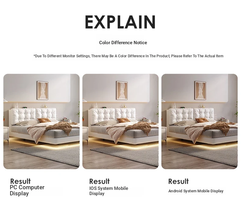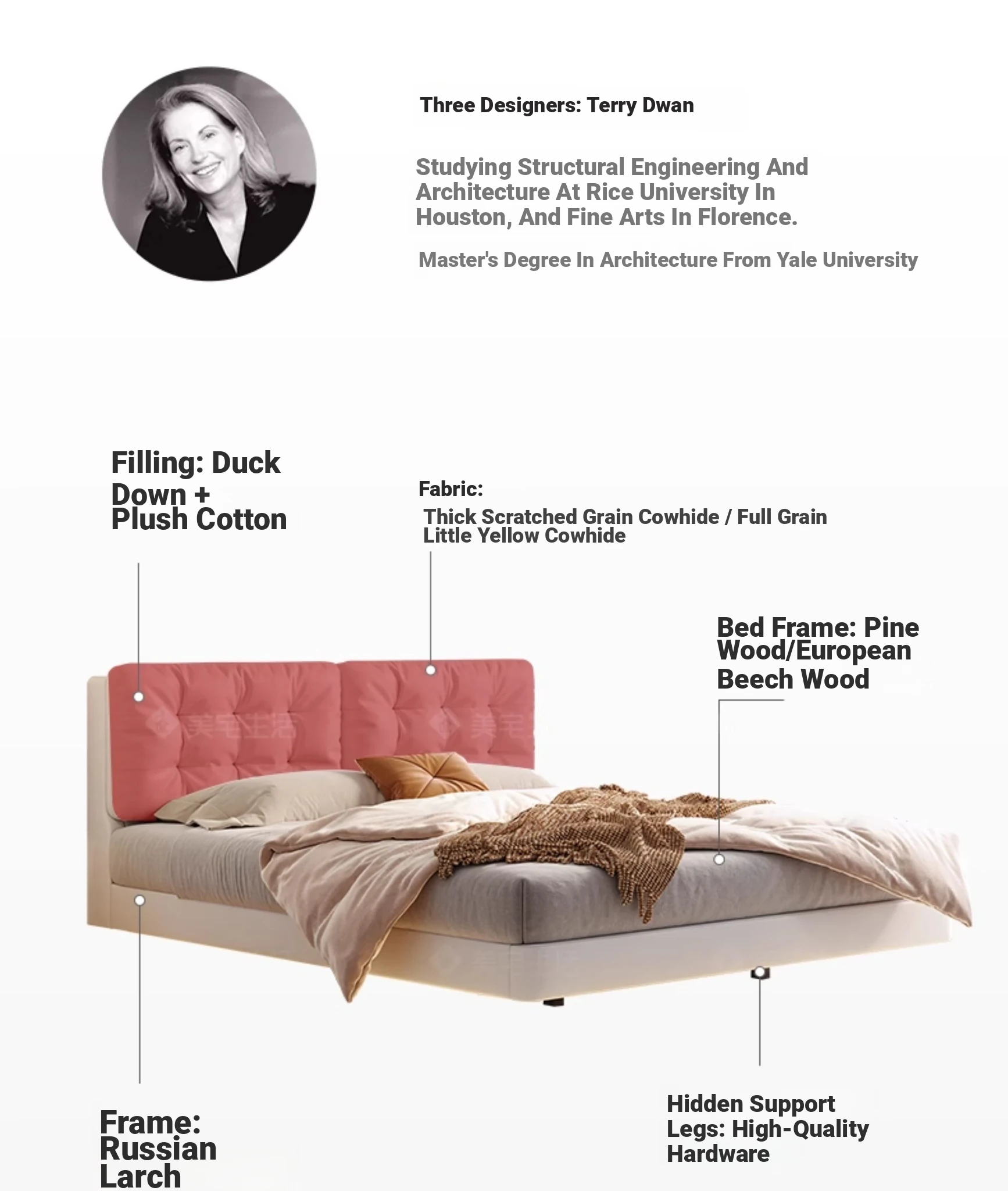 [In Stock Beech Row Skeleton] Leather Bed creamy-white +8.66in Five-star Tencel Coconut Mattress