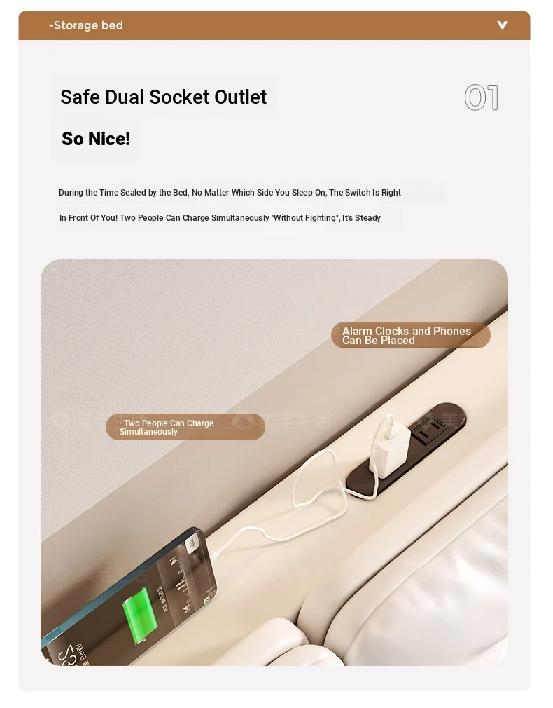 [In Stock Beech Row Skeleton] Leather Bed creamy-white +1 Cabinet +8.66in Six-star Antibacterial and Anti-mite Latex Mattress