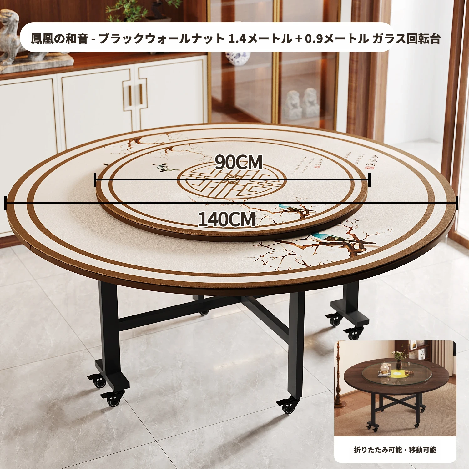 鳳凰と竜-1.4m【ブラックウォールナット柄】ガラス回転盤付き 汚れ防止耐摩耗[輸出品質]