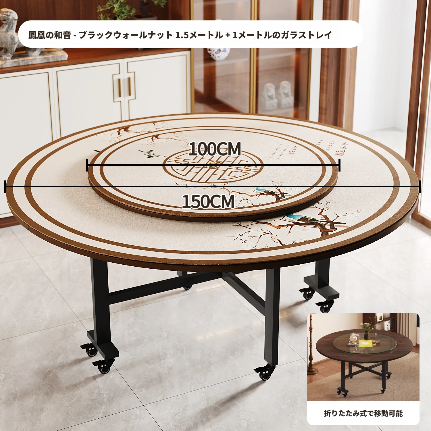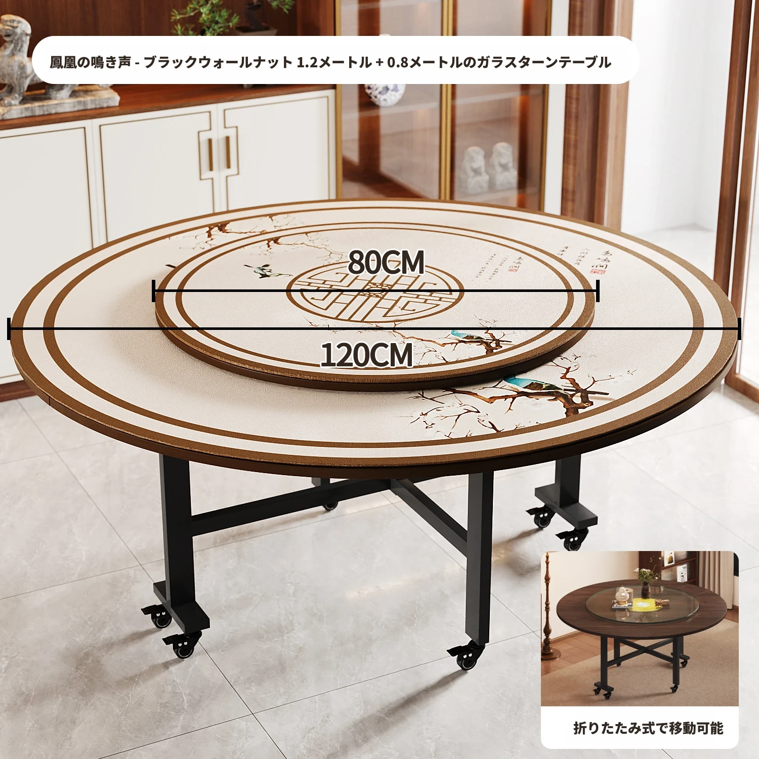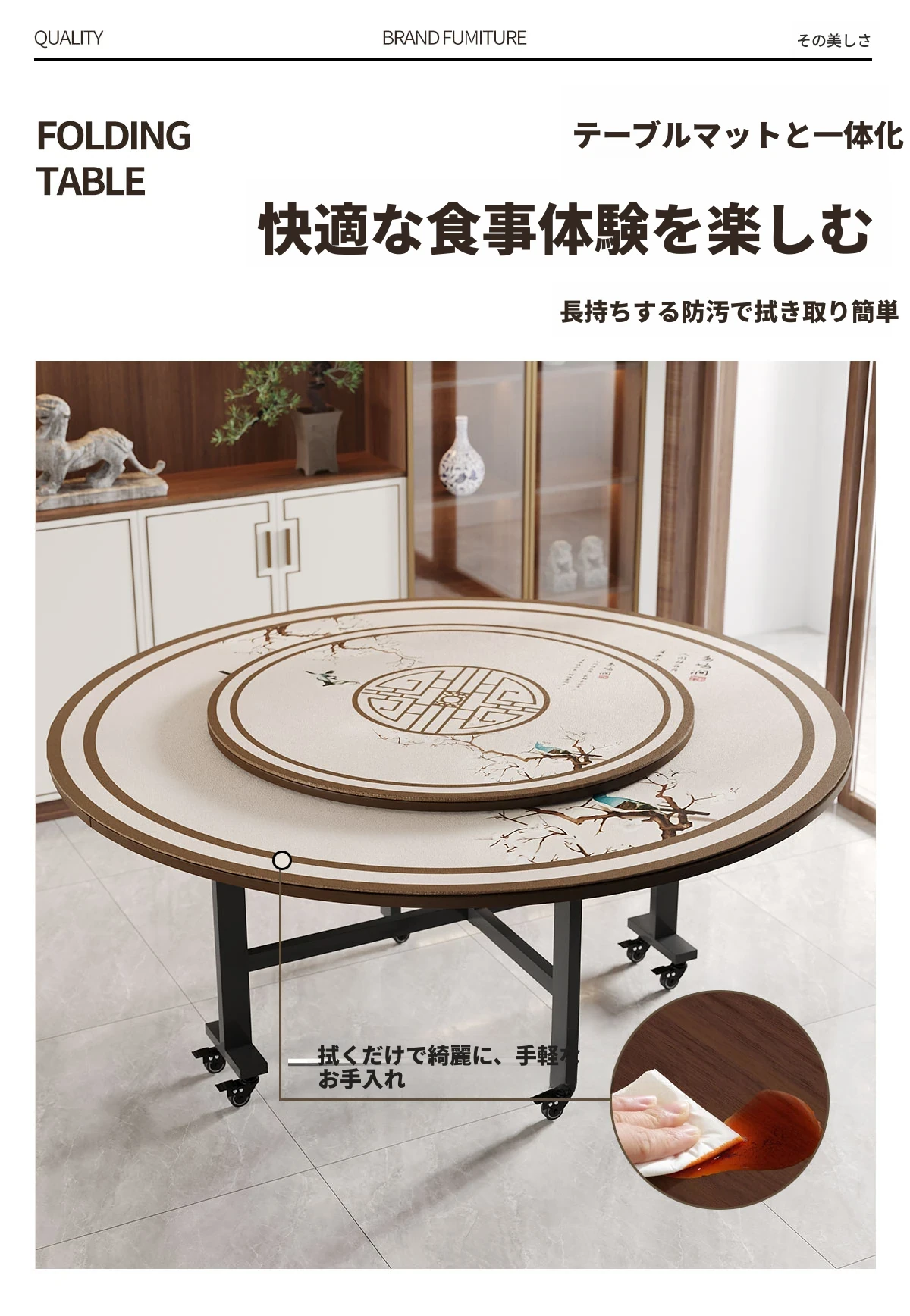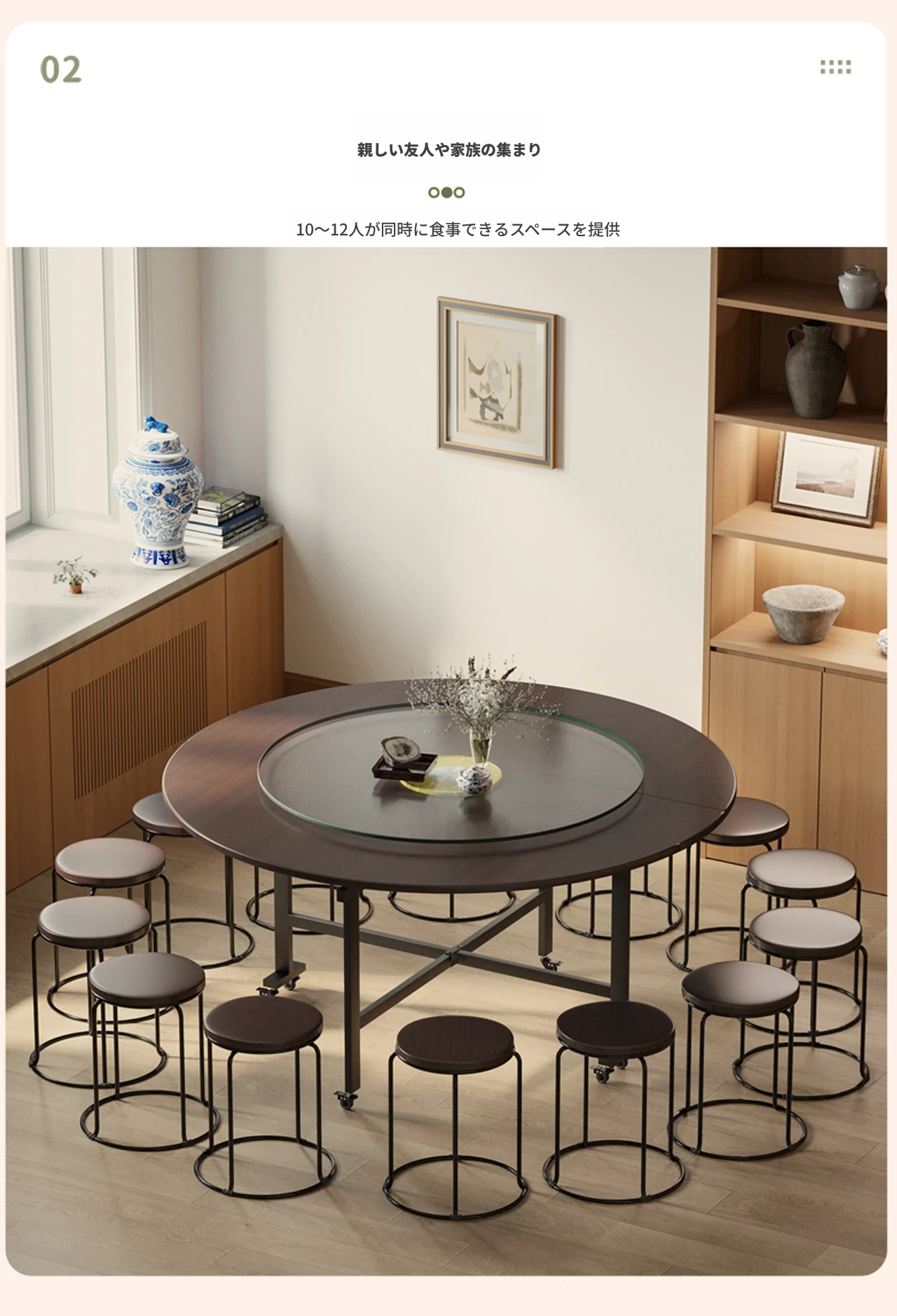 折りたたみ式ダイニングテーブル|小型住宅向け|10人から15人用|移動可能な大きな円卓|回転盤付きで食事がもっと楽しくなる!