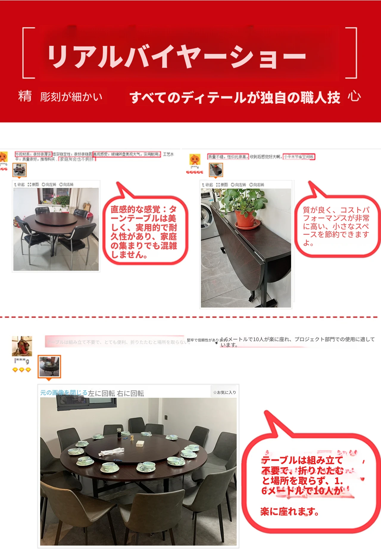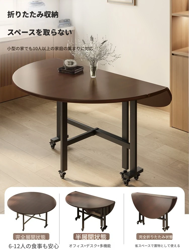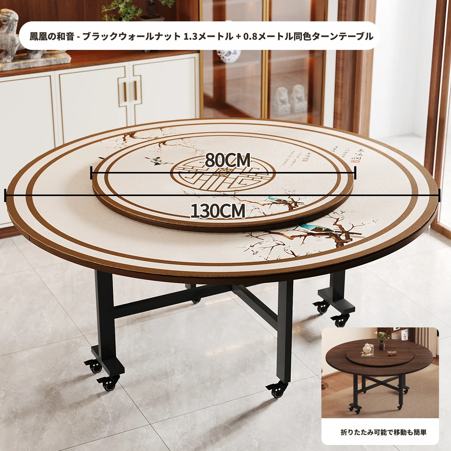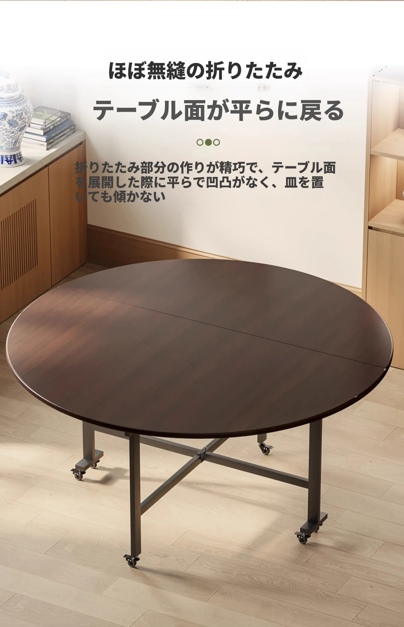 折りたたみ式ダイニングテーブル|小型住宅向け|10人から15人用|移動可能な大きな円卓|回転盤付きで食事がもっと楽しくなる!