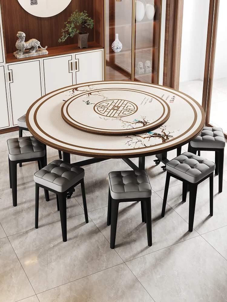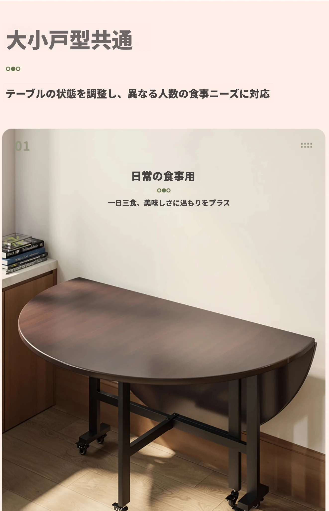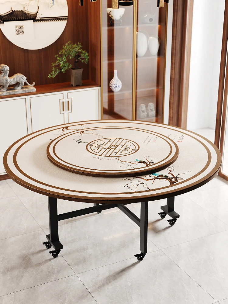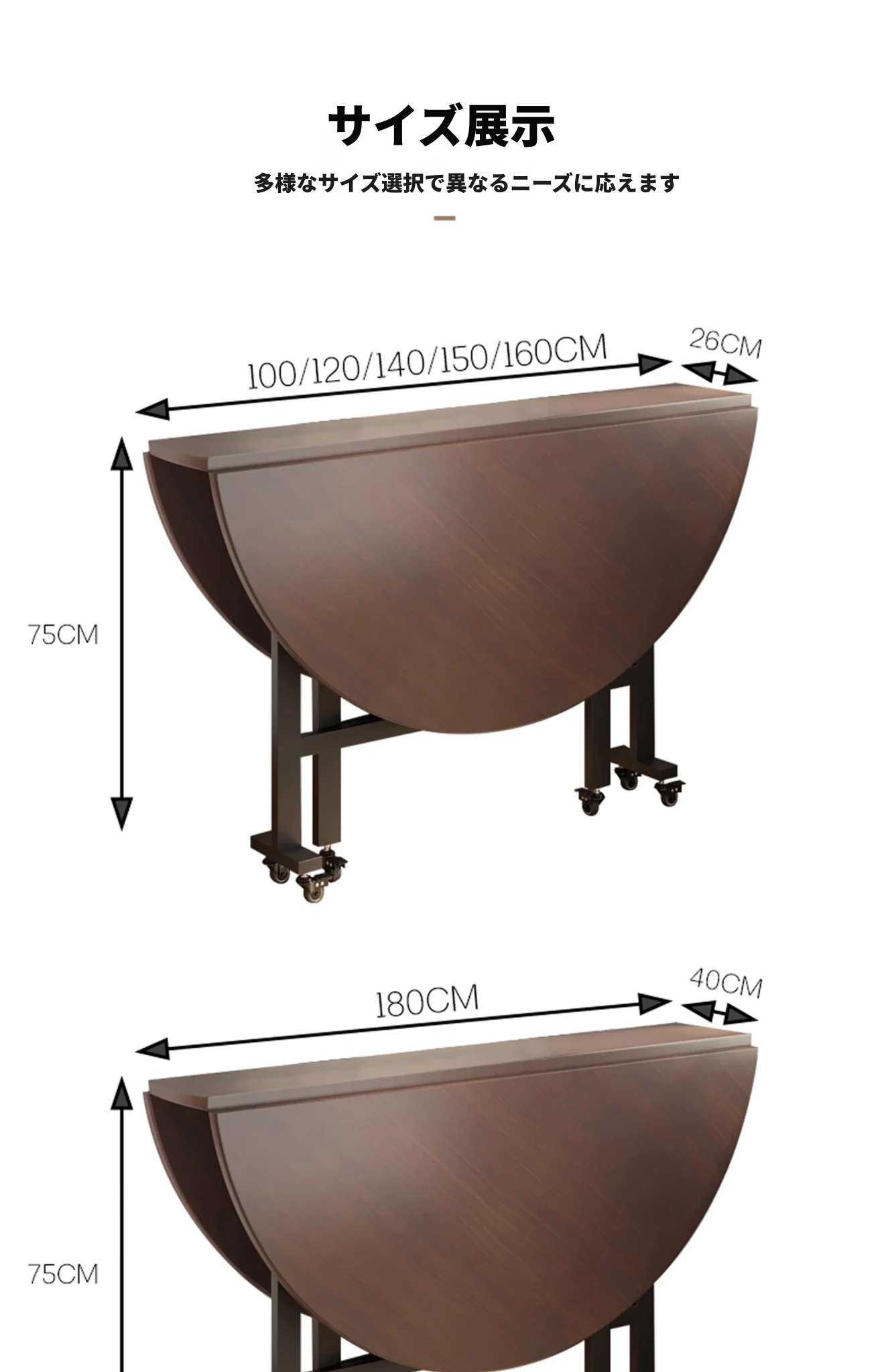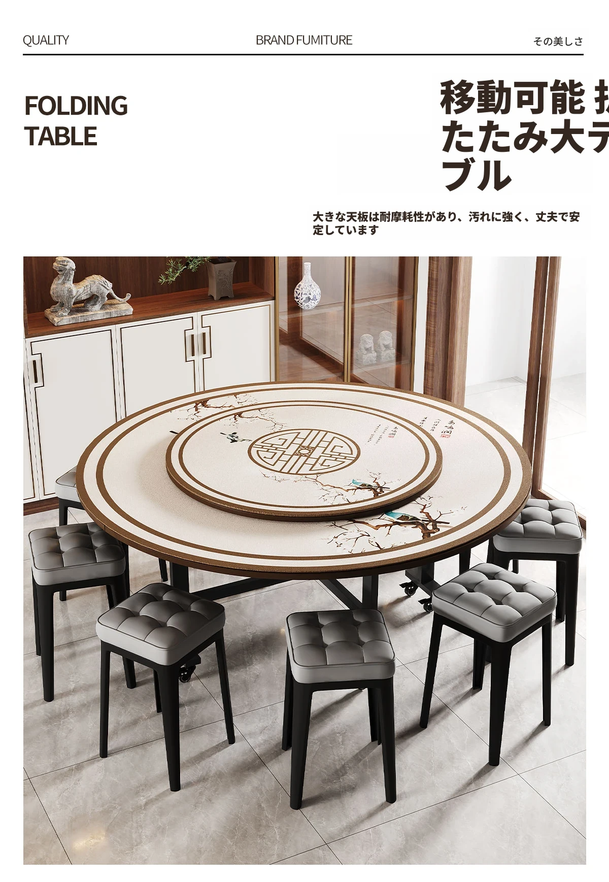 折りたたみ式ダイニングテーブル|小型住宅向け|10人から15人用|移動可能な大きな円卓|回転盤付きで食事がもっと楽しくなる!