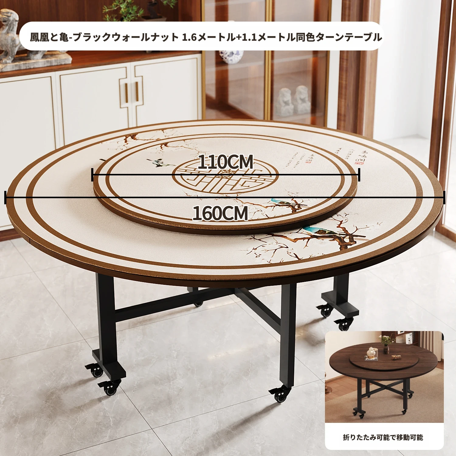 鳳凰と竜-1.6m【ブラックウォールナット柄】同色の回転盤付き 汚れ防止耐摩耗[輸出品質]