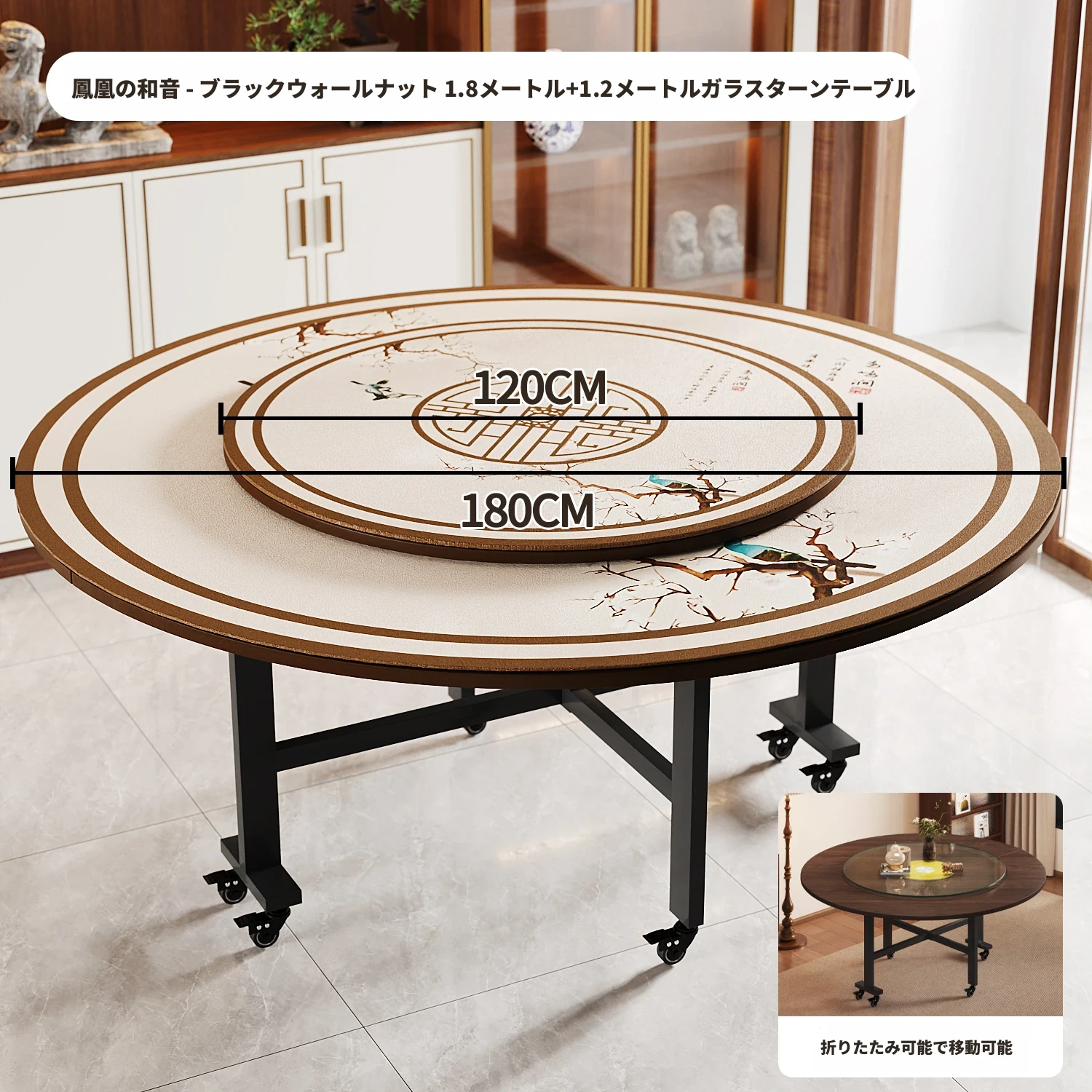 鳳凰と竜-1.8m【ブラックウォールナット柄】ガラス回転盤付き 汚れ防止耐摩耗[輸出品質]
