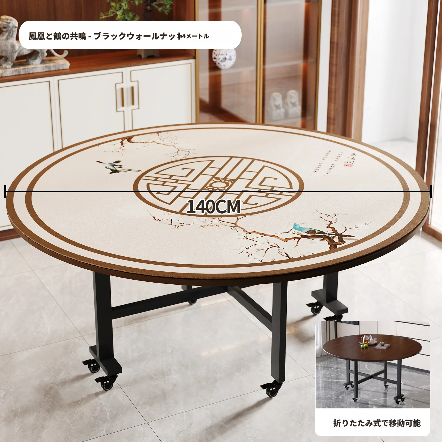 鳳凰と竜-1.4m【ブラックウォールナット柄】同色の回転盤付き 汚れ防止耐摩耗[輸出品質]
