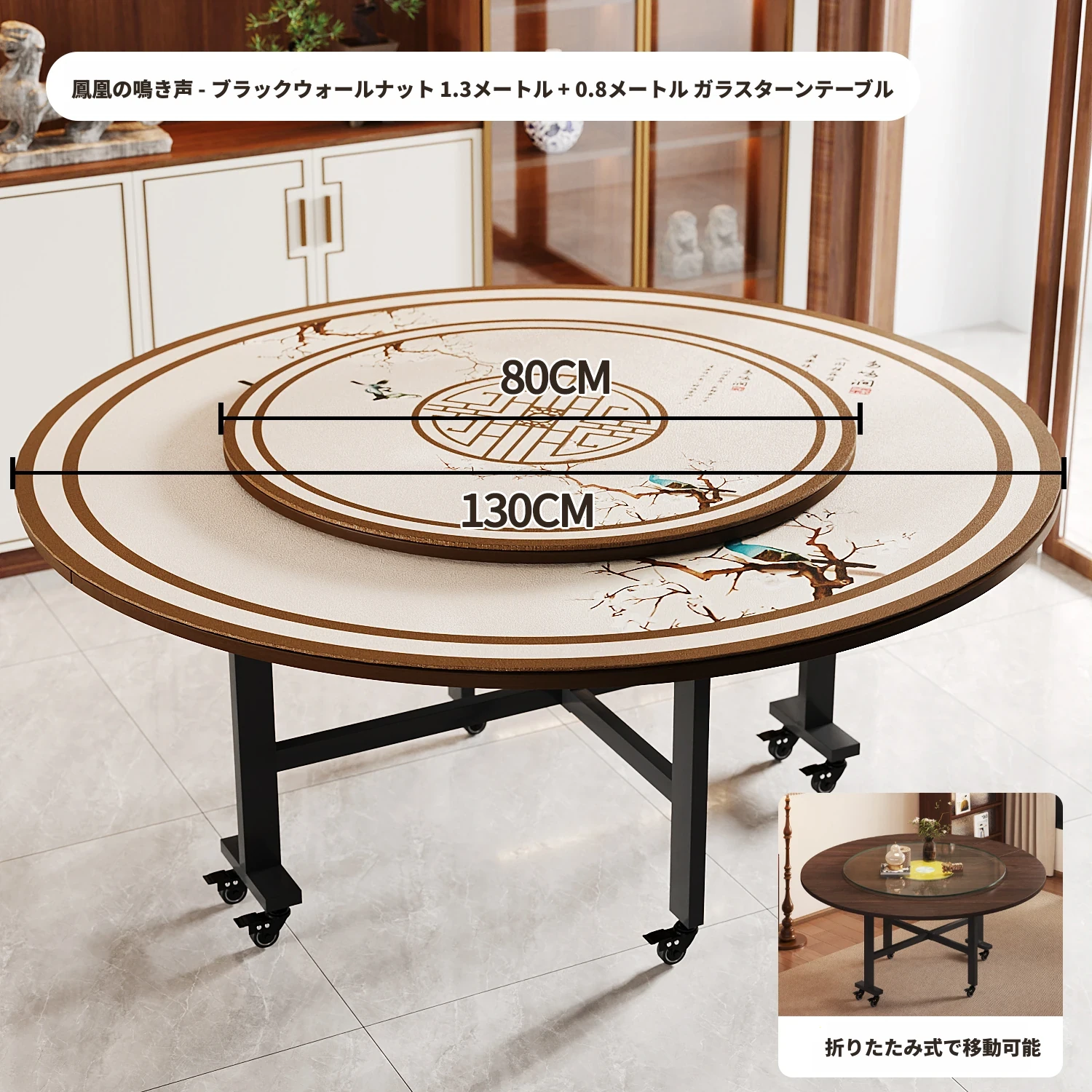 鳳凰と竜-1.3m【ブラックウォールナット柄】ガラス回転盤付き 汚れ防止耐摩耗[輸出品質]