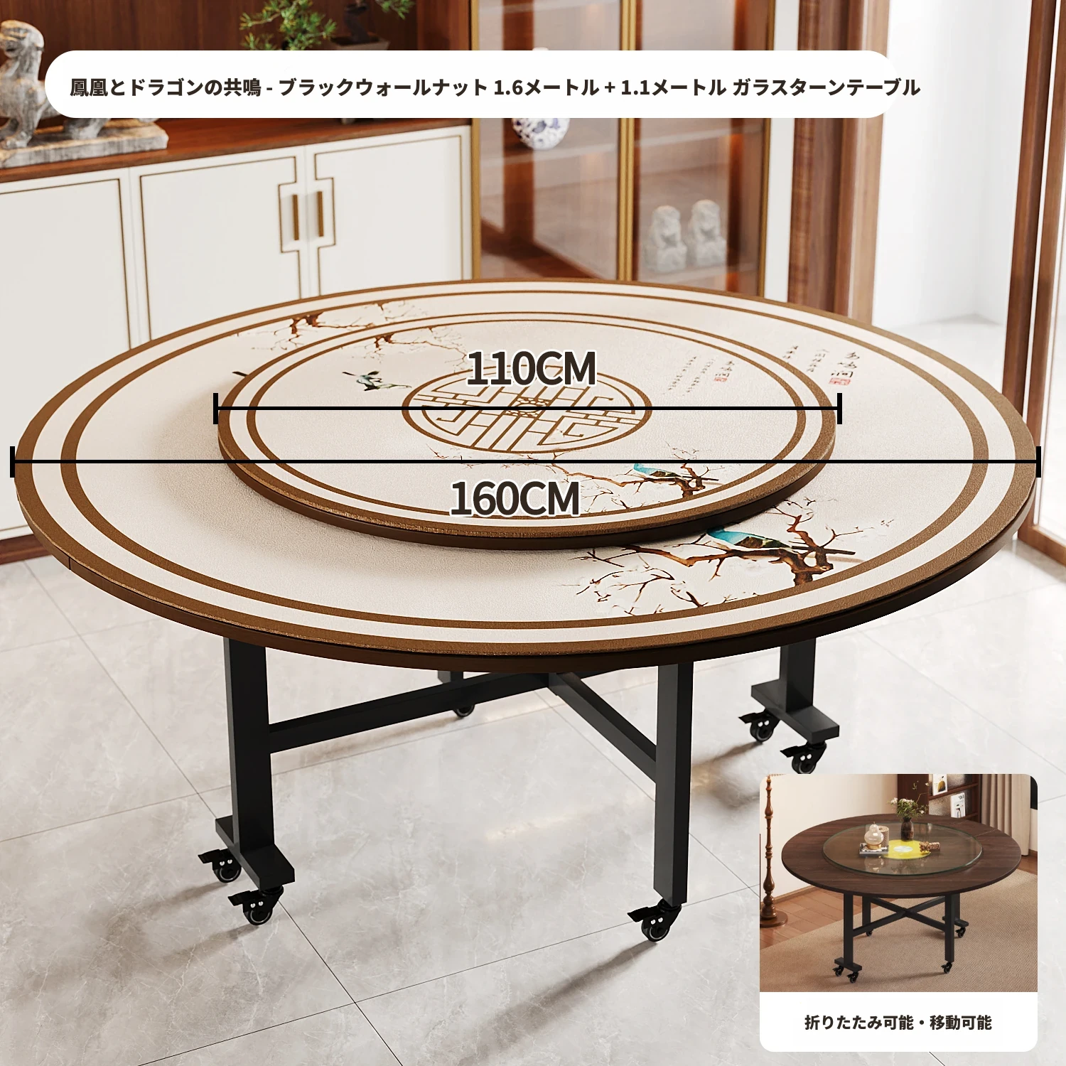鳳凰と竜-1.6m【ブラックウォールナット柄】ガラス回転盤付き 汚れ防止耐摩耗[輸出品質]