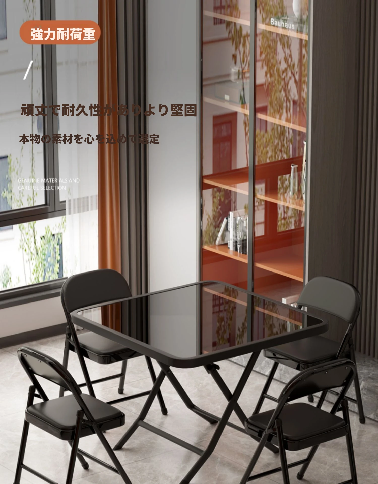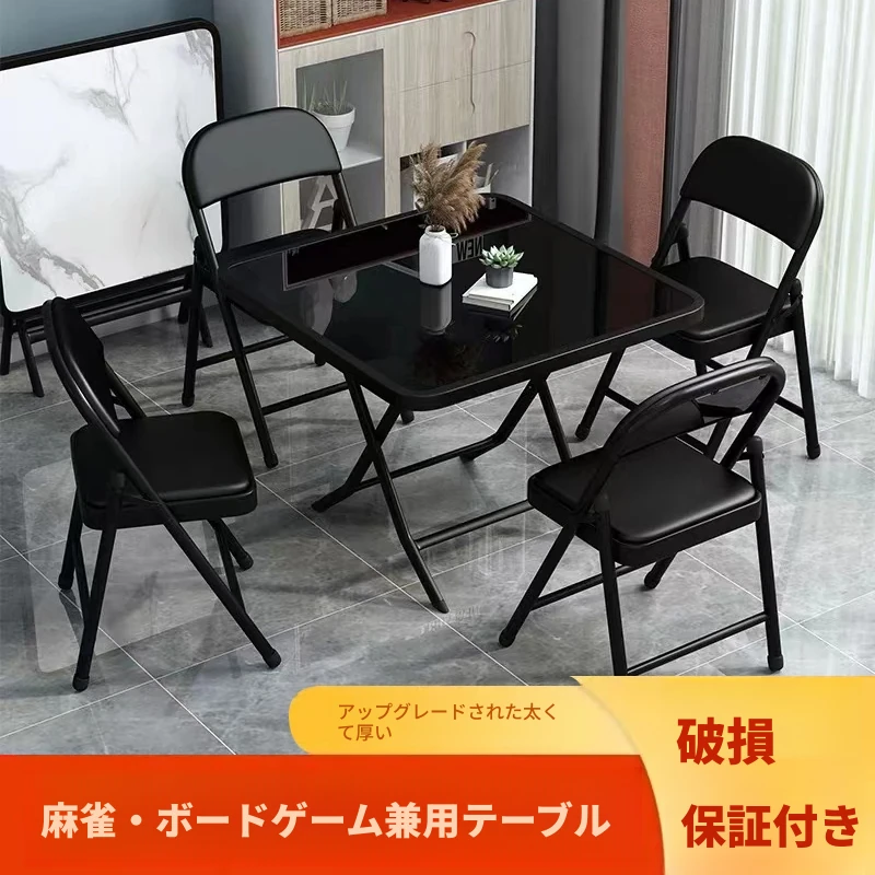 100平方テーブル四椅子【黒色強化ガラスモデル】 ★麻雀テーブルクロス付き