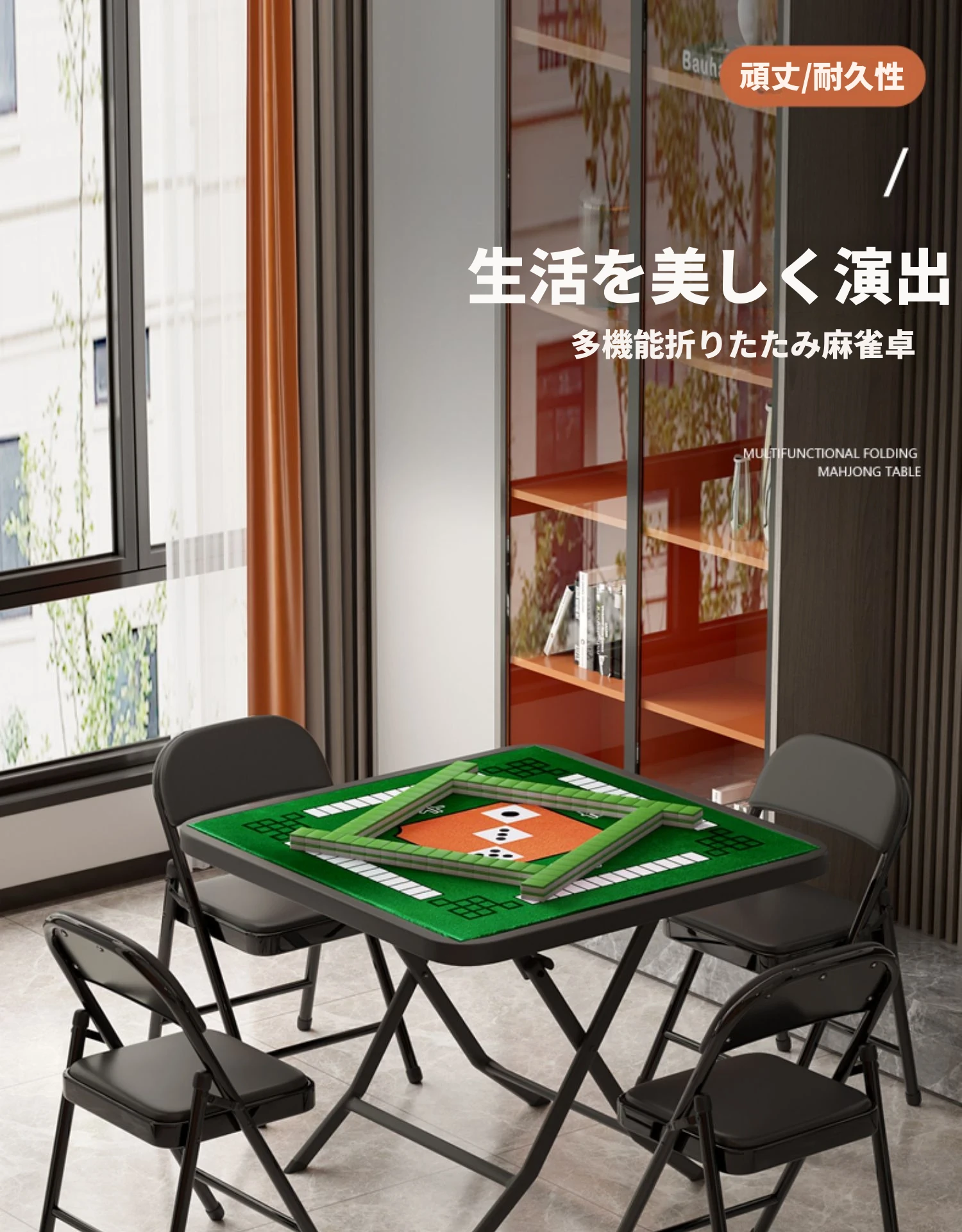 折りたたみ式麻雀テーブル - 家庭用のコンパクトな卓上ゲームセット!寮や小さなスペースにも最適な、麻雀やポーカーを楽しむための便利なテーブルと椅子のセットです。