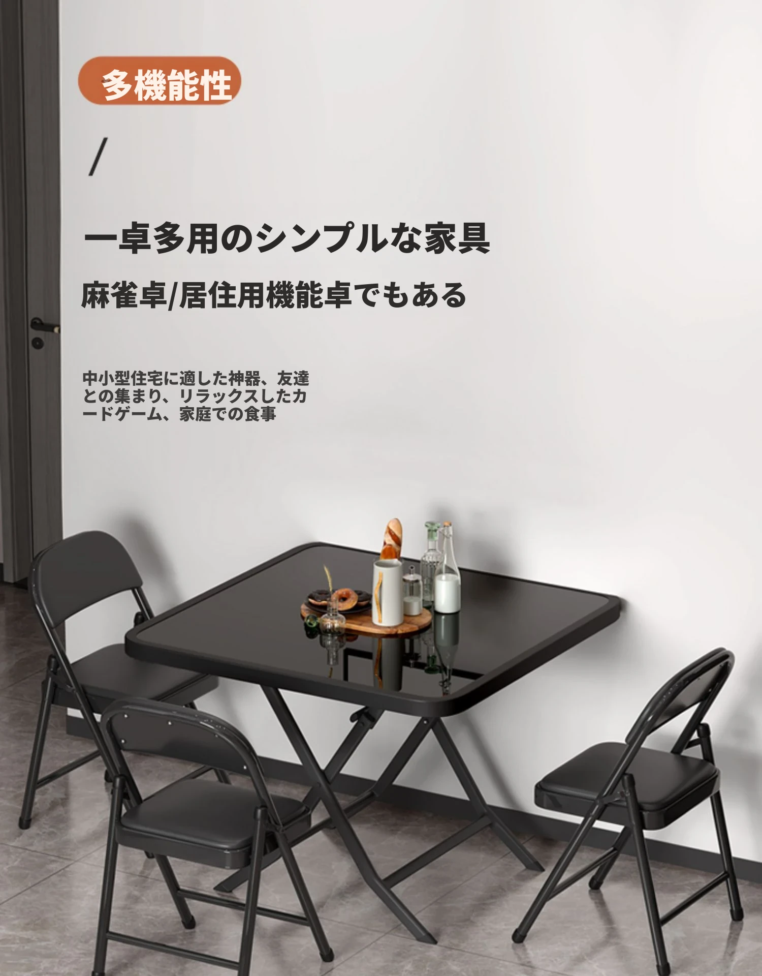 80平方テーブル四椅子【黒色強化ガラスモデル】 ★麻雀テーブルクロス付き