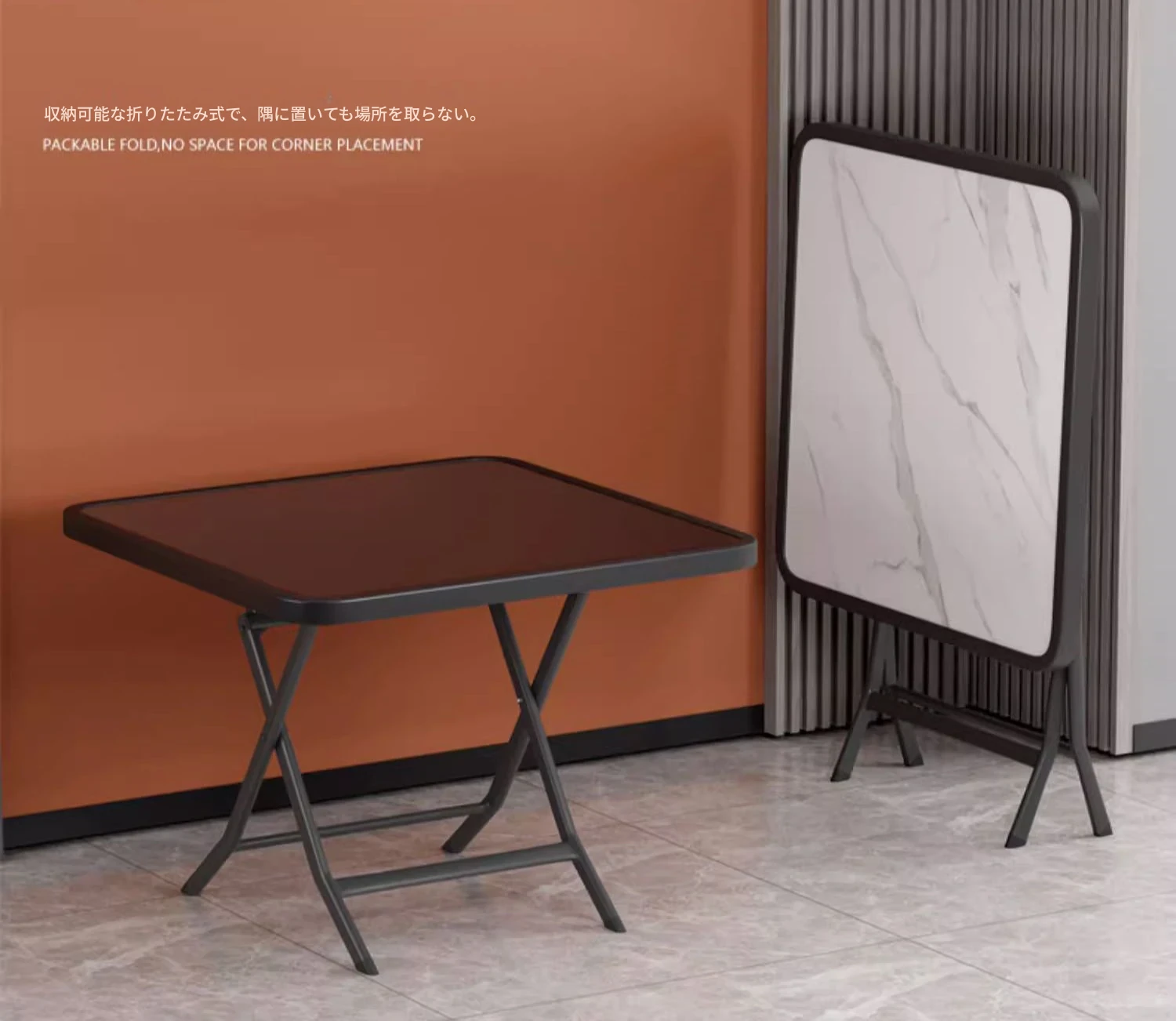 100平方テーブル四椅子【白大理石模様木板モデル】 ★麻雀テーブルクロス付き