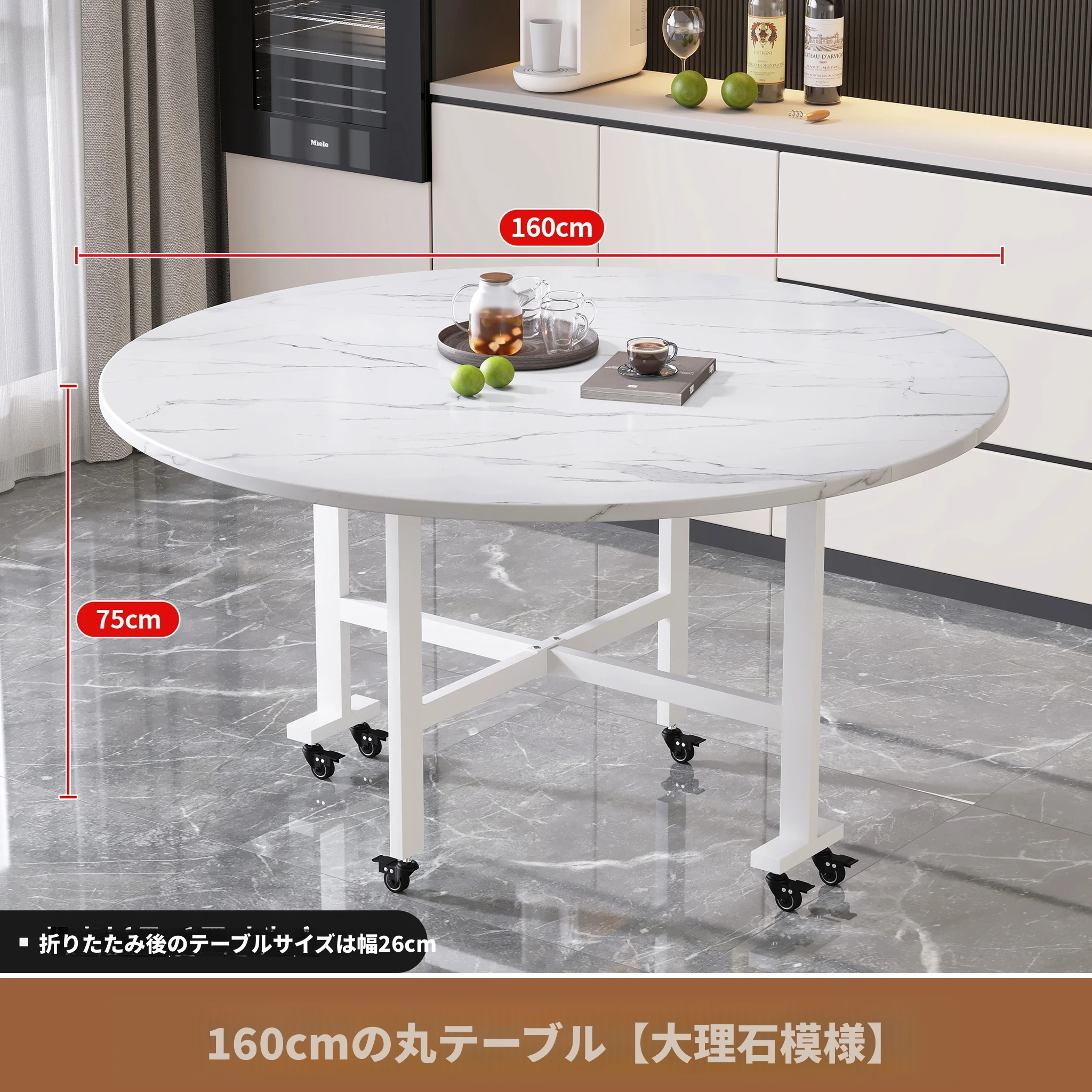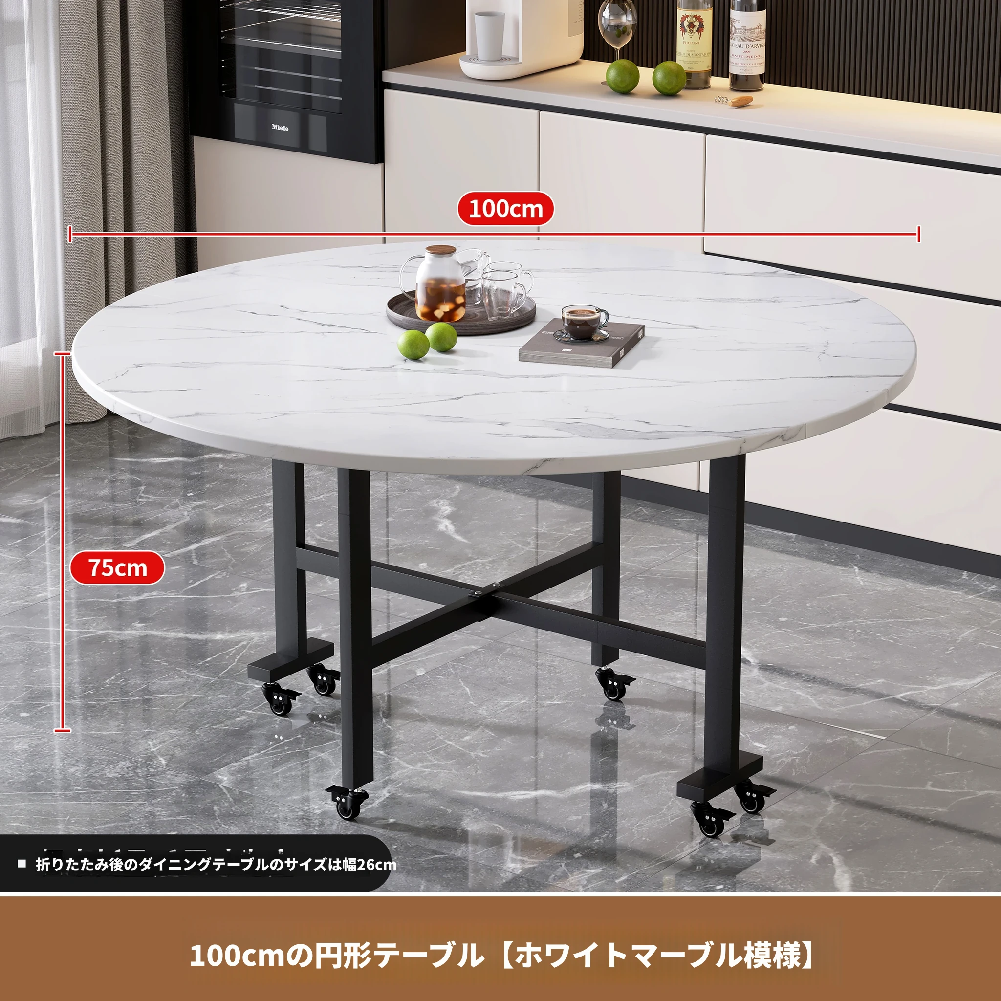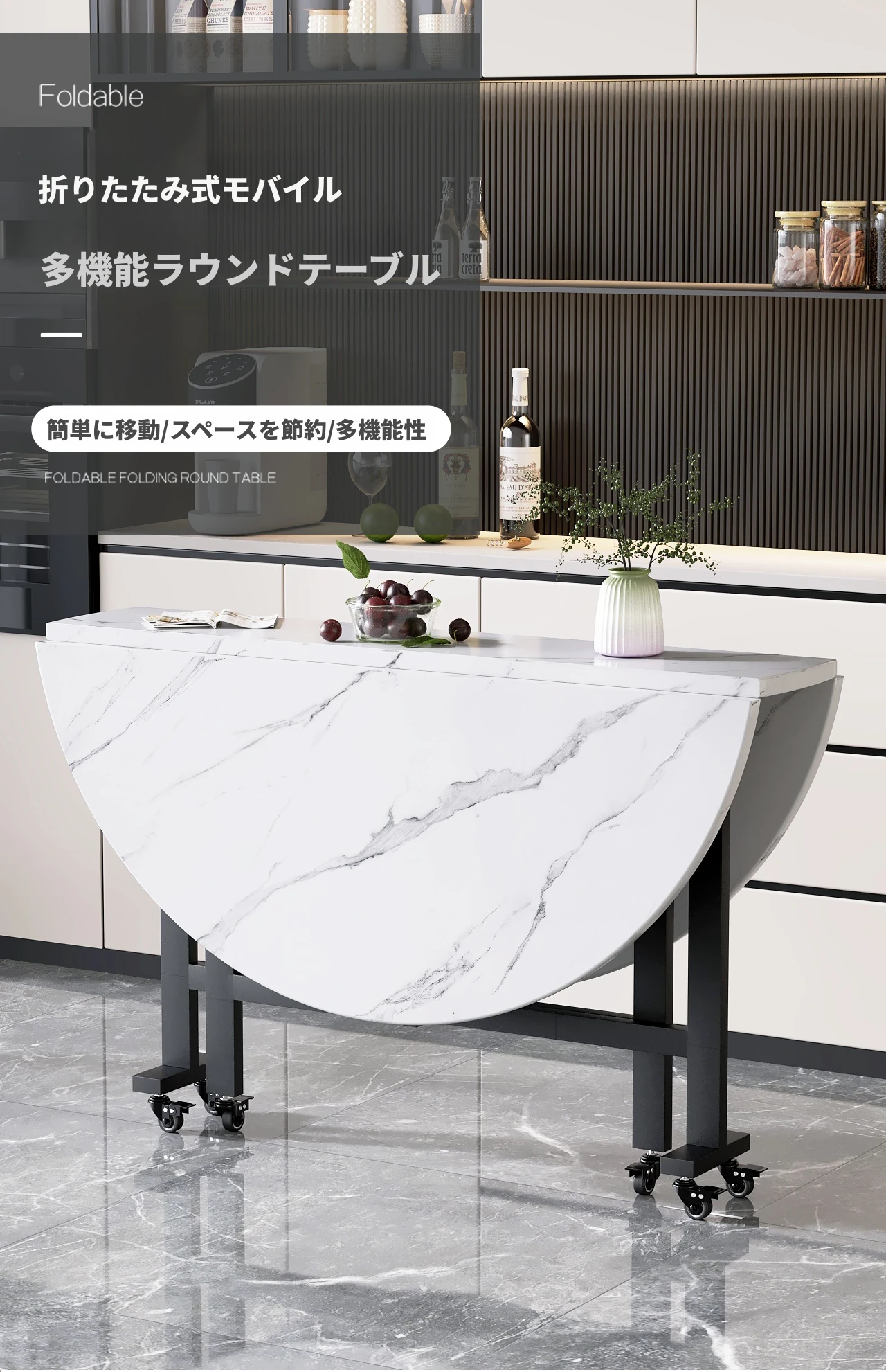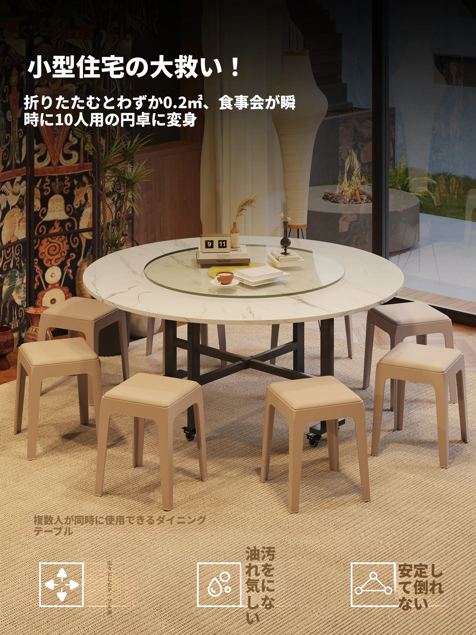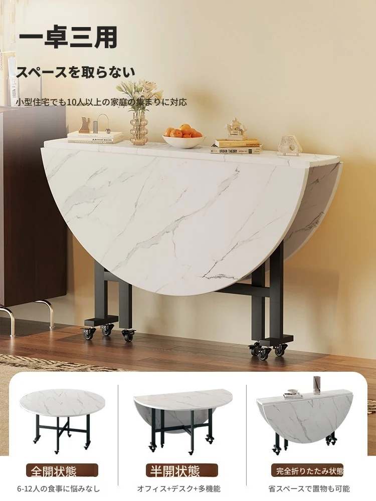 折りたたみ式円卓 - 家庭用・小型スペースに最適!10人用の食卓、移動も簡単な新型折りたたみダイニングテーブル。最大15人まで対応可能な大円卓で、家族や友人との楽しい食事をサポートします!