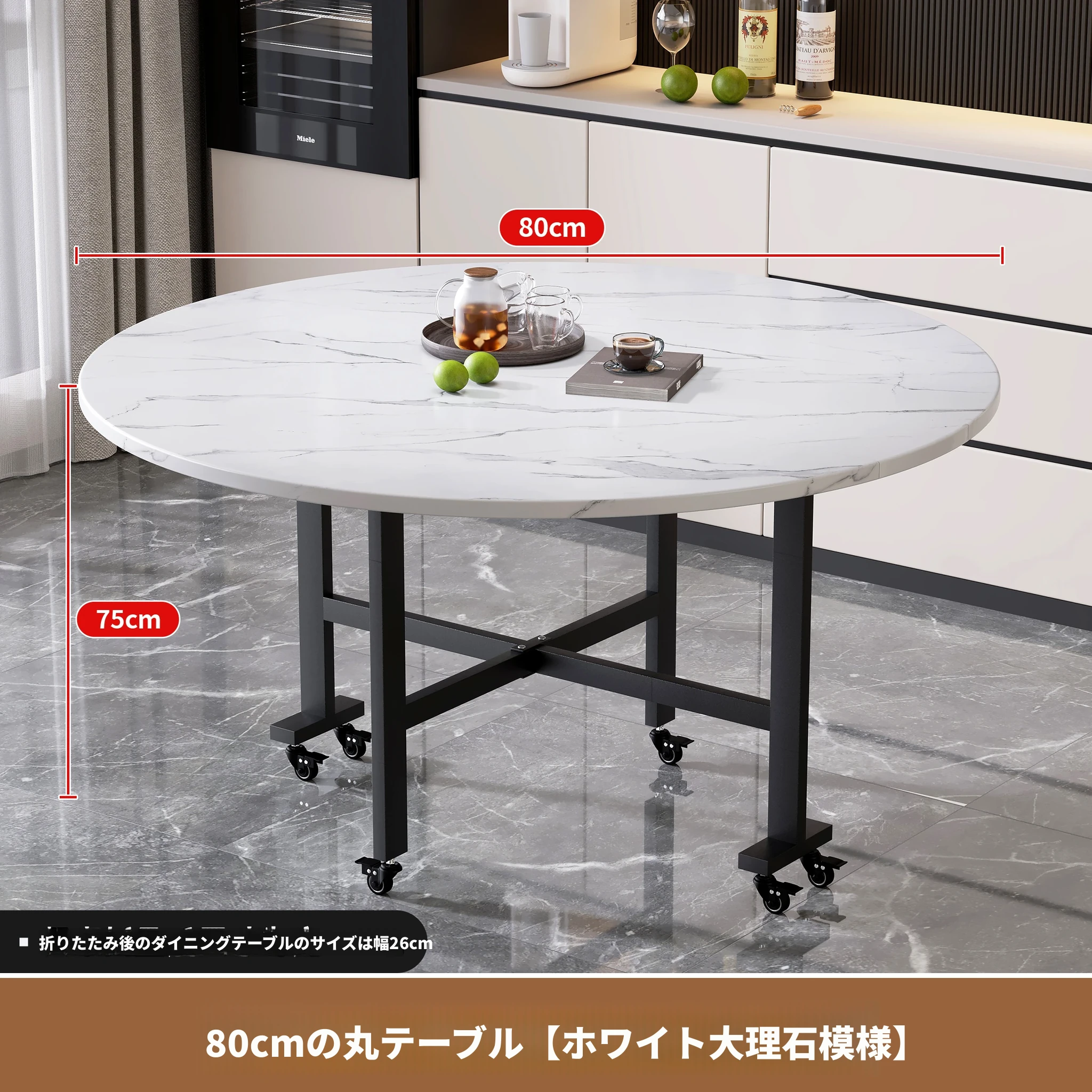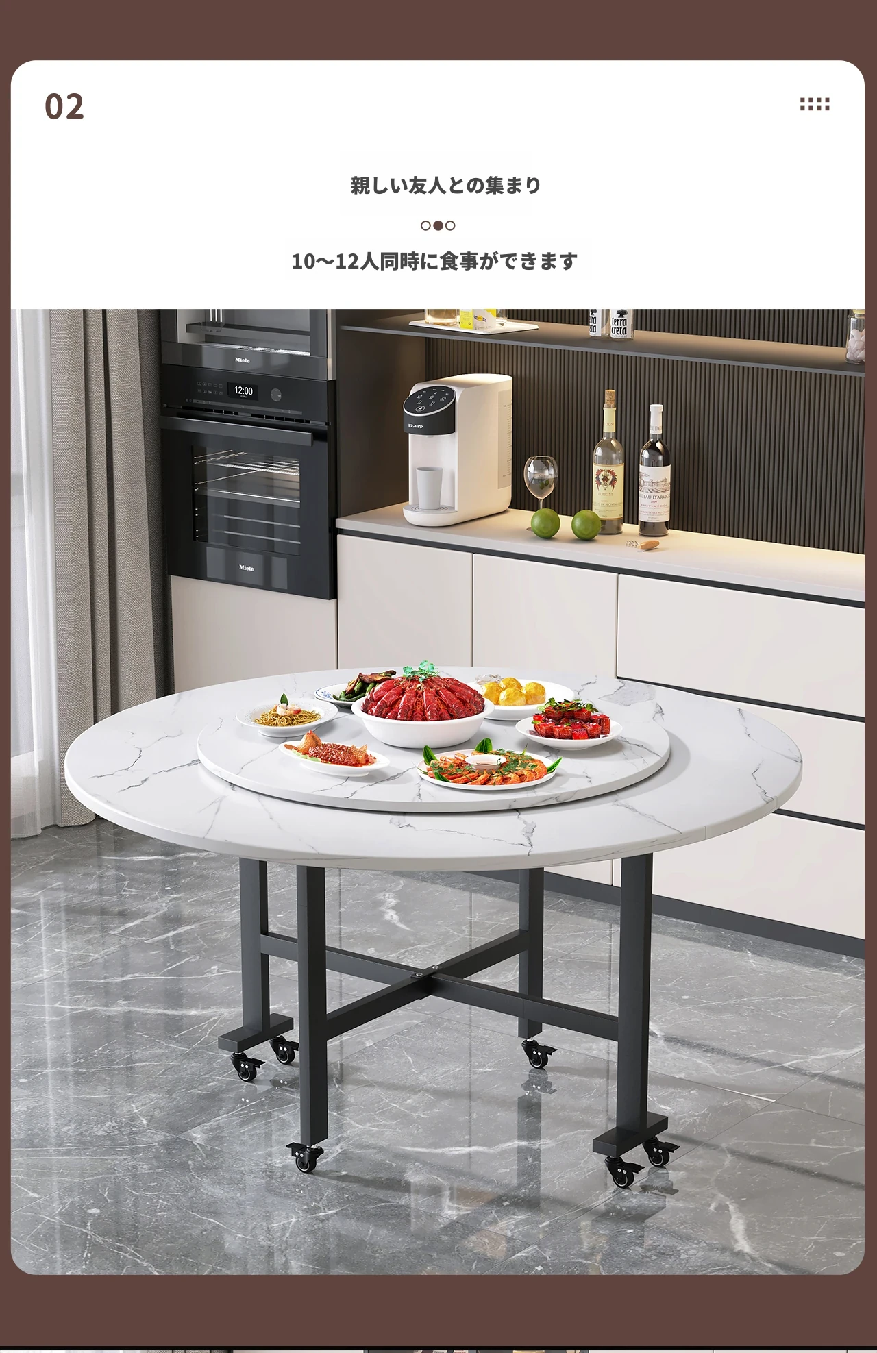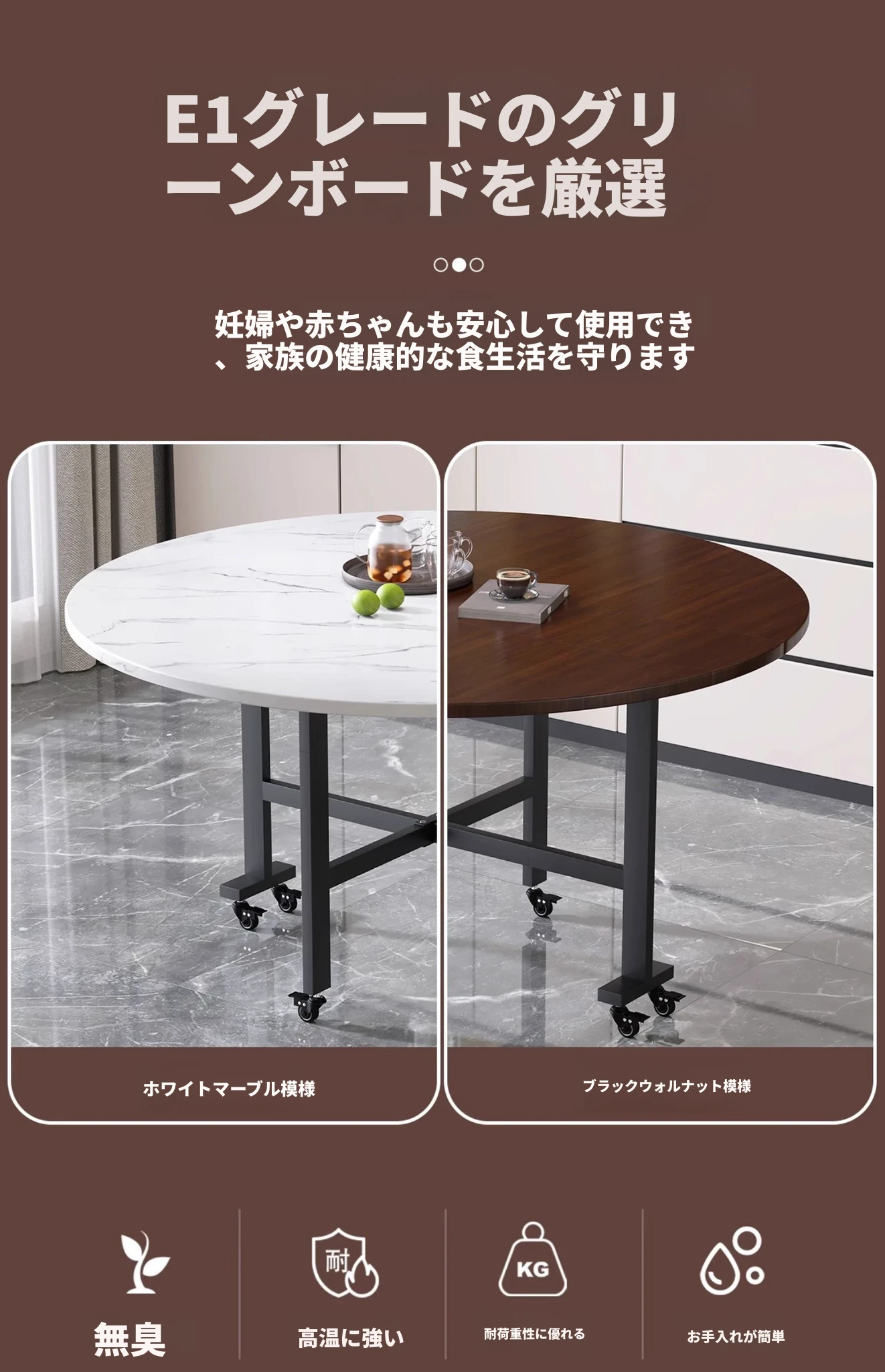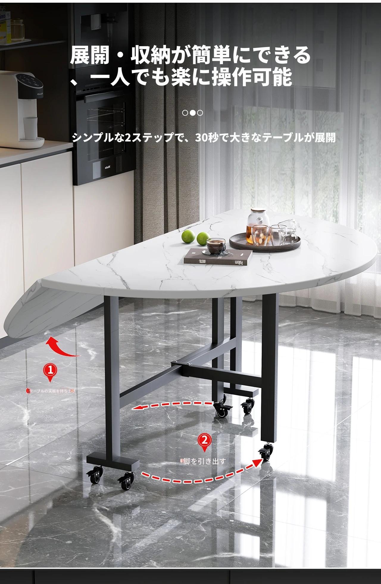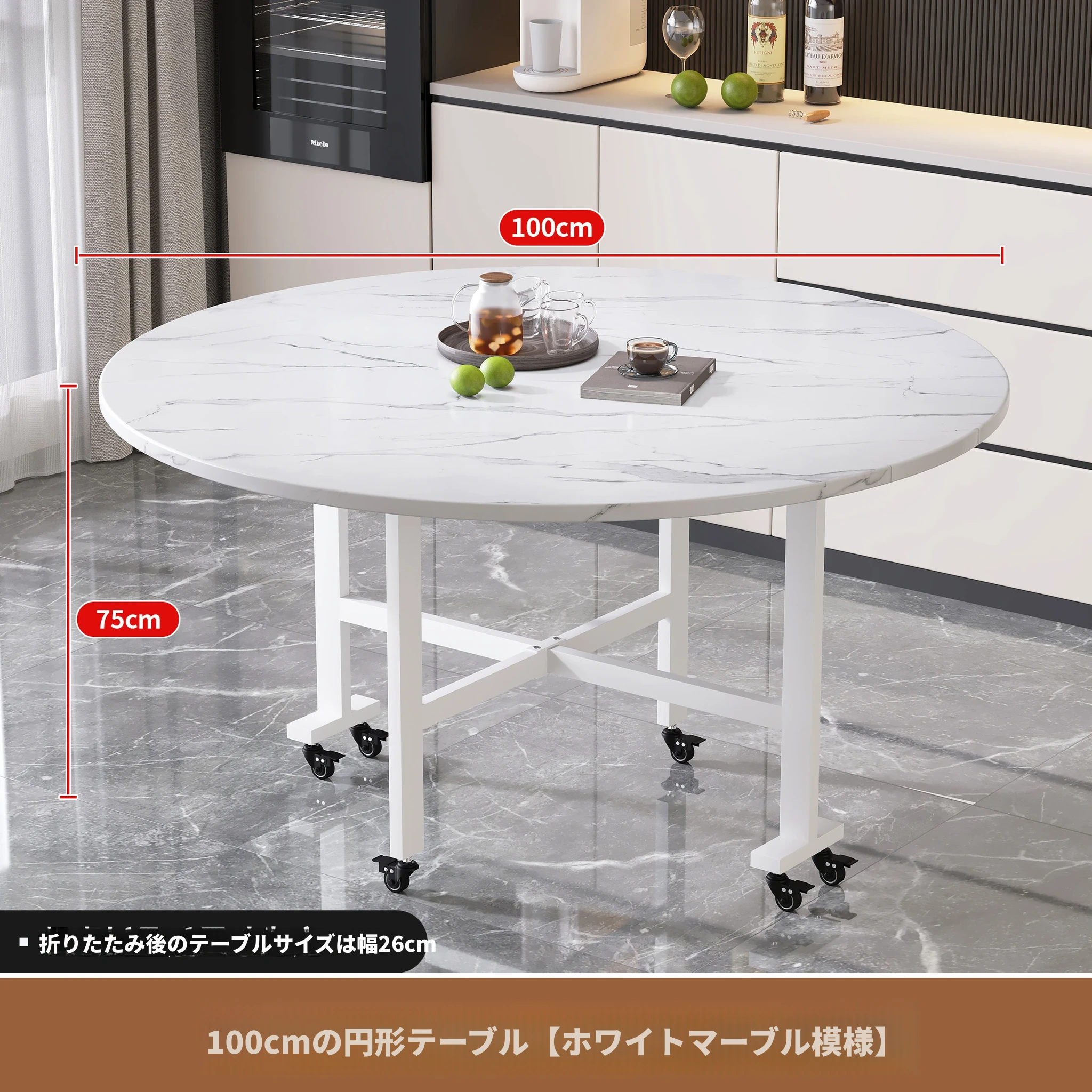 折りたたみ式円卓 - 家庭用・小型スペースに最適!10人用の食卓、移動も簡単な新型折りたたみダイニングテーブル。最大15人まで対応可能な大円卓で、家族や友人との楽しい食事をサポートします!