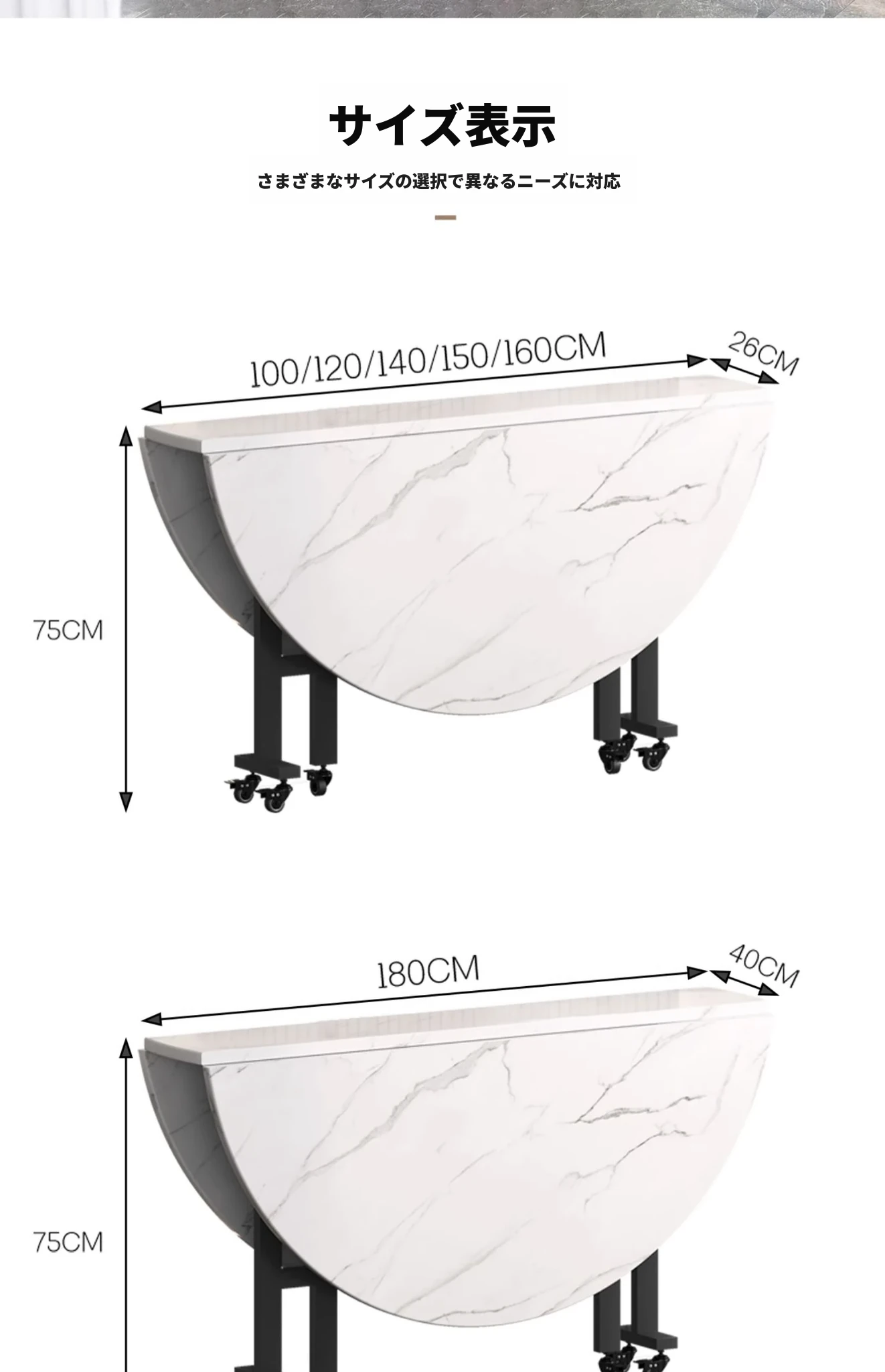 1.0メートル三折テーブル白大理石模様+0.6ターンテーブル