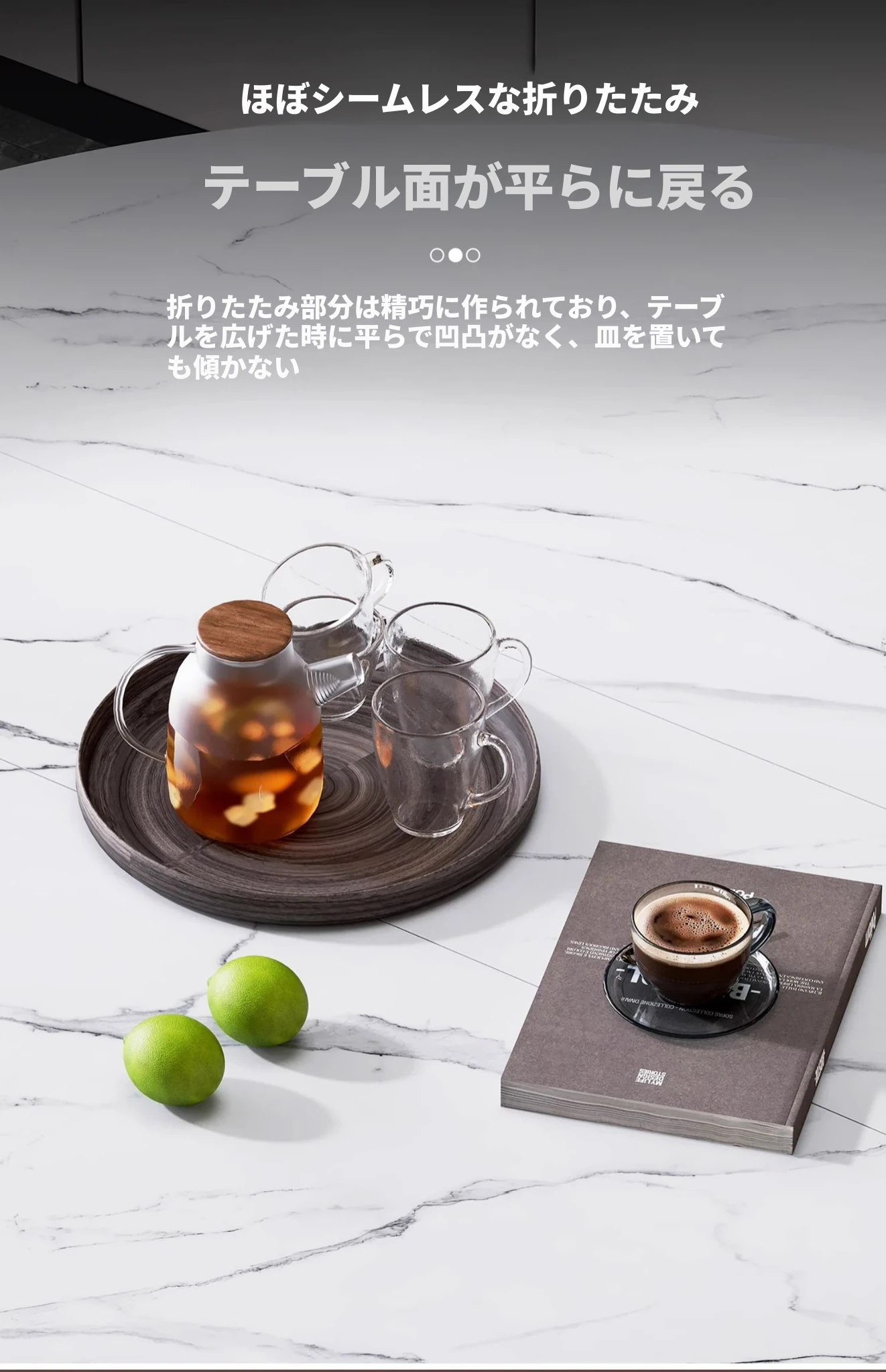1.6メートル三折テーブル白大理石模様+1.1ガラスターンテーブル