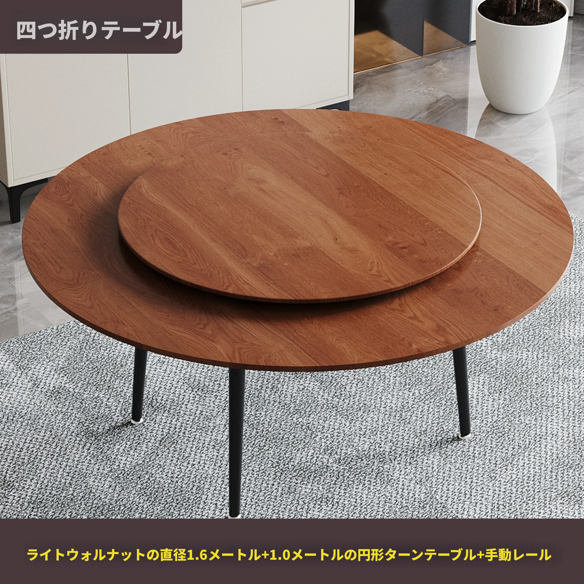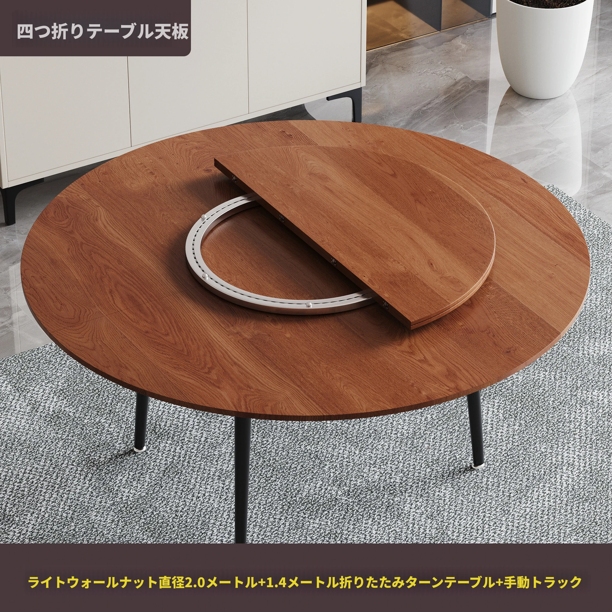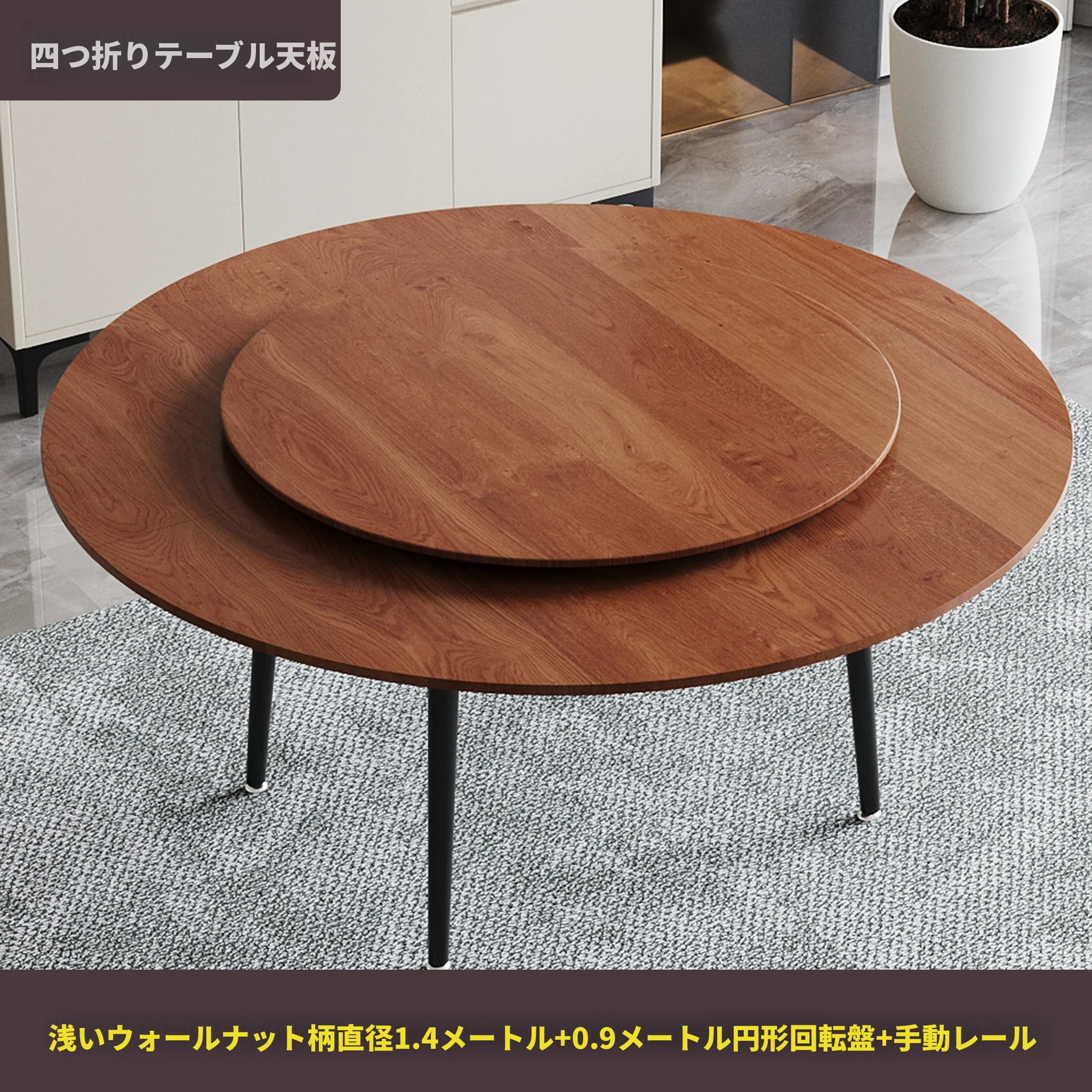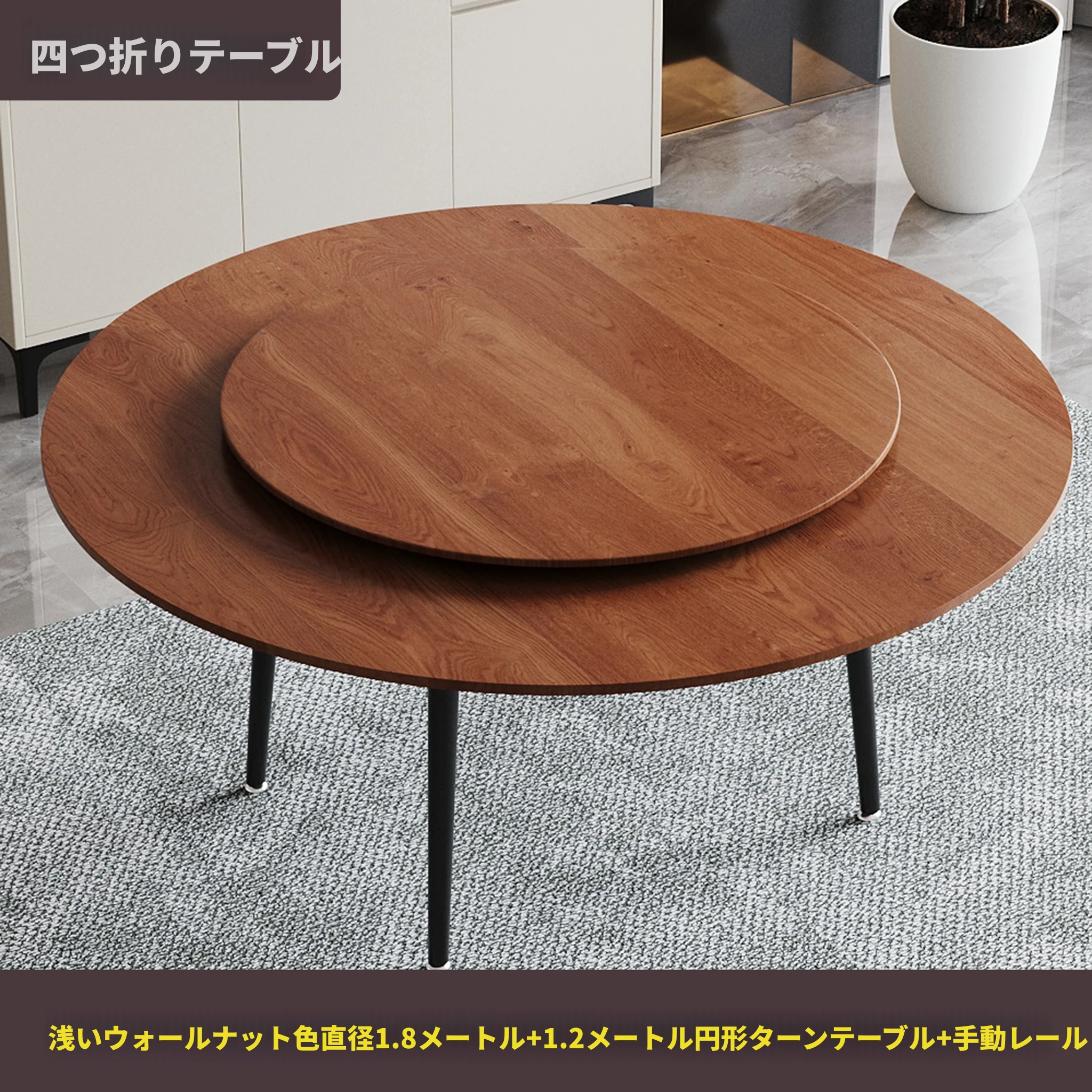 折りたたみ式円形テーブルと回転盤付き!20人用の実木ダイニングテーブル、10人用の4つ折り単独天板。家族や友人との楽しい食事に最適です!