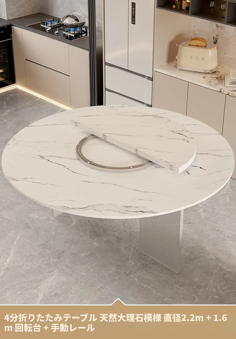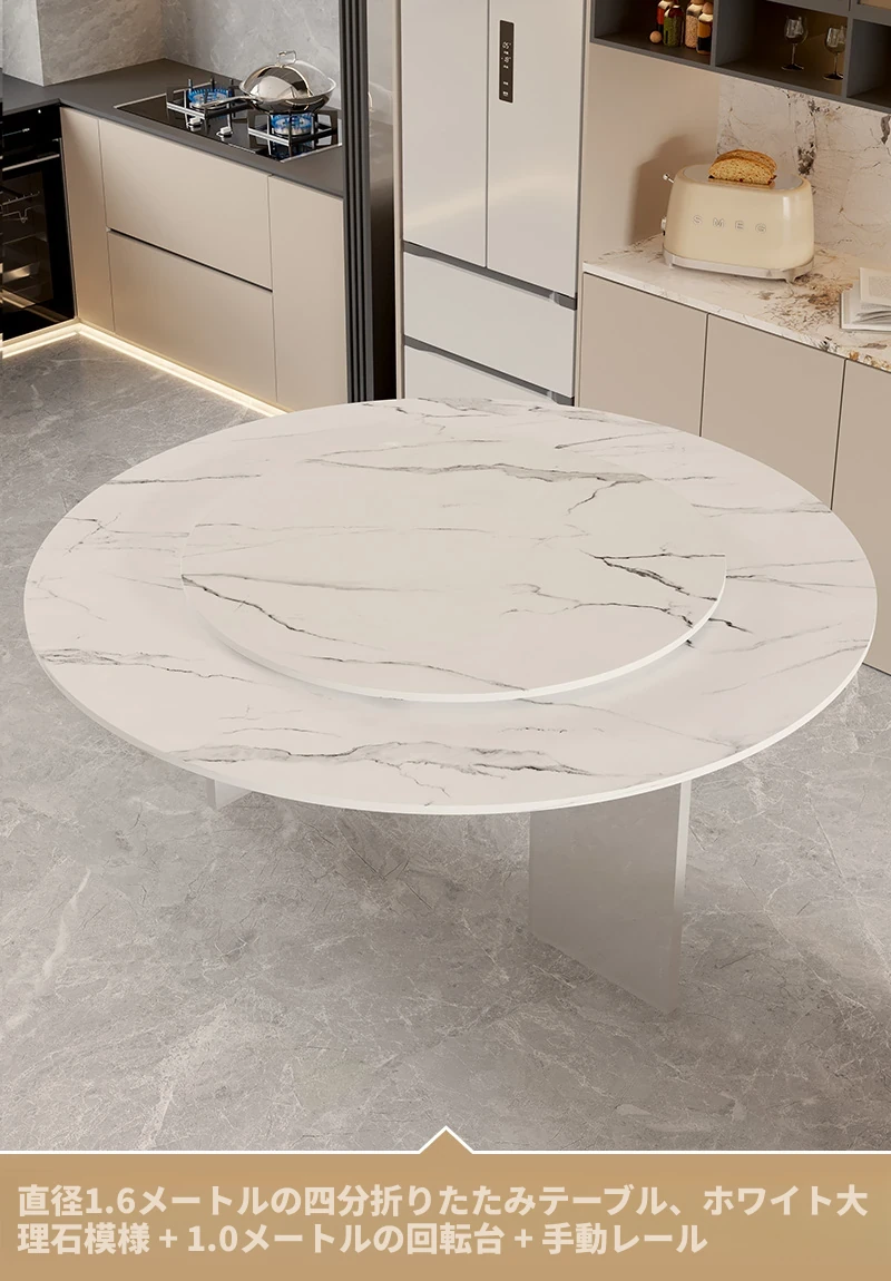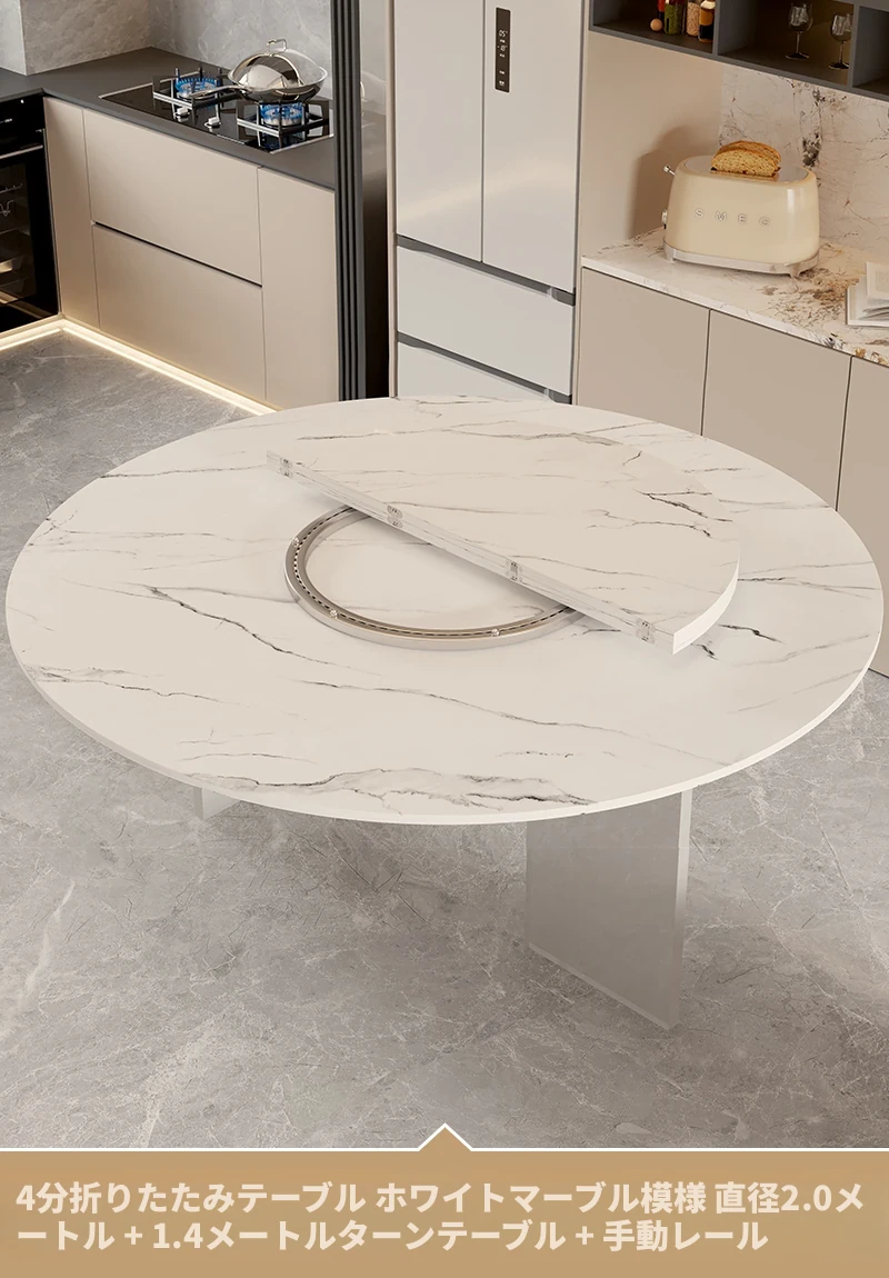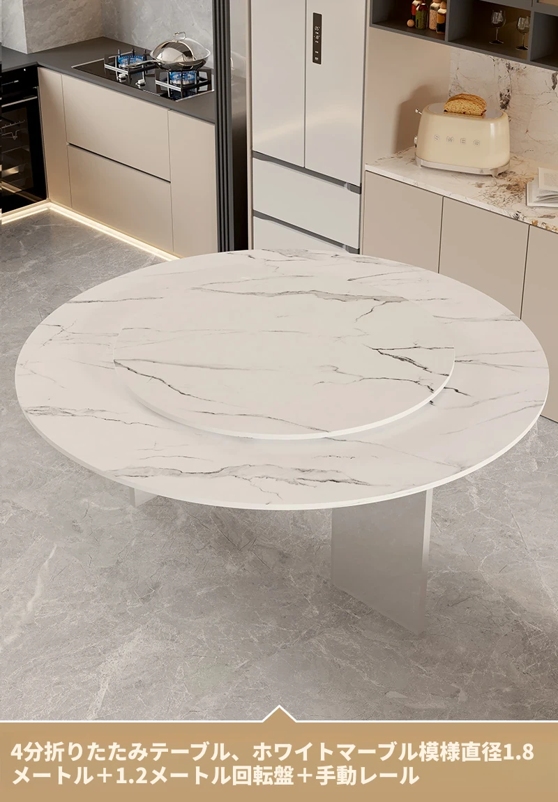 折りたたみ式円形テーブルと回転盤付き!20人用の実木ダイニングテーブル、10人用の4つ折り単独天板。家族や友人との楽しい食事に最適です!