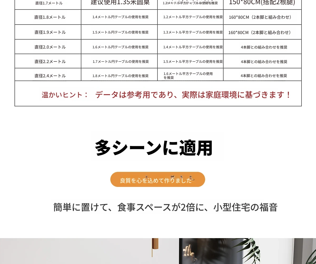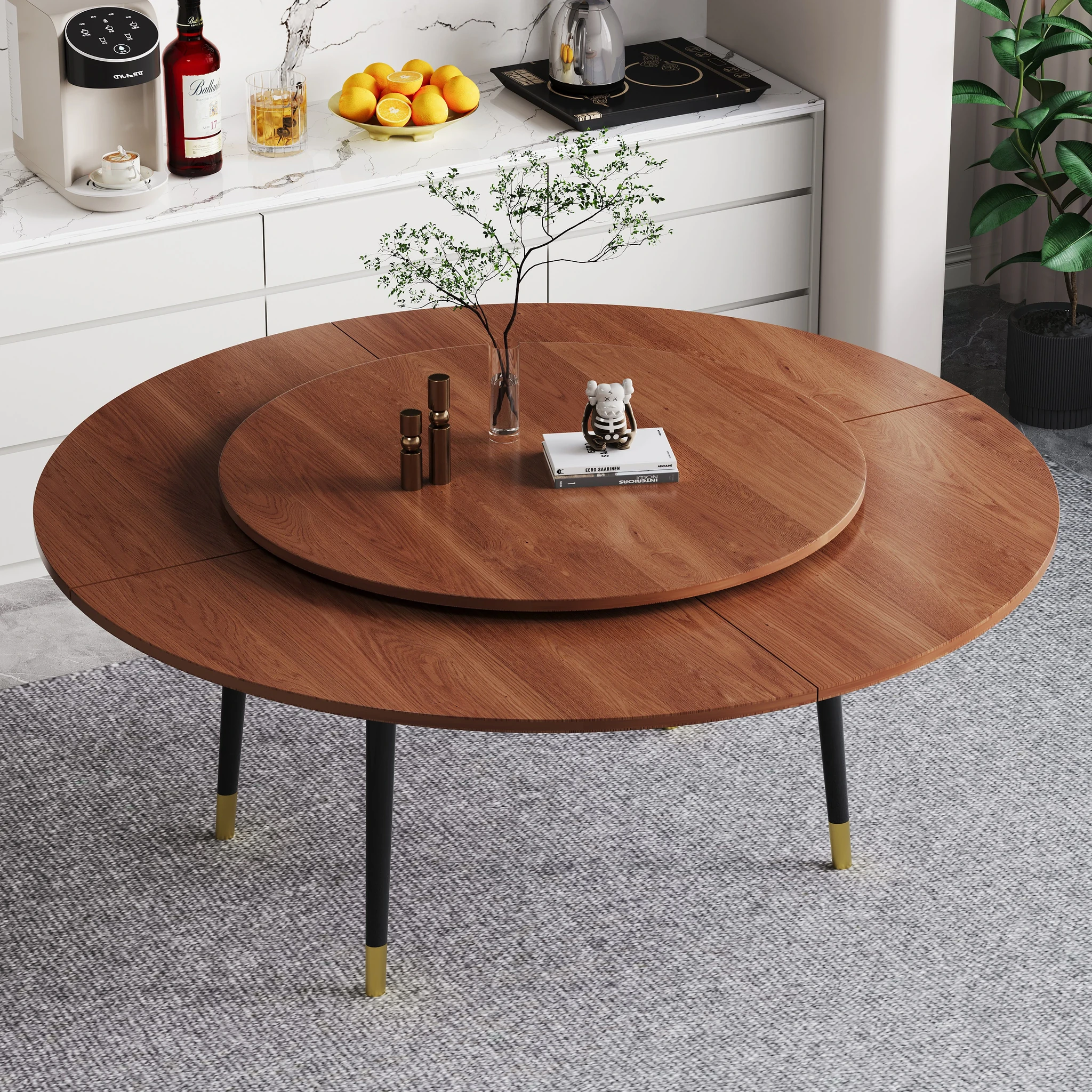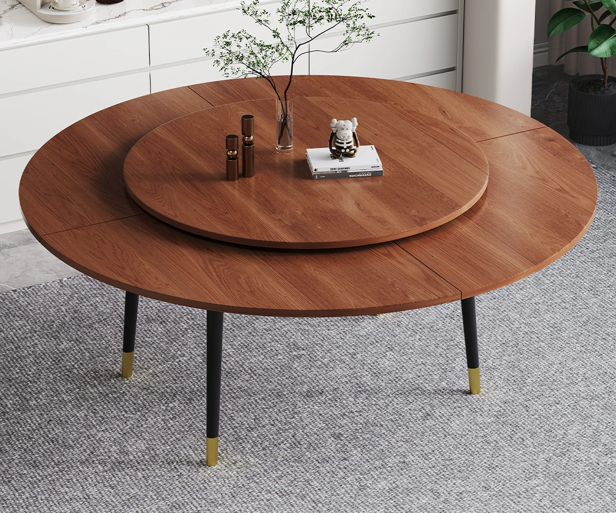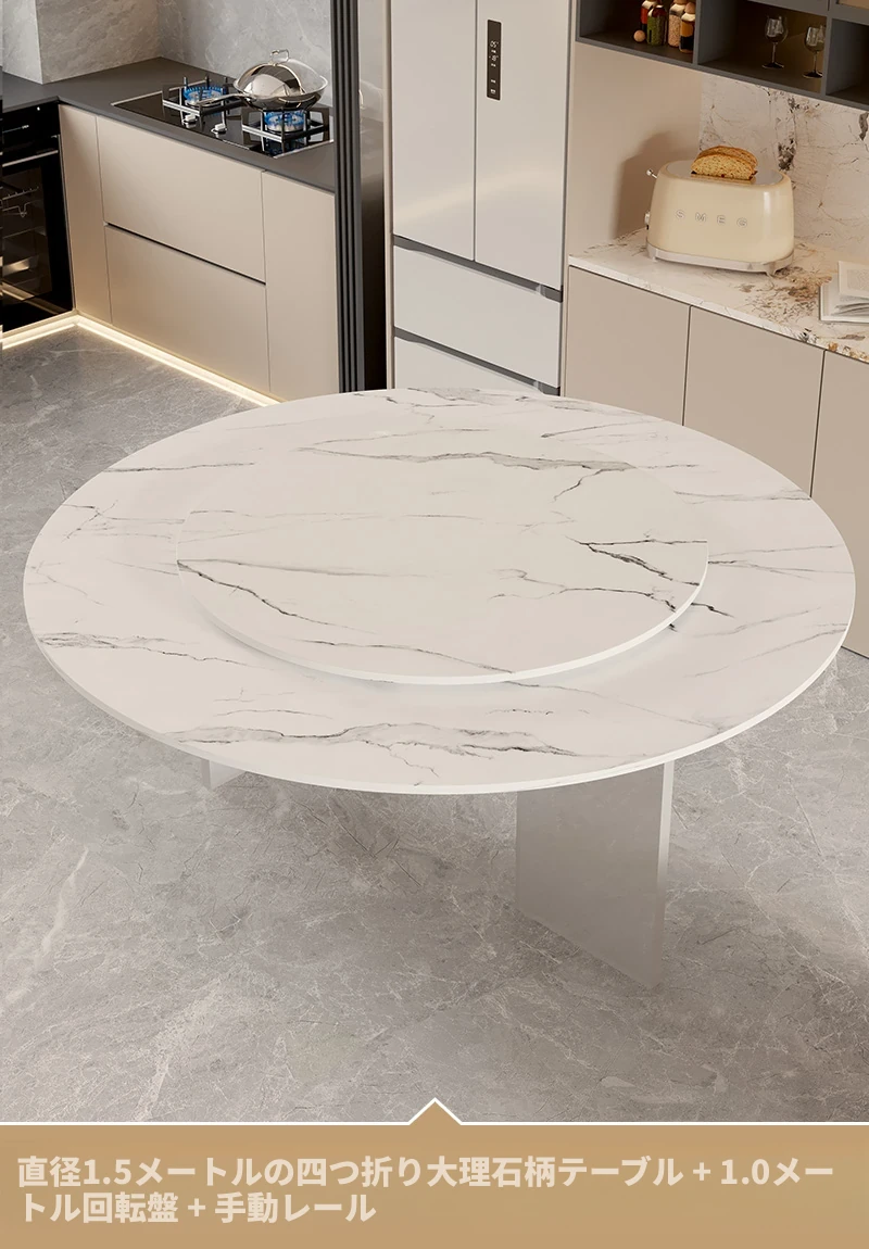 折りたたみ式円形テーブルと回転盤付き!20人用の実木ダイニングテーブル、10人用の4つ折り単独天板。家族や友人との楽しい食事に最適です!