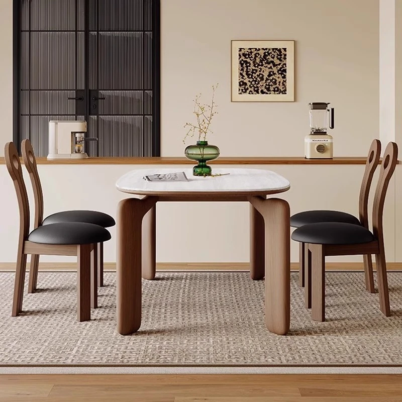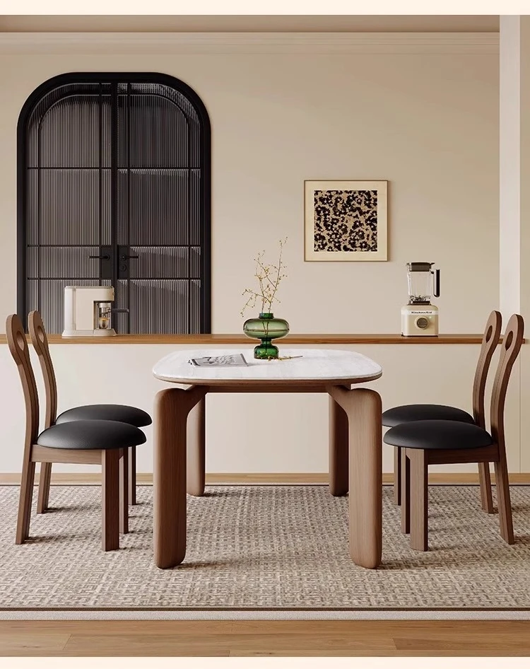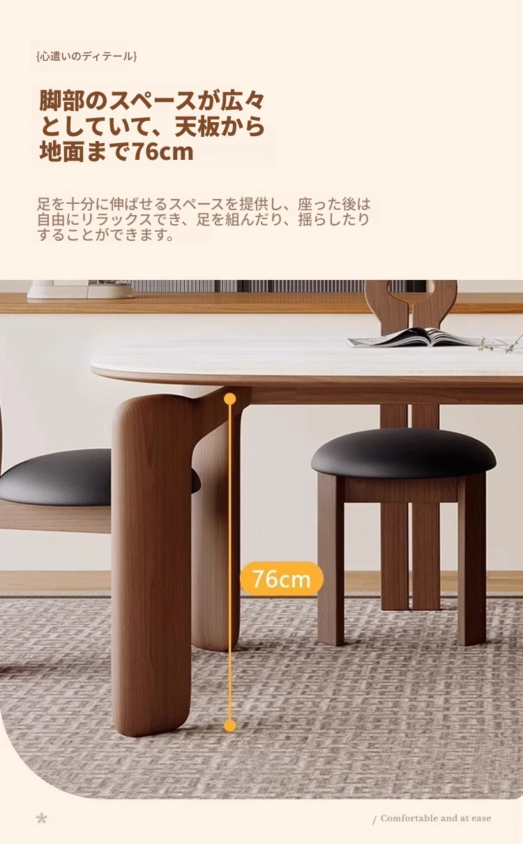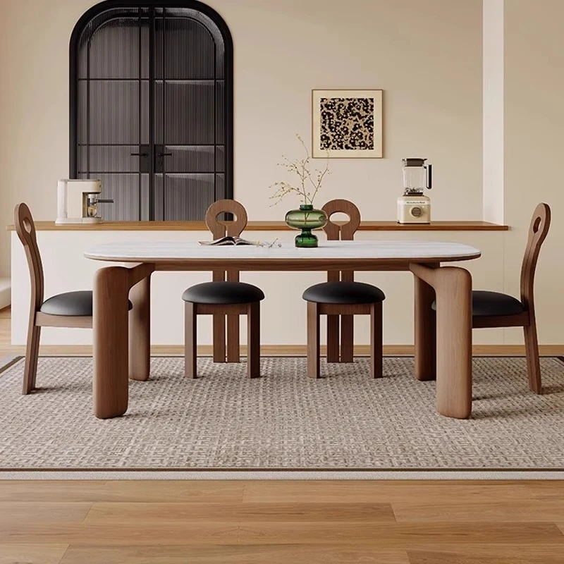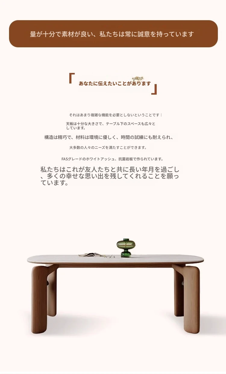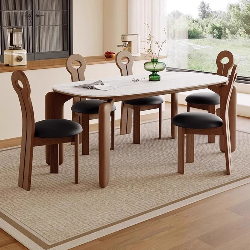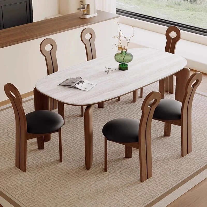 フレンチアンティークスタイルの無垢材ダイニングテーブル - 小さなスペースにぴったり!侘寂風デザインのエレガントな象脚と洞石岩板のオーバルテーブルセットで、食卓をおしゃれに演出します。