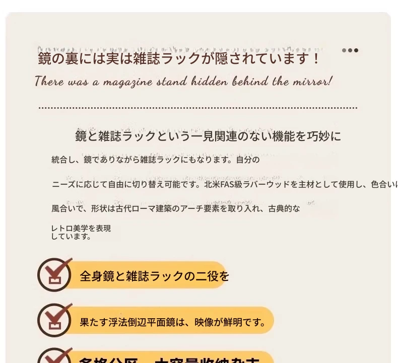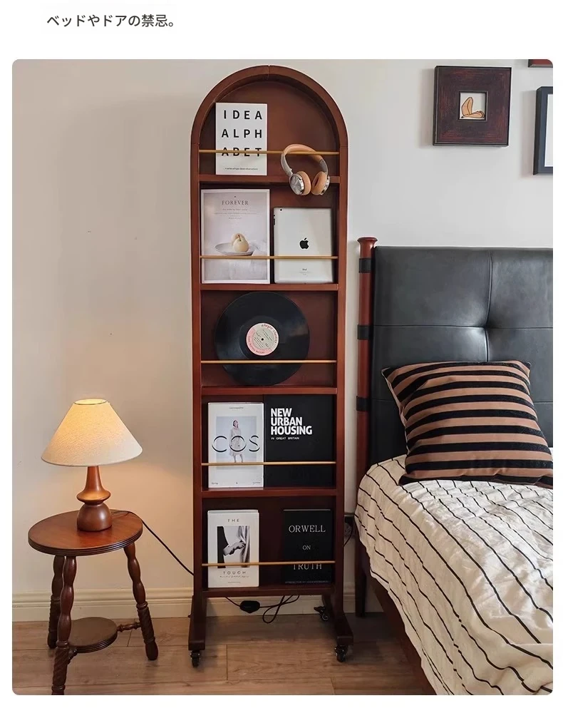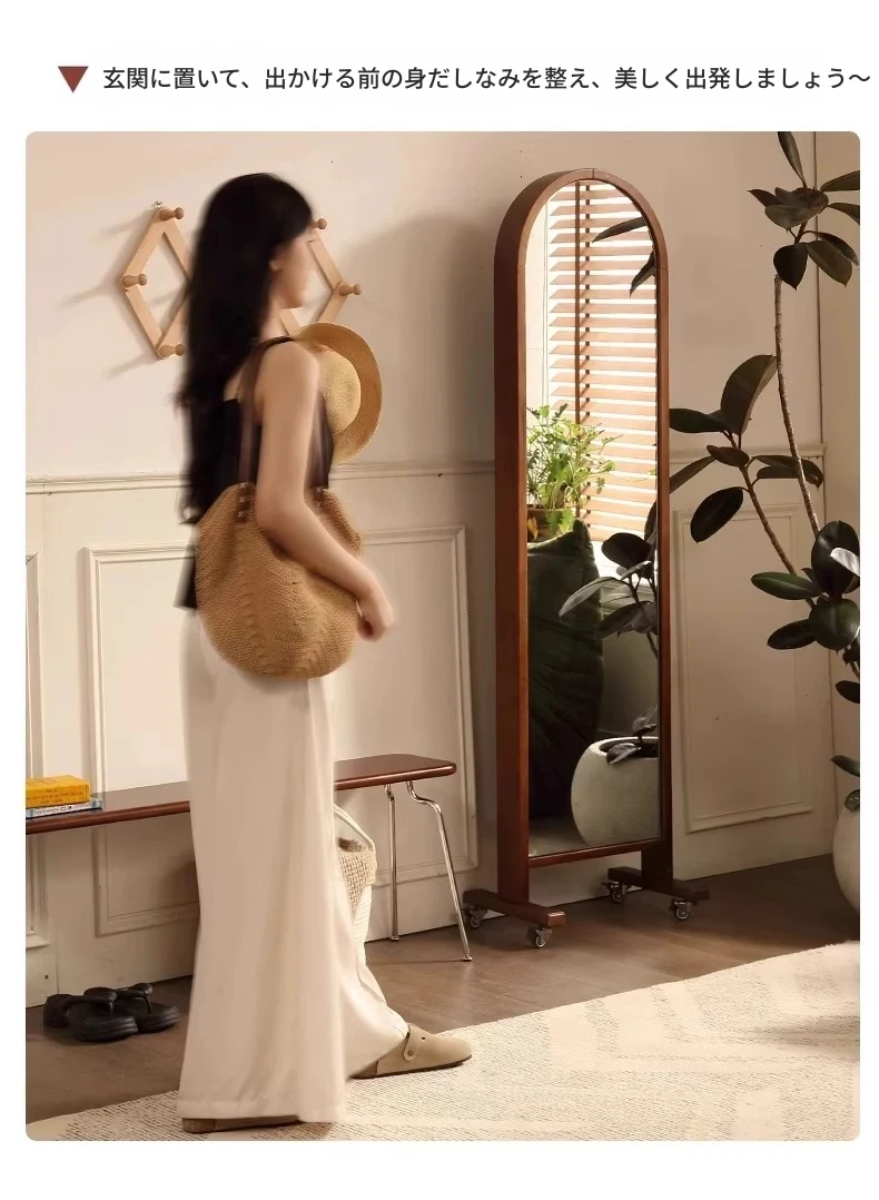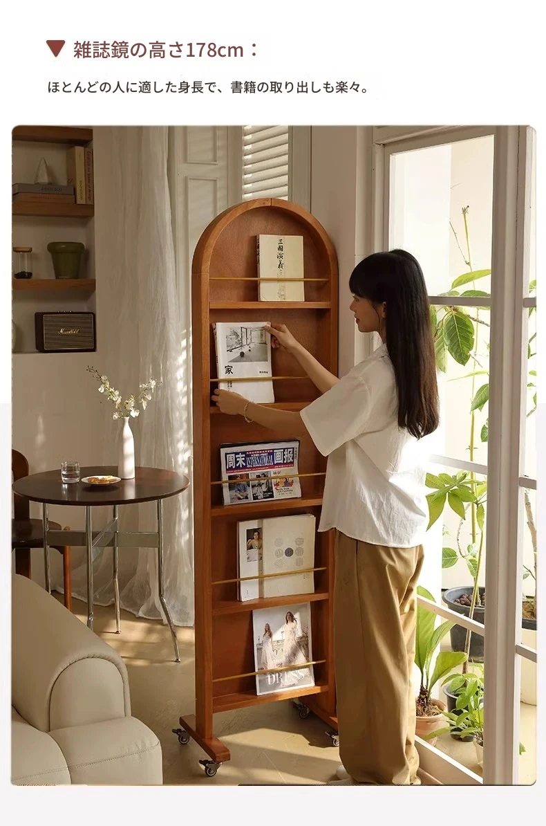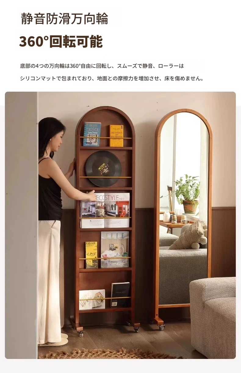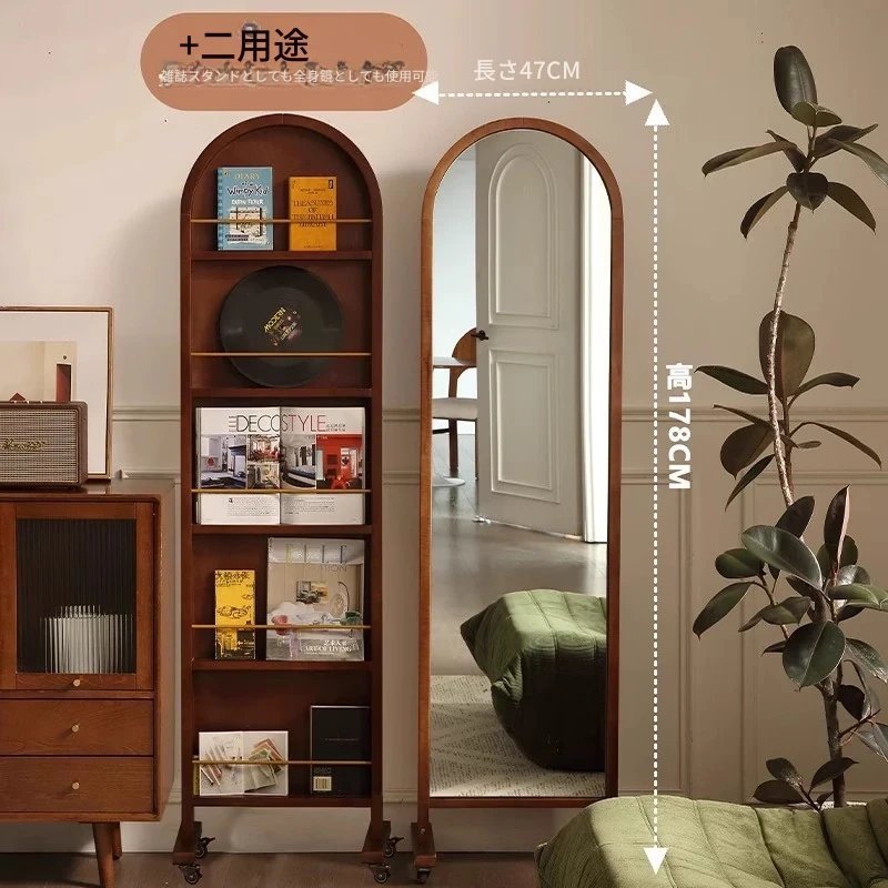 美しい和風の多機能無垢材製全身鏡!収納付きマガジンラックとブックスタンドで、スッキリとしたお部屋を実現。移動可能で、どこにでも便利に使えるアイテムです。あなたの生活空間を彩る一品!