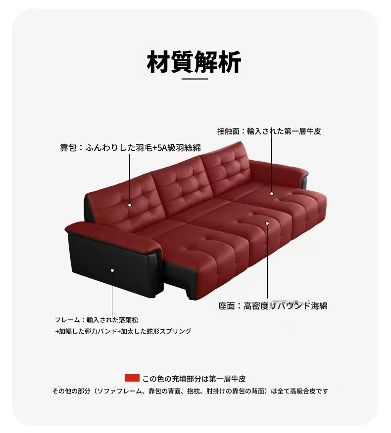 スリーシーター2.85M三電動【国産本革+45D高密度スポンジ】