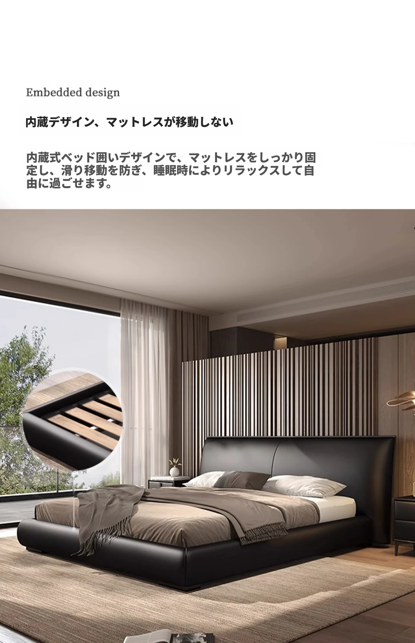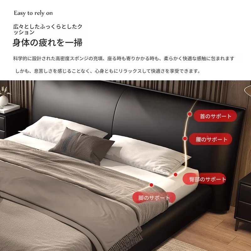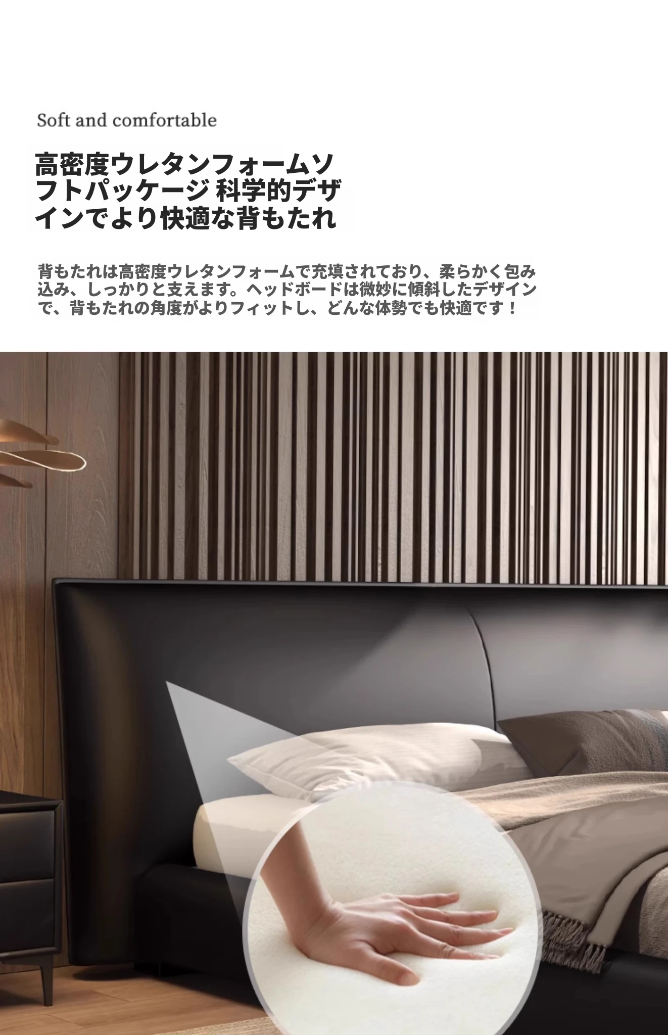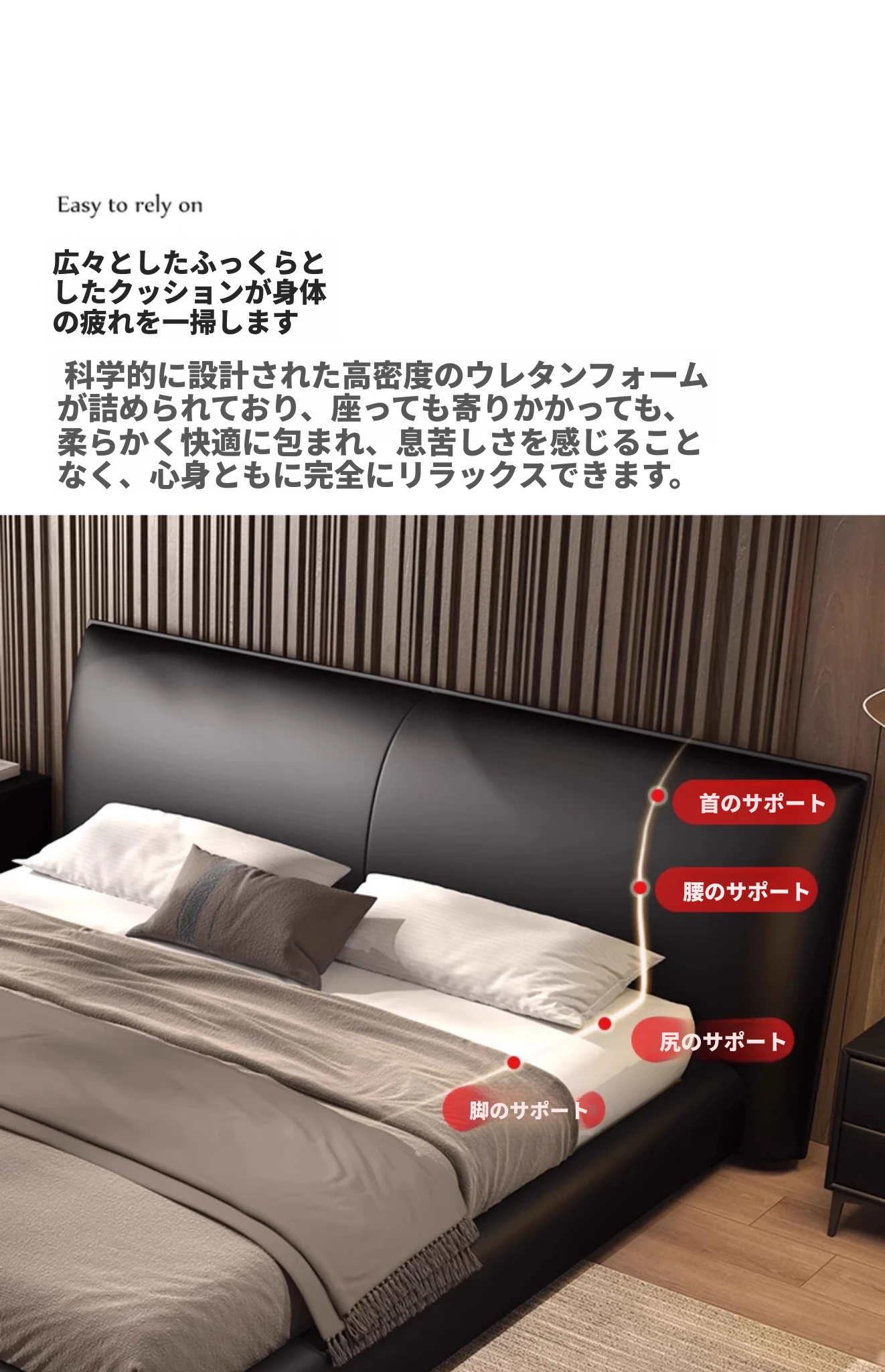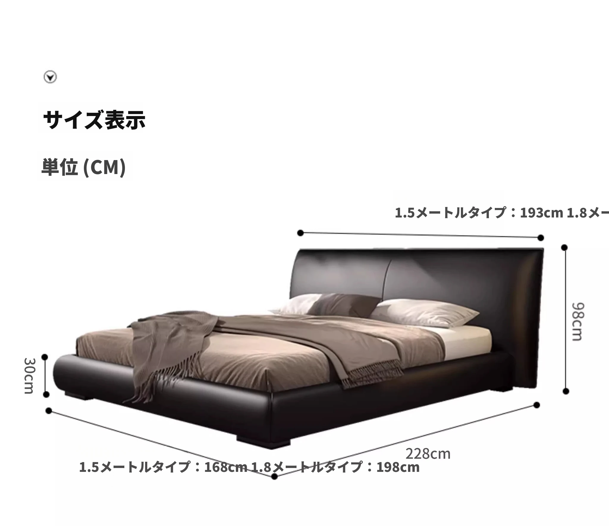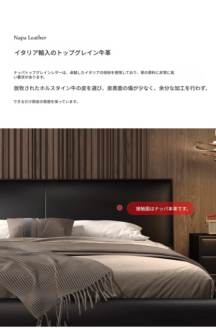 高級感あふれる本革ベッド「シャーニ」!シンプルで洗練されたデザイン、1.8メートルのダブルサイズ。主寝室にぴったりなソフトパッケージで、新婚生活を華やかに演出します。