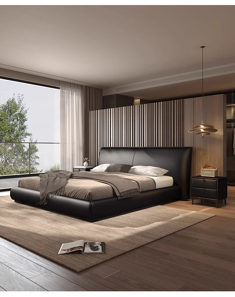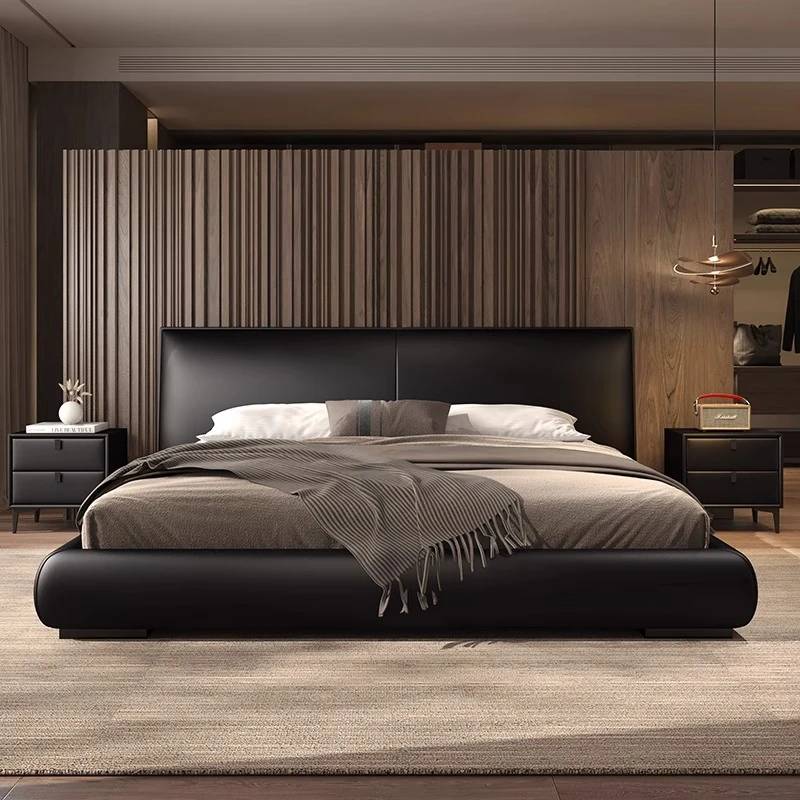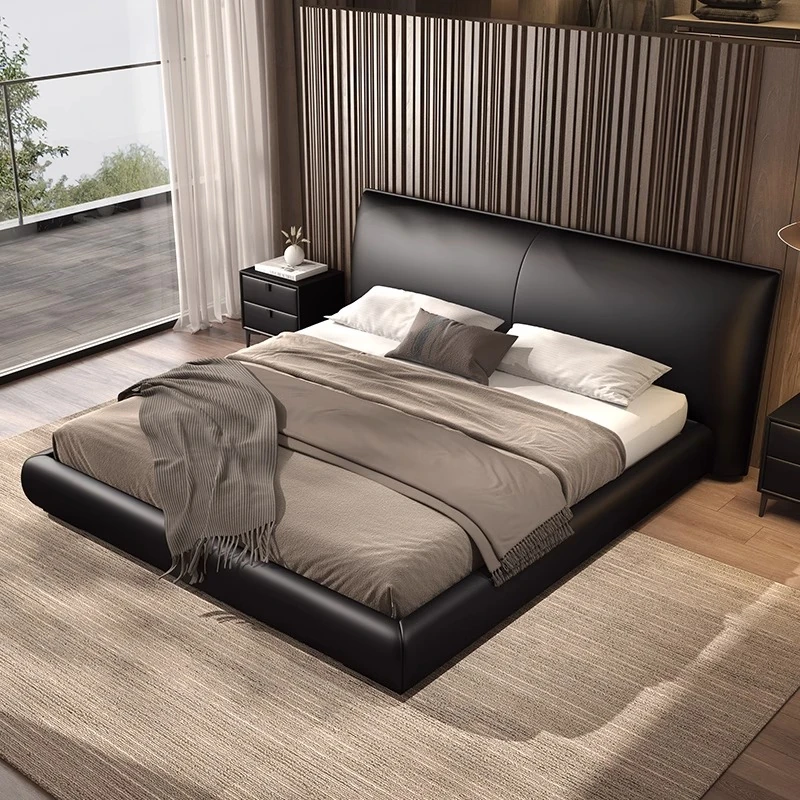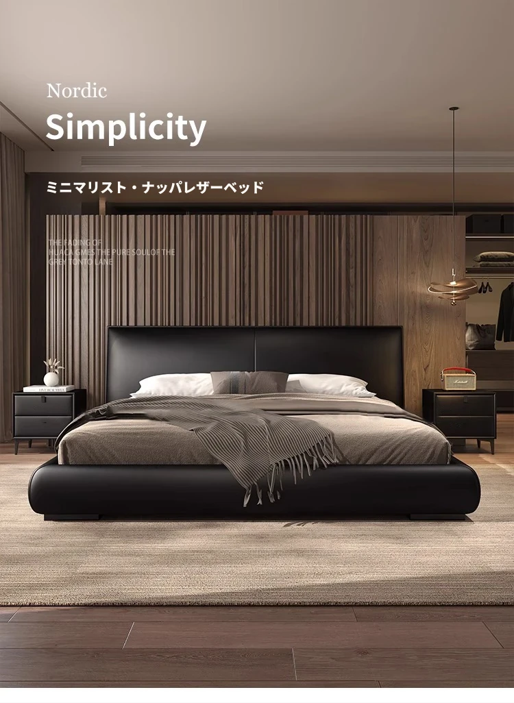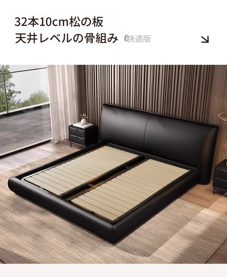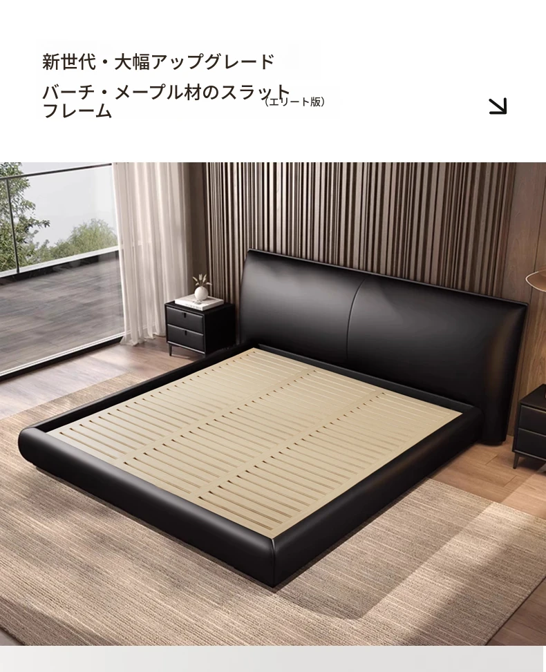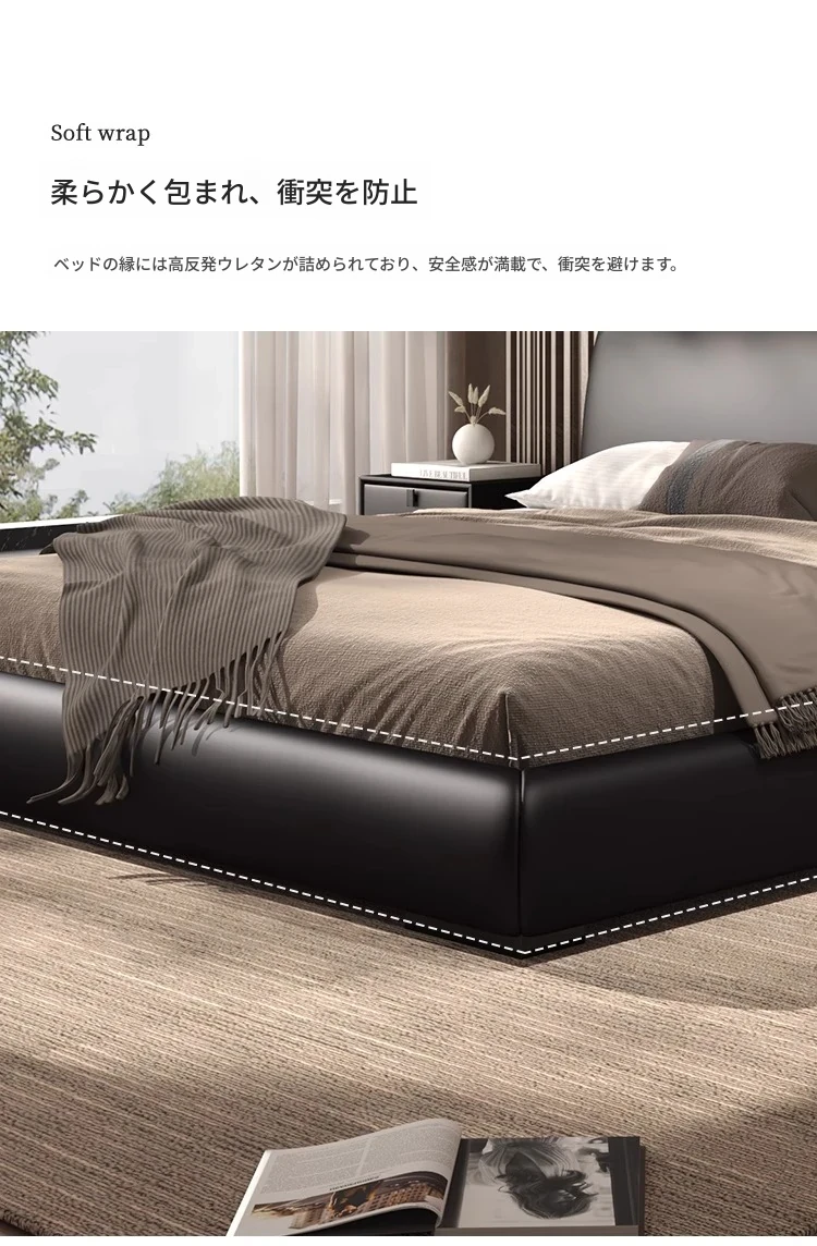 高級感あふれる本革ベッド「シャーニ」!シンプルで洗練されたデザイン、1.8メートルのダブルサイズ。主寝室にぴったりなソフトパッケージで、新婚生活を華やかに演出します。