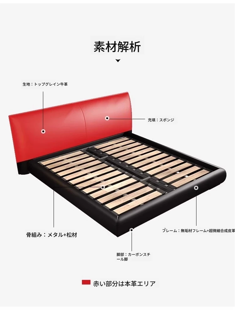 V級輸入1.8厚手層小黄牛皮【幅広加密榫卯カバノキ骨架】シングルベッド