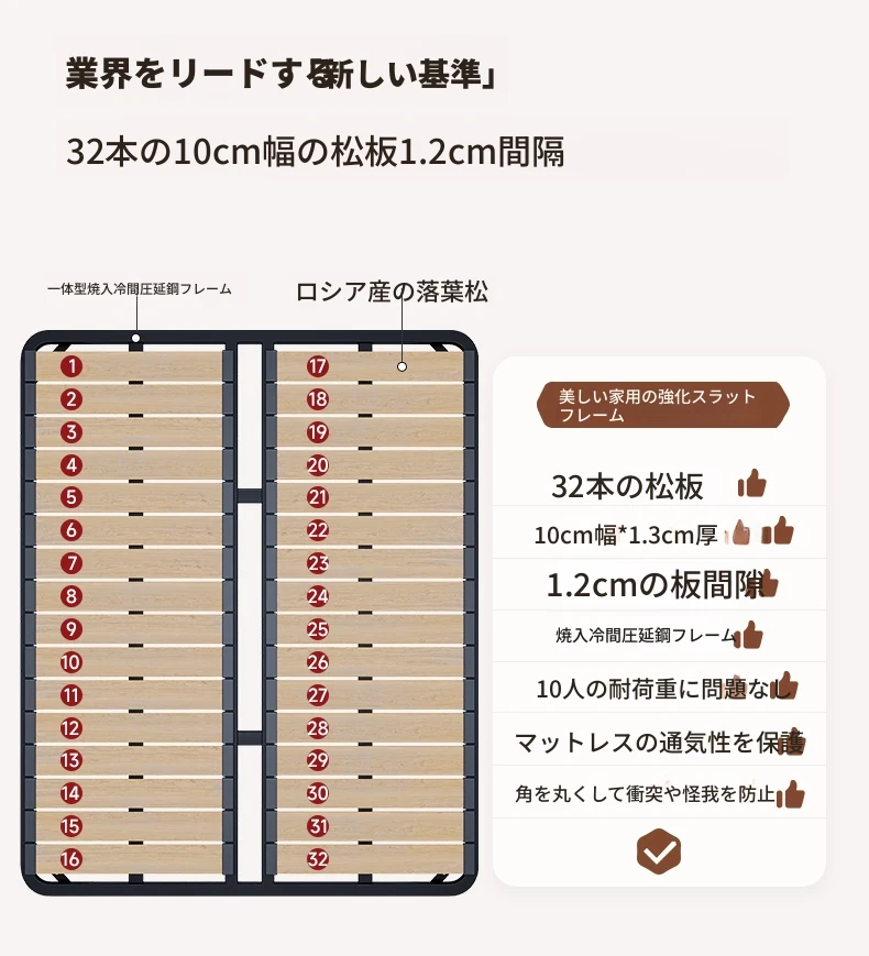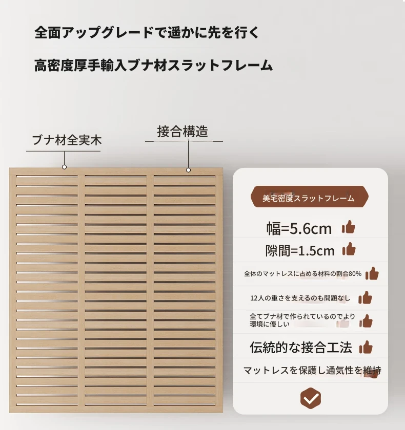 V級輸入1.8厚手層小黄牛皮【幅広加密榫卯カバノキ骨架】+高弾性抗菌防ダニラテックスマットレス