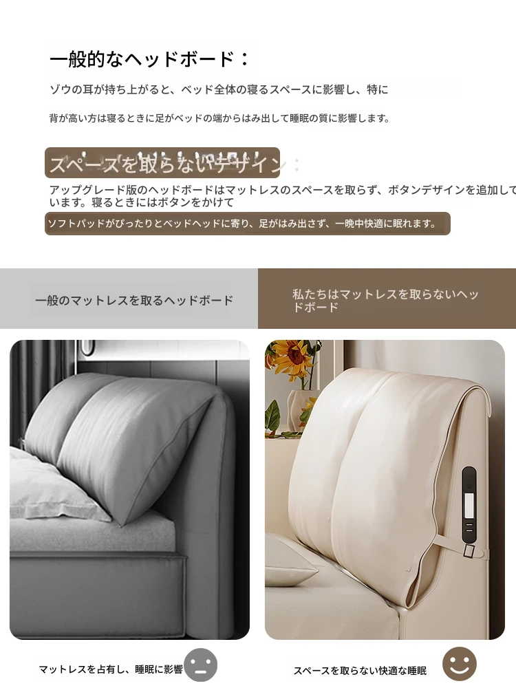 【ナイトライト付きのヘッドボードは追加料金100*1が必要です。詳しくはカスタマーサービスにお問い合わせください】