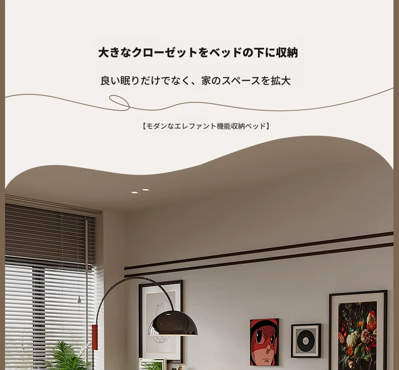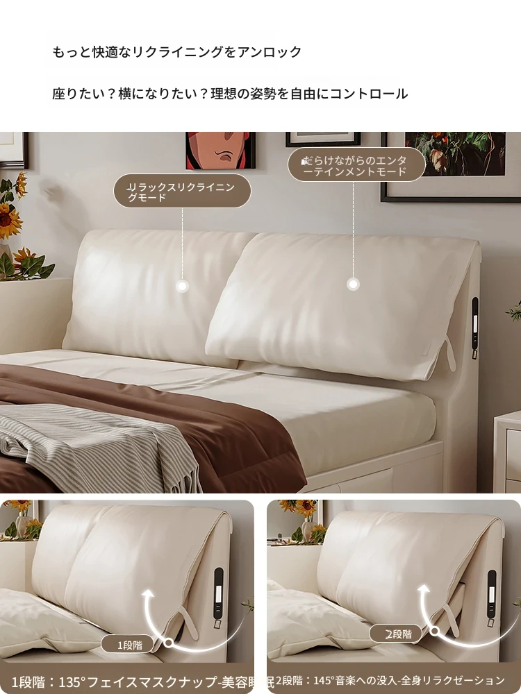 エレファントイヤー高級本革ベッド ~ モダンでミニマルなデザイン、収納付きの大型高床ダブルベッド、メインベッドルームにぴったりなクリームスタイルのラグジュアリーソフトベッド!