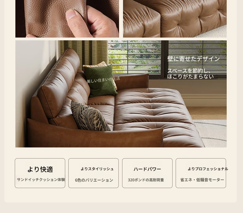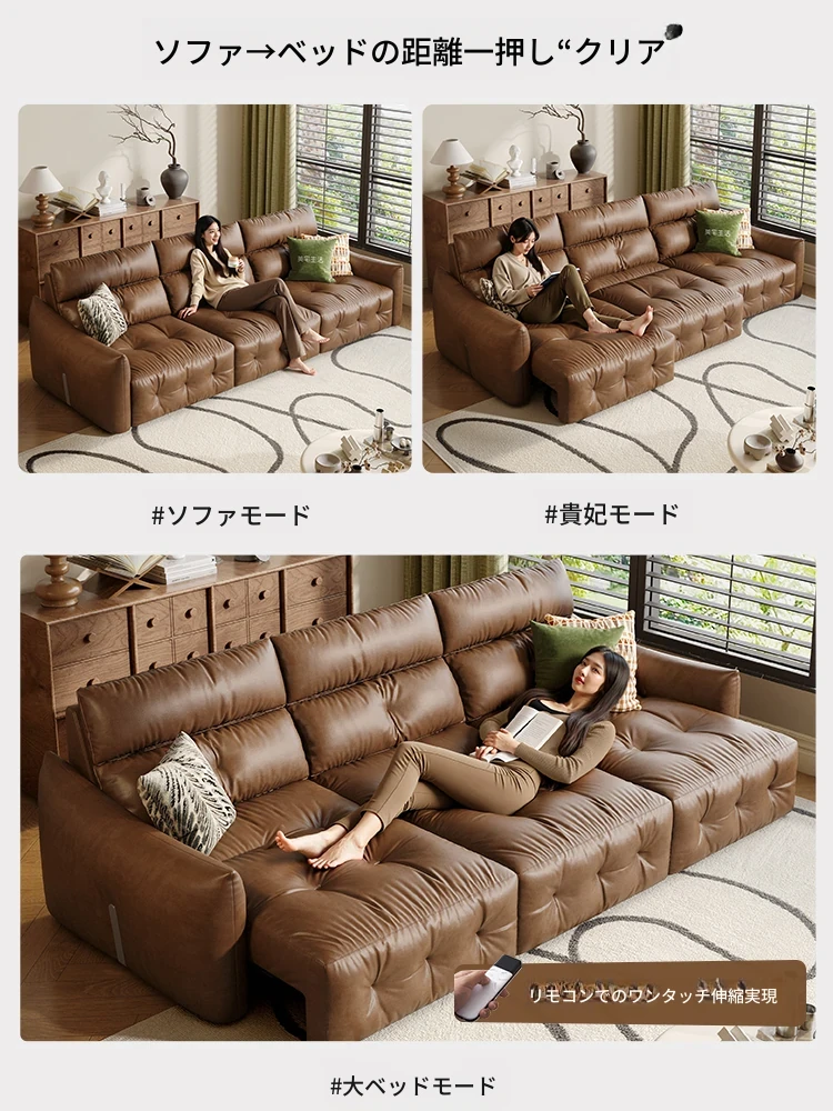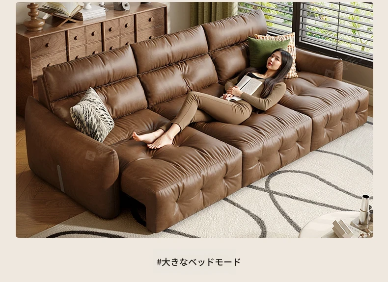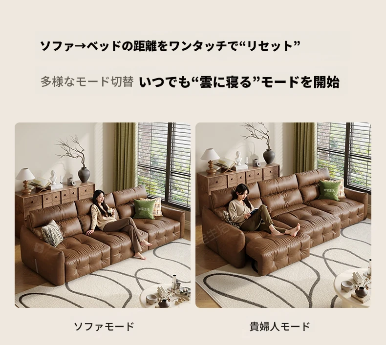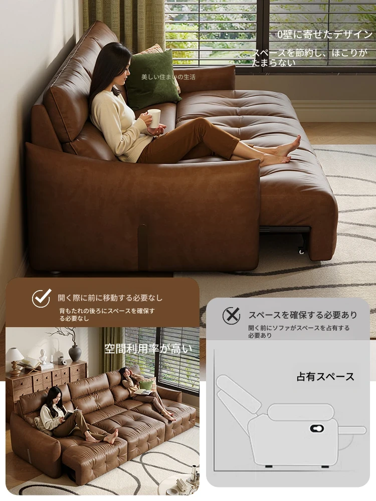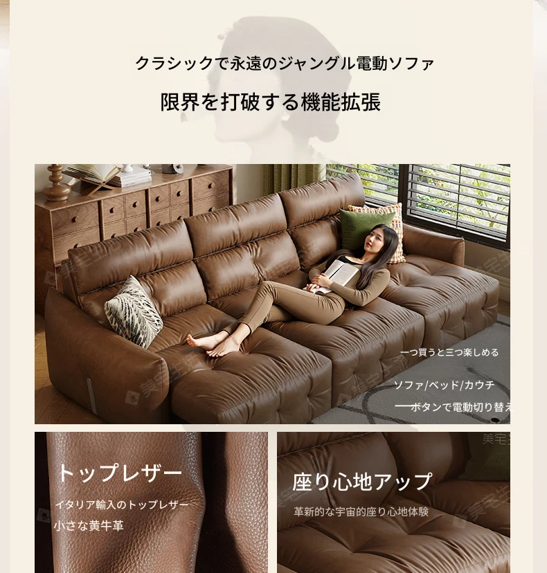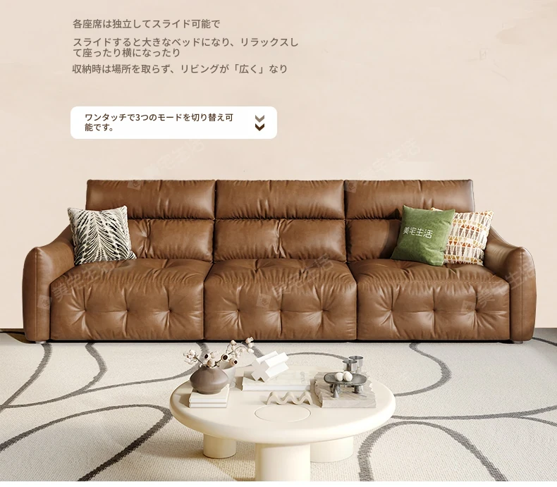香り付き電動ソファ・ナイル 3人掛けリビング用、2WAY自動伸縮機能搭載!高級本革使用のモダンでシンプルなソファベッド。快適な座り心地とスタイリッシュなデザインで、あなたのリビングを特別な空間に演出します!