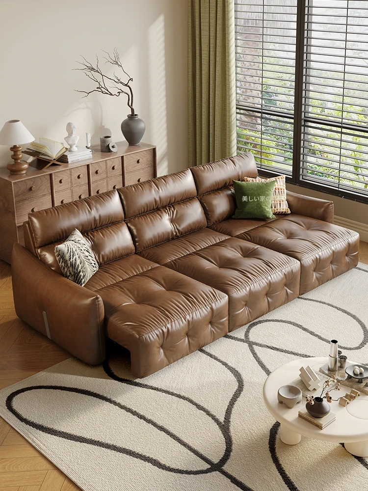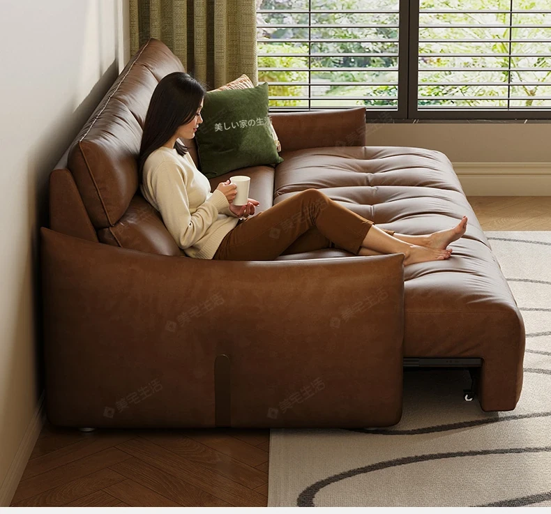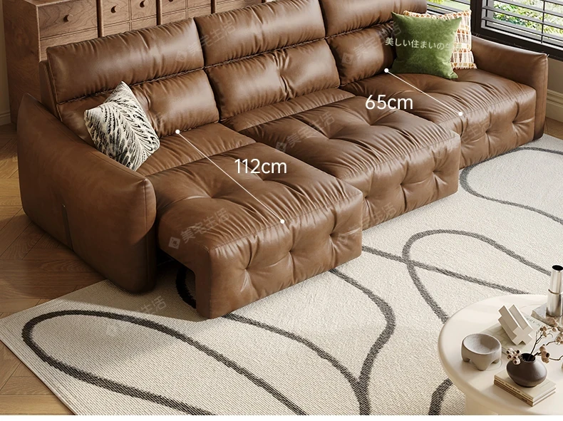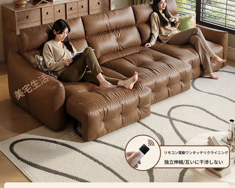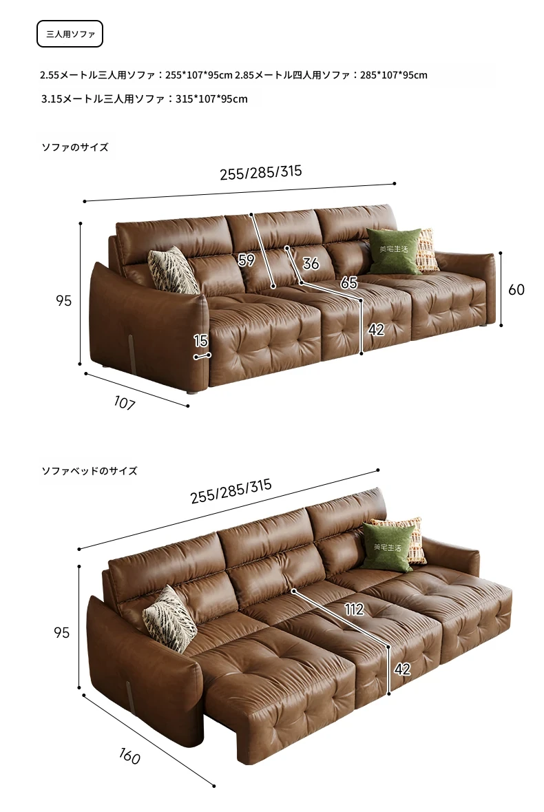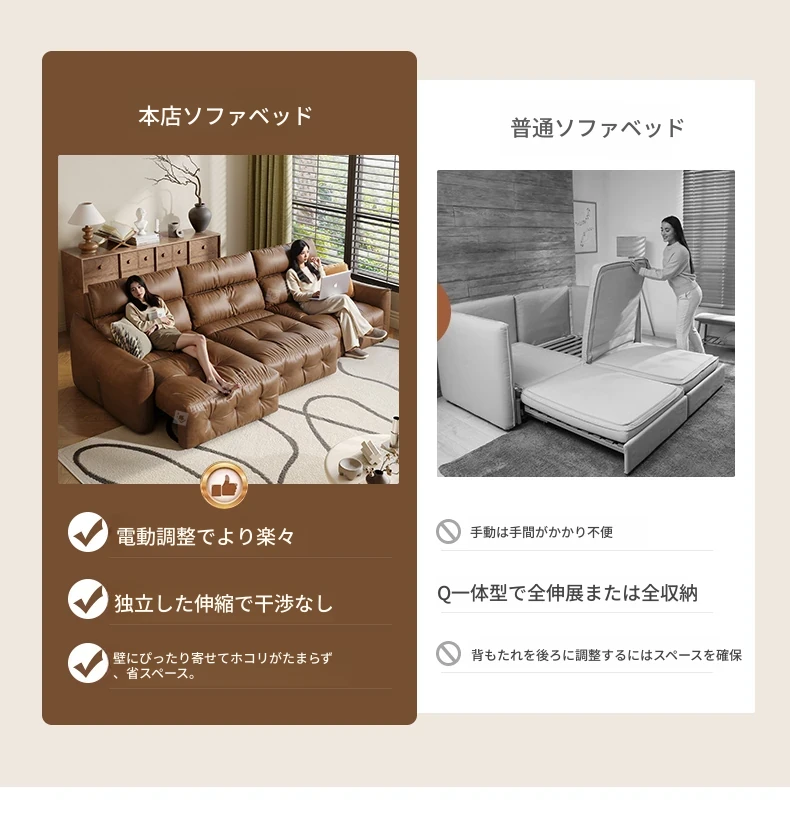香り付き電動ソファ・ナイル 3人掛けリビング用、2WAY自動伸縮機能搭載!高級本革使用のモダンでシンプルなソファベッド。快適な座り心地とスタイリッシュなデザインで、あなたのリビングを特別な空間に演出します!