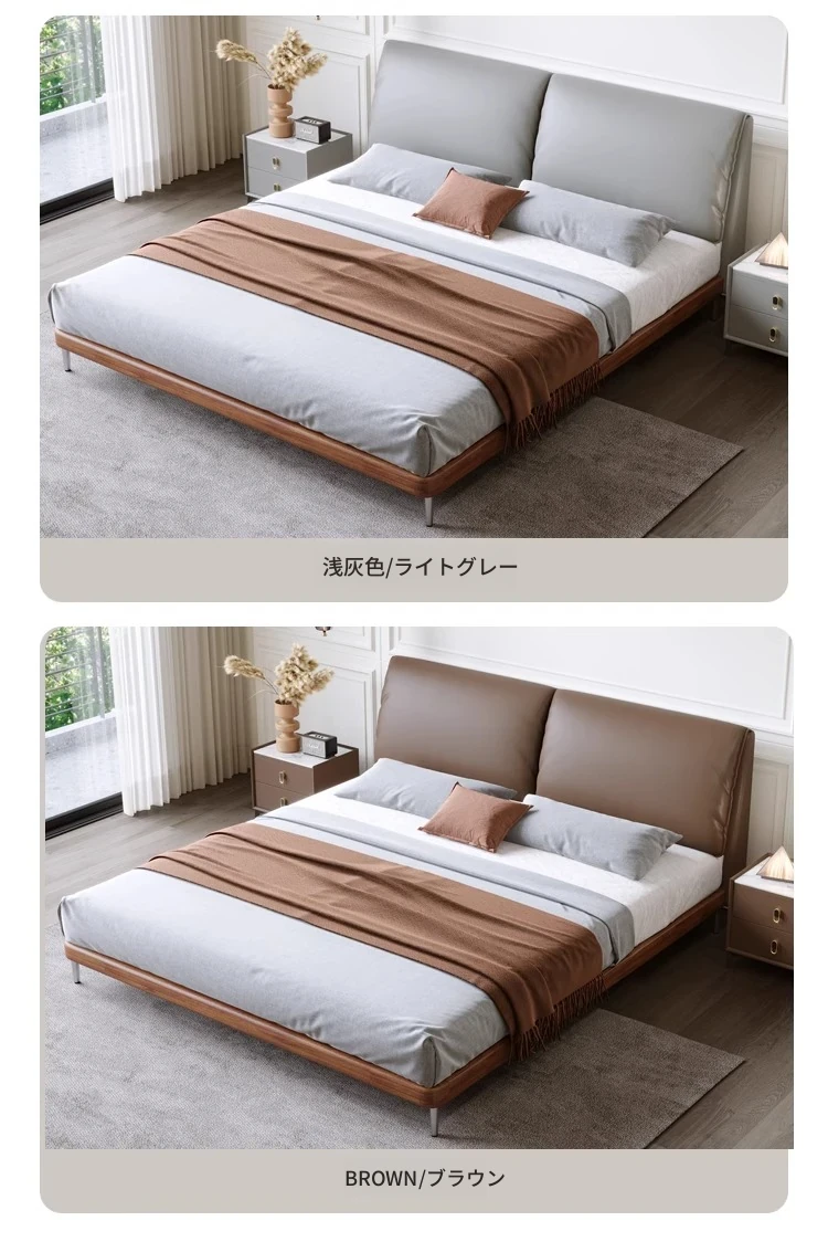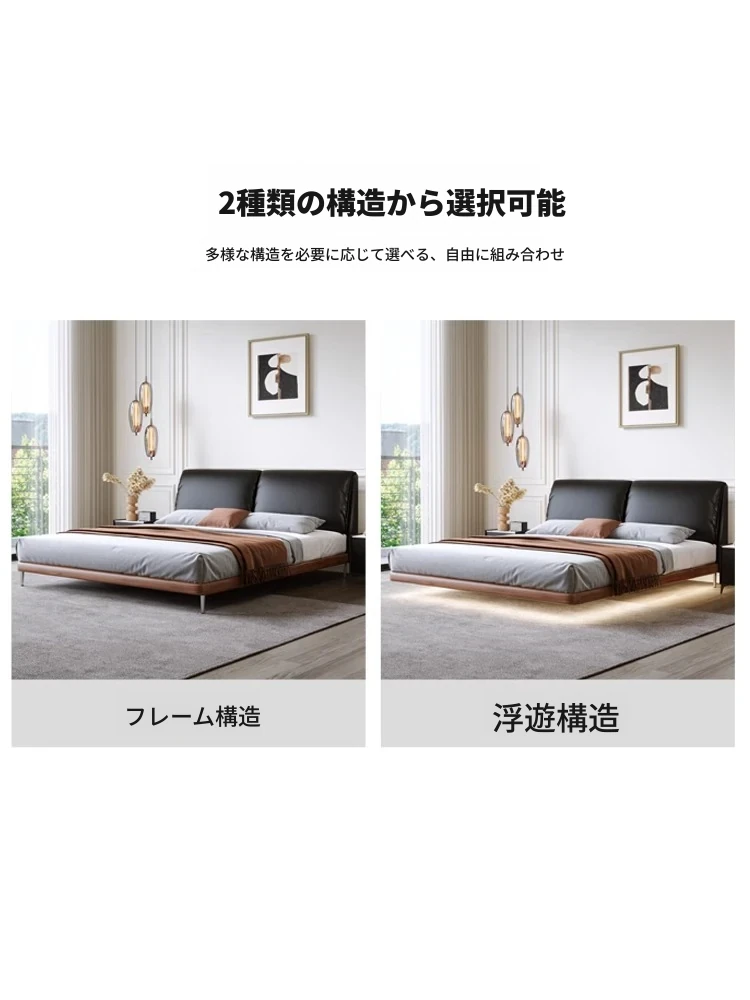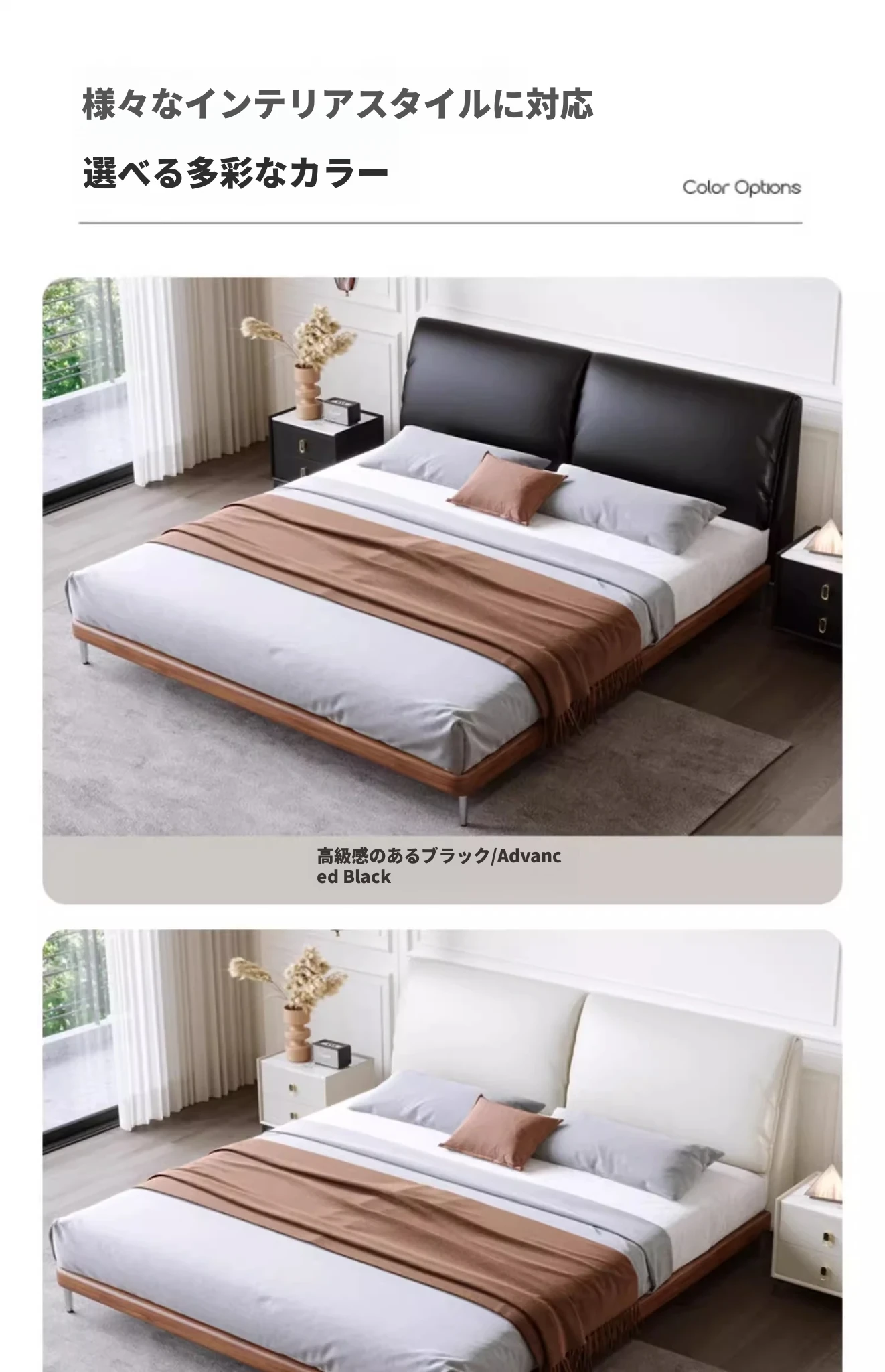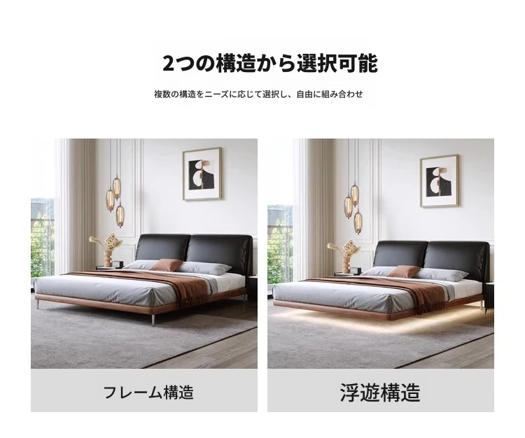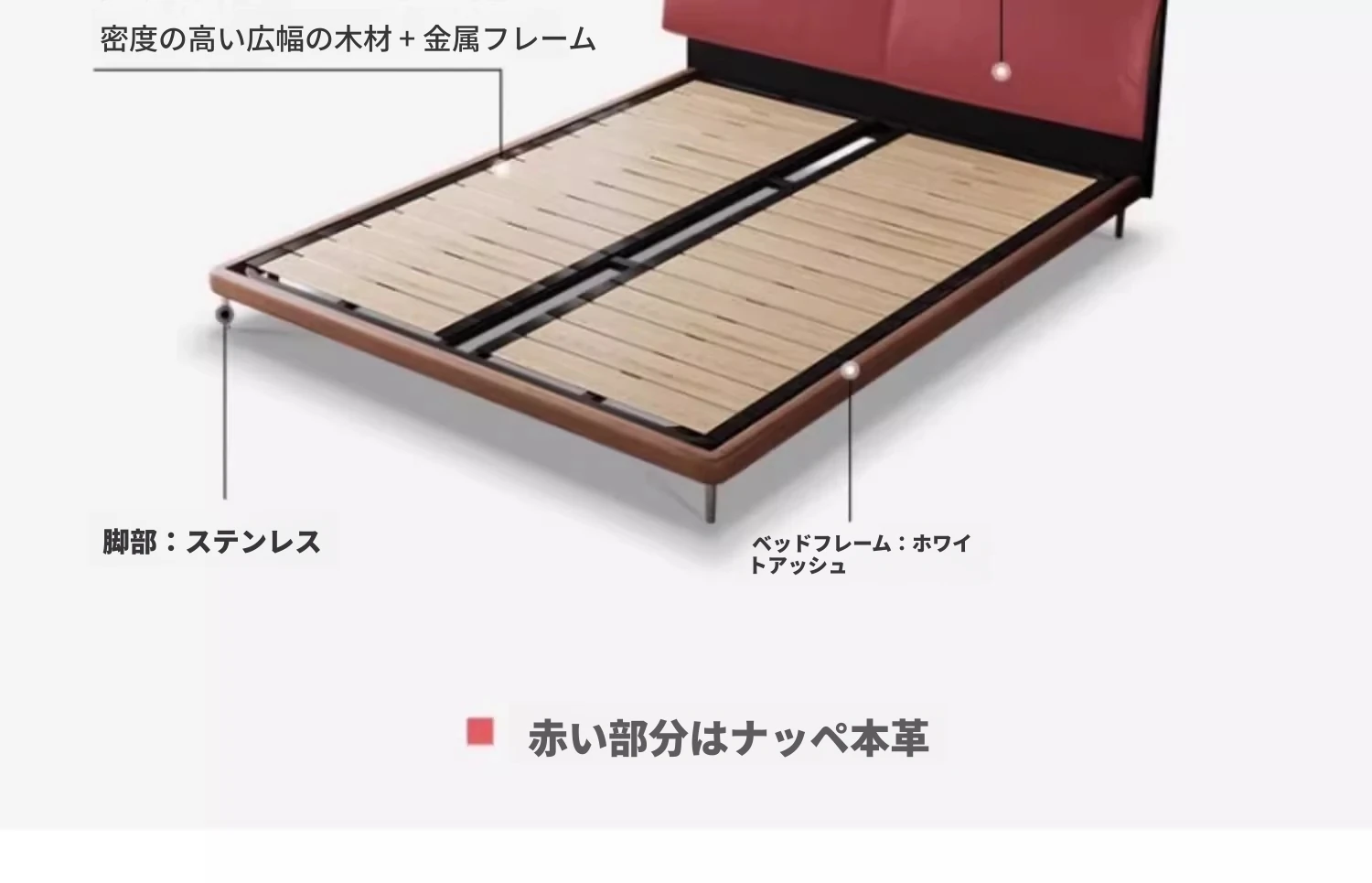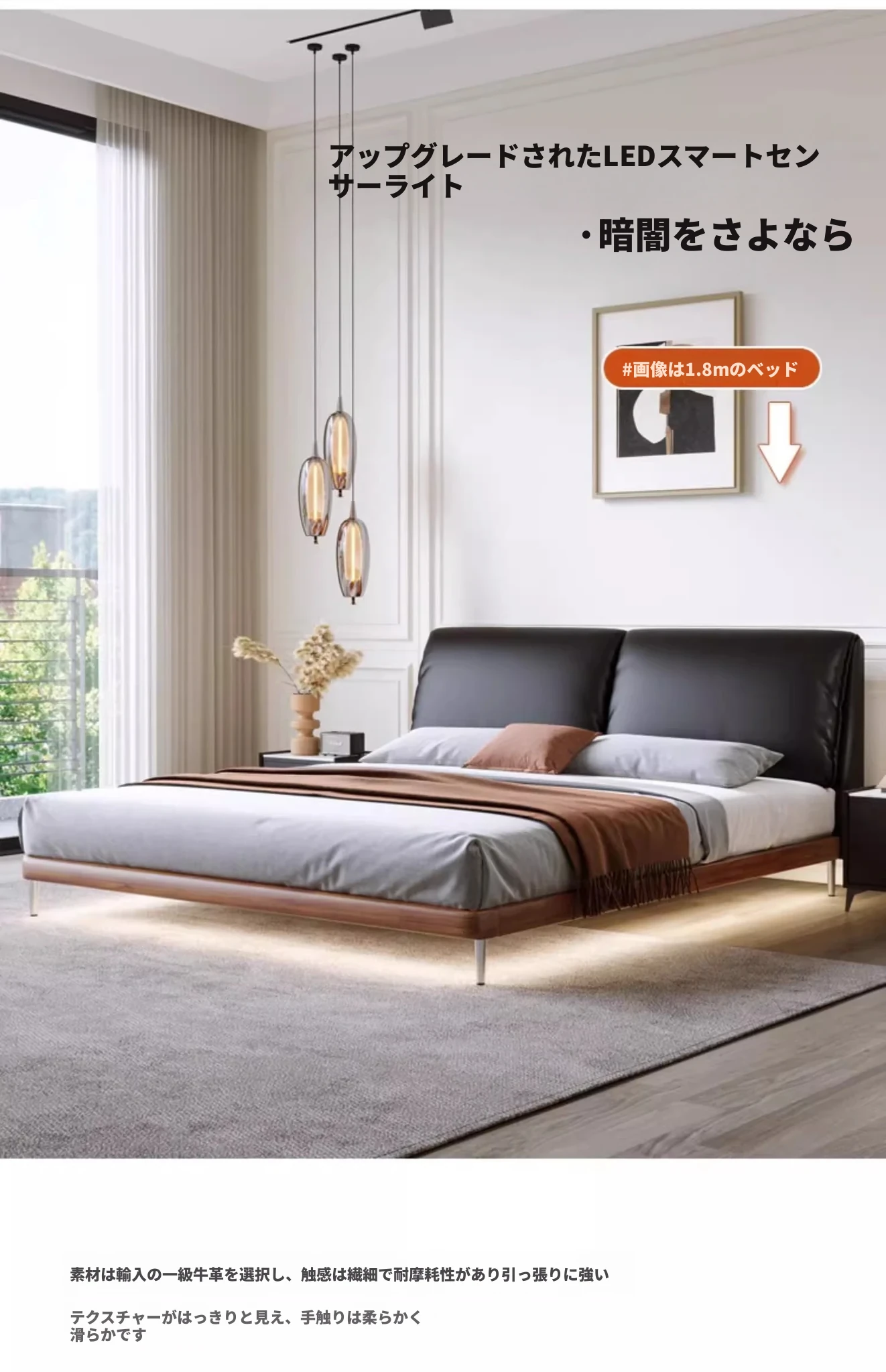 〖V級トップレザー小黄牛皮〗【1.2cm高密排骨架】+2キャビネット+22cm七星級テンセル独立消音スプリングラテックスマットレス