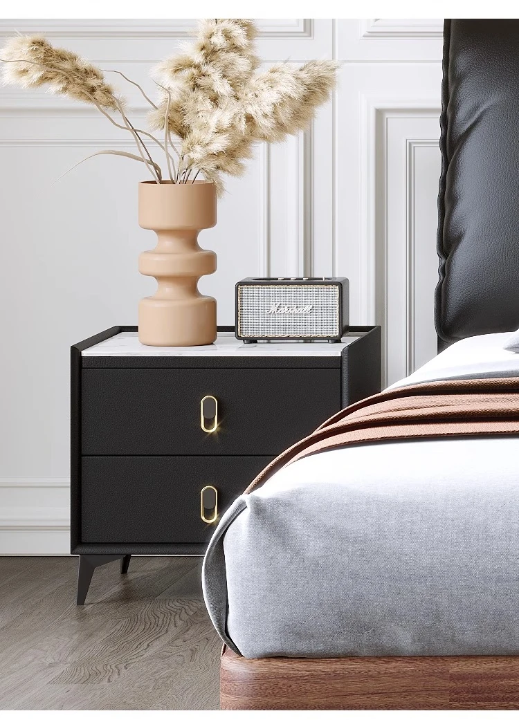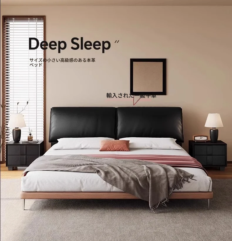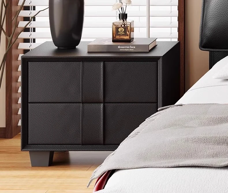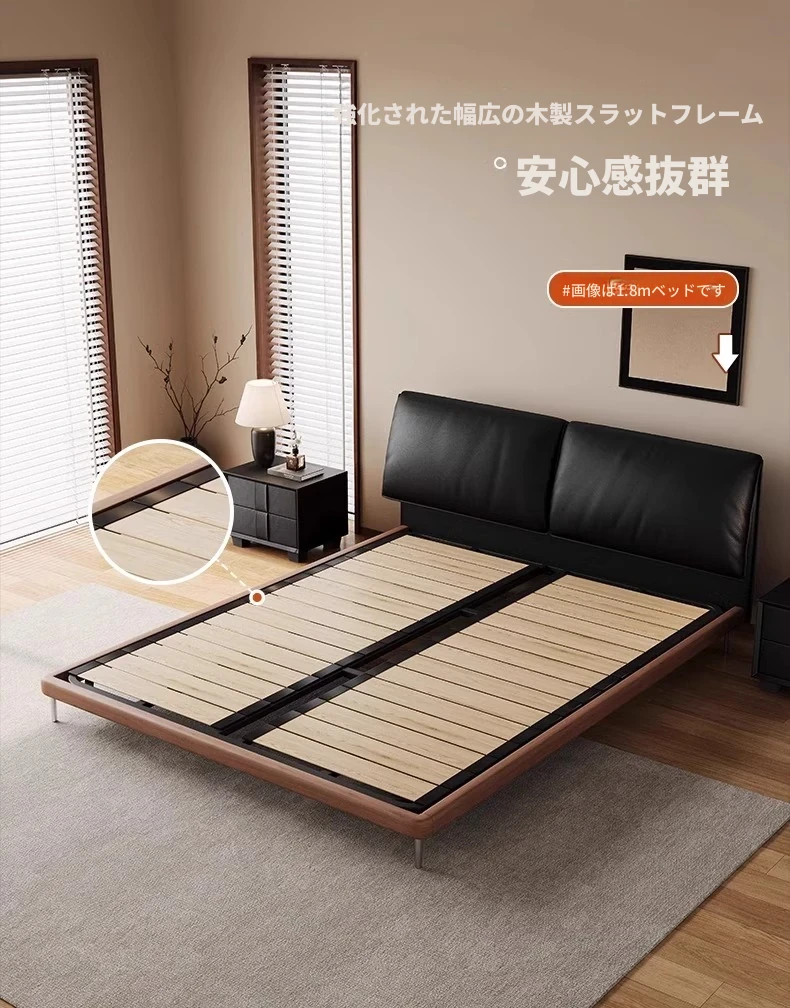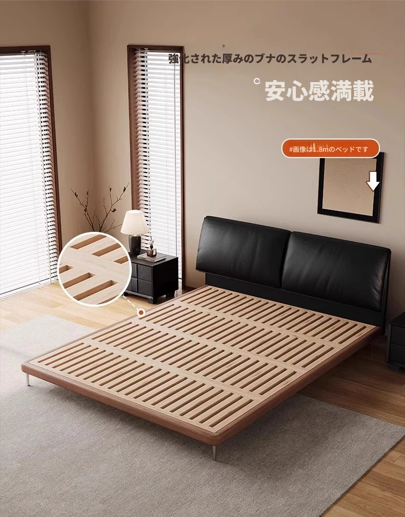 〖V級トップレザー小黄牛皮〗【加幅加密ブナ木排骨架】+2キャビネット+22cm六星級抗菌防ダニラテックスマットレス