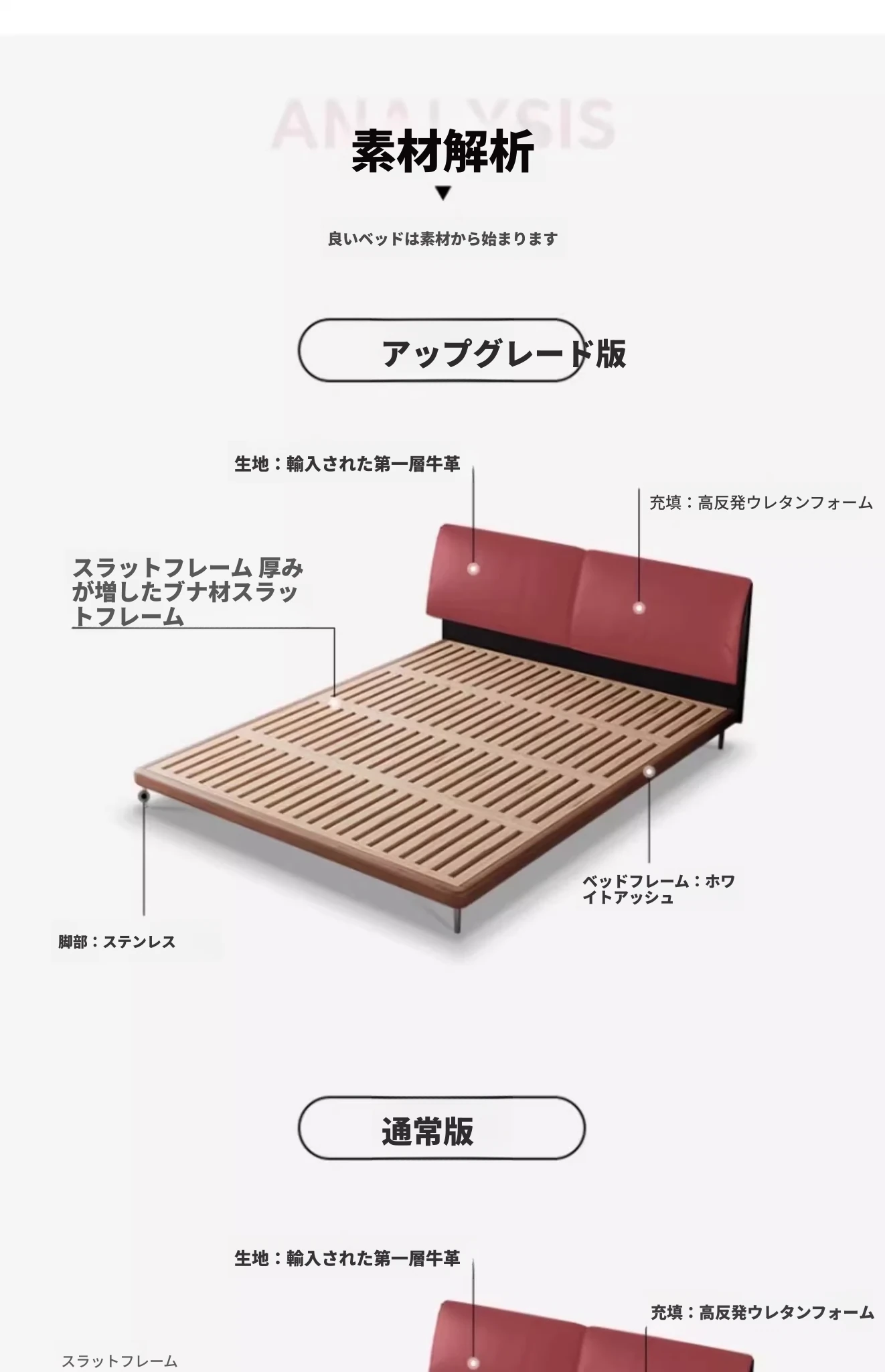 〖V級トップレザー小黄牛皮〗【加幅加密ブナ木排骨架】+22cm五星級テンセルココナッツマットレス