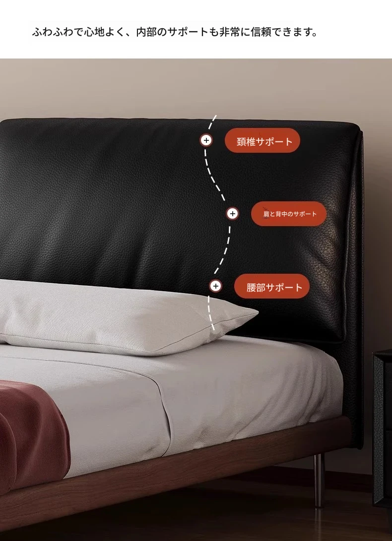 〖V級トップレザー小黄牛皮〗【1.2cm高密排骨架】+1キャビネット+22cm五星級テンセルココナッツマットレス